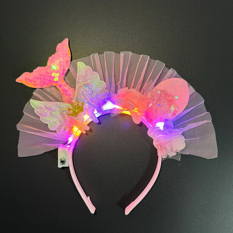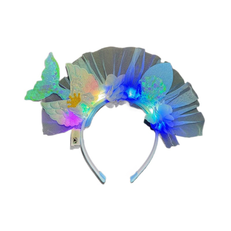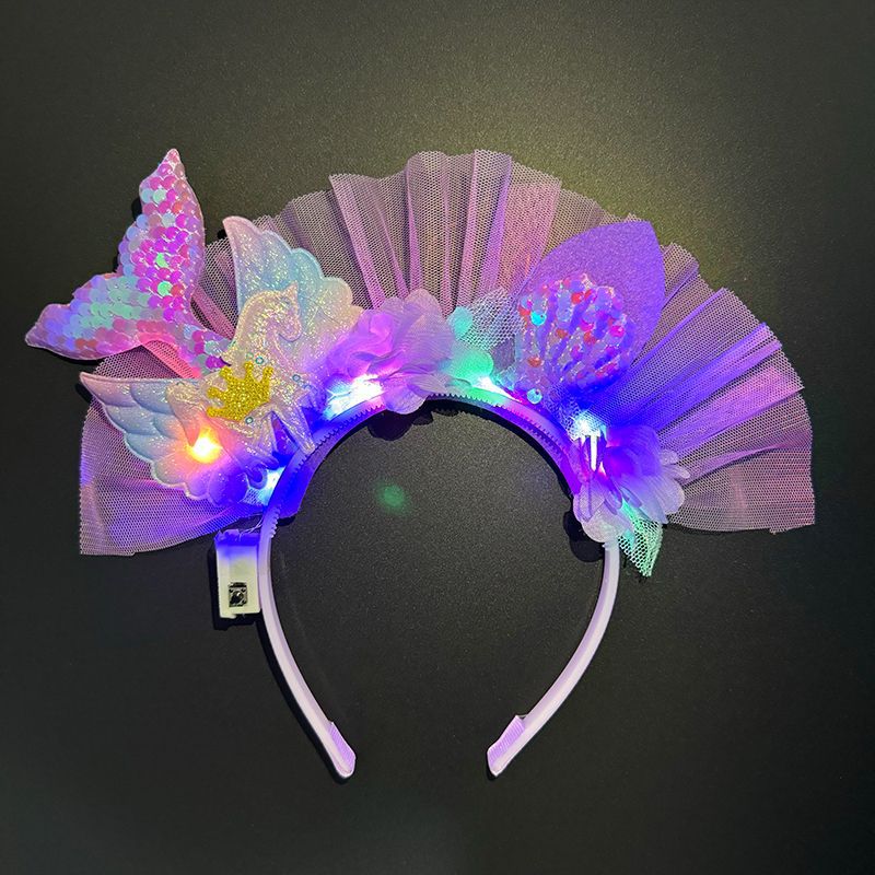 美人鱼公主风发光发箍女孩甜可爱珠片独角兽发饰个性彩色立体发饰