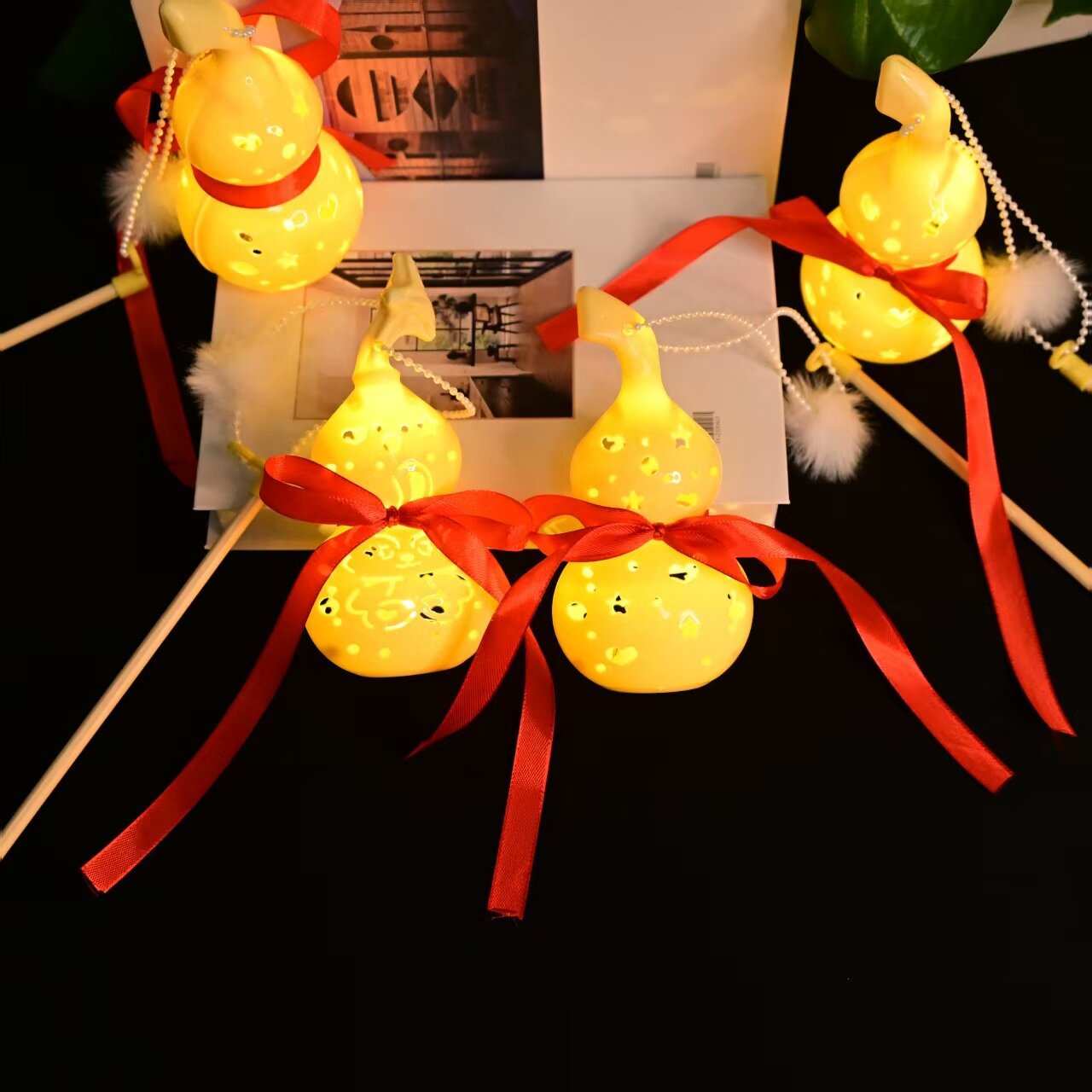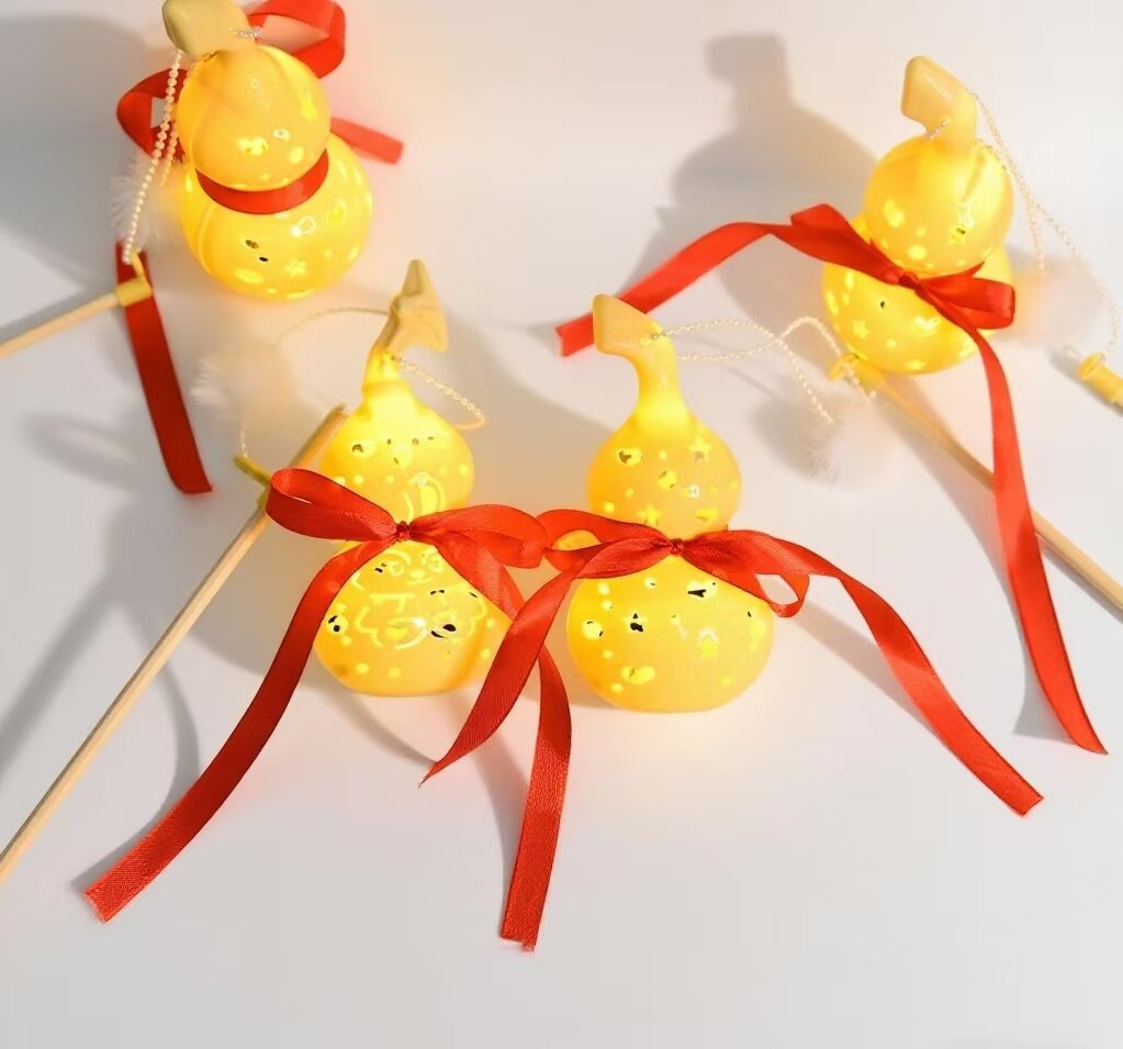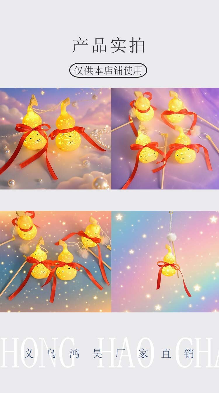 儿童手提发光玉兔葫芦灯笼镂空卡通图案节日活动礼品夜市景区热卖