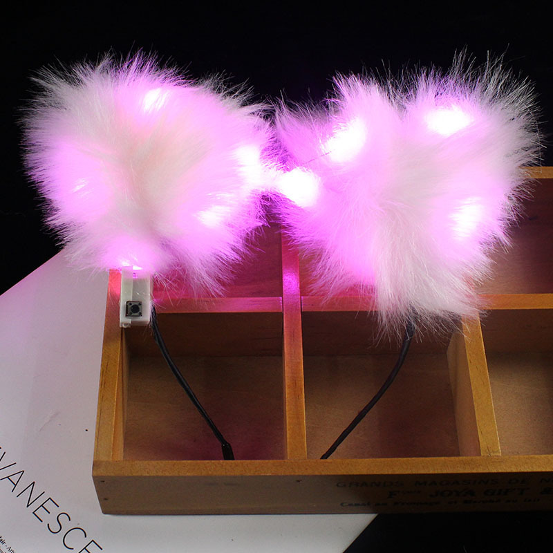 新款发光毛绒猫咪耳朵铃铛头箍cos仿真狐狸洗脸发箍日系蝴蝶结头