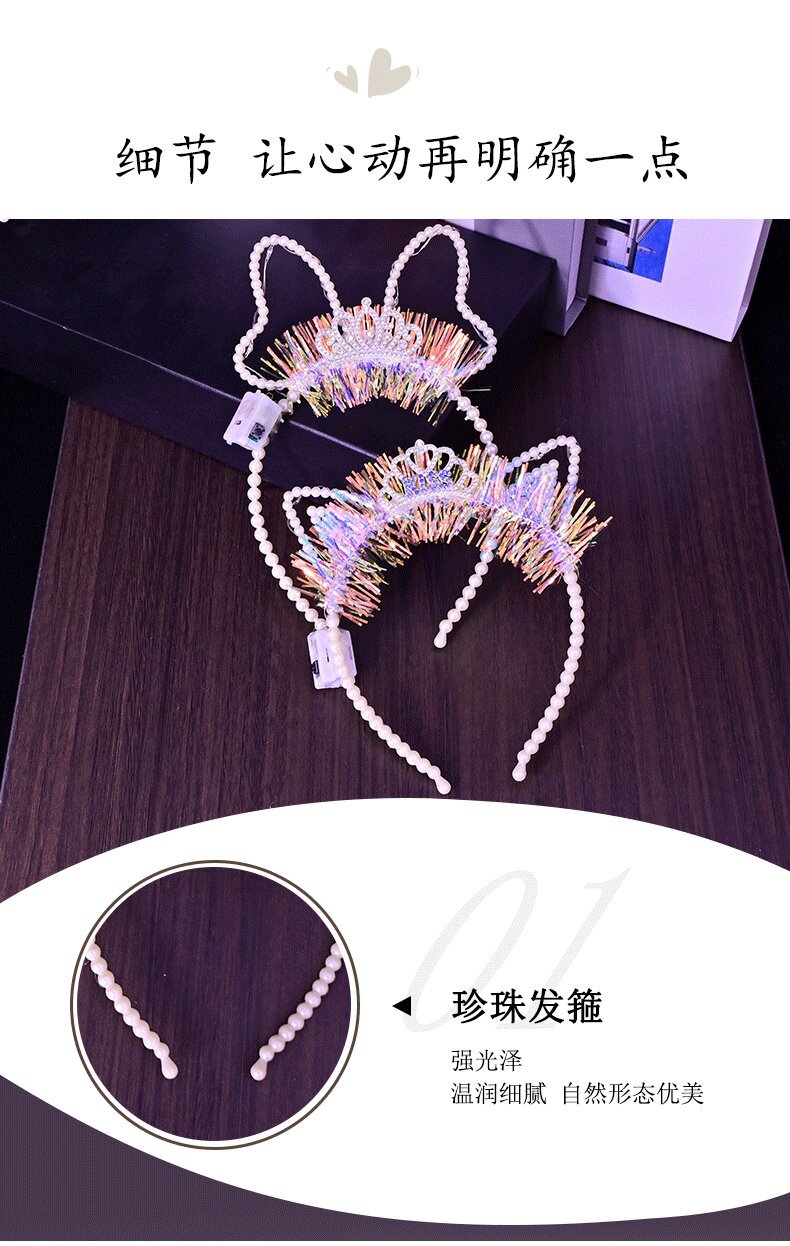 新款发光珍珠发箍女韩国网红头箍百搭发卡女简约气质压发头饰批发