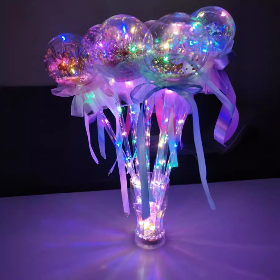 地摊产品新款波波球仙女发光棒波波球棒儿童发光玩具魔法棒批发