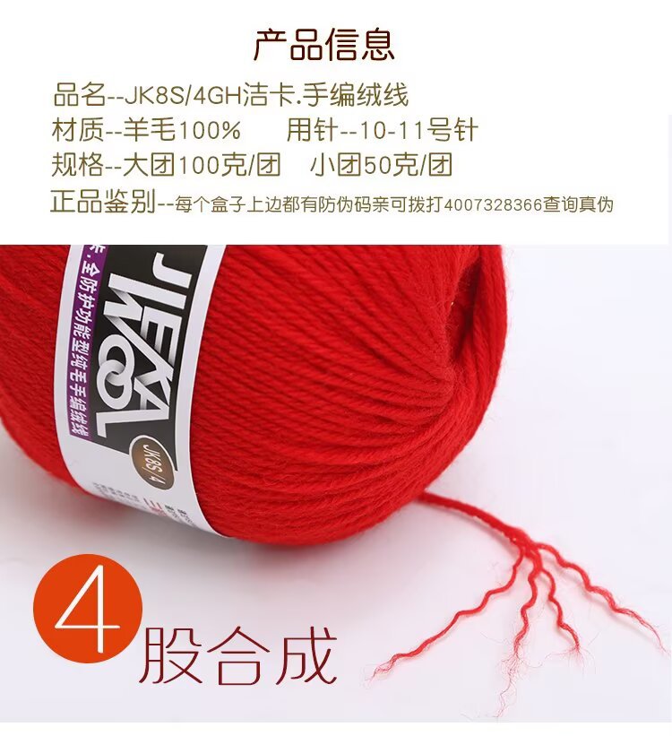 河北三利毛线洁卡8全羊毛线手工编织纯羊毛绒线粗毛线帽子围巾线
