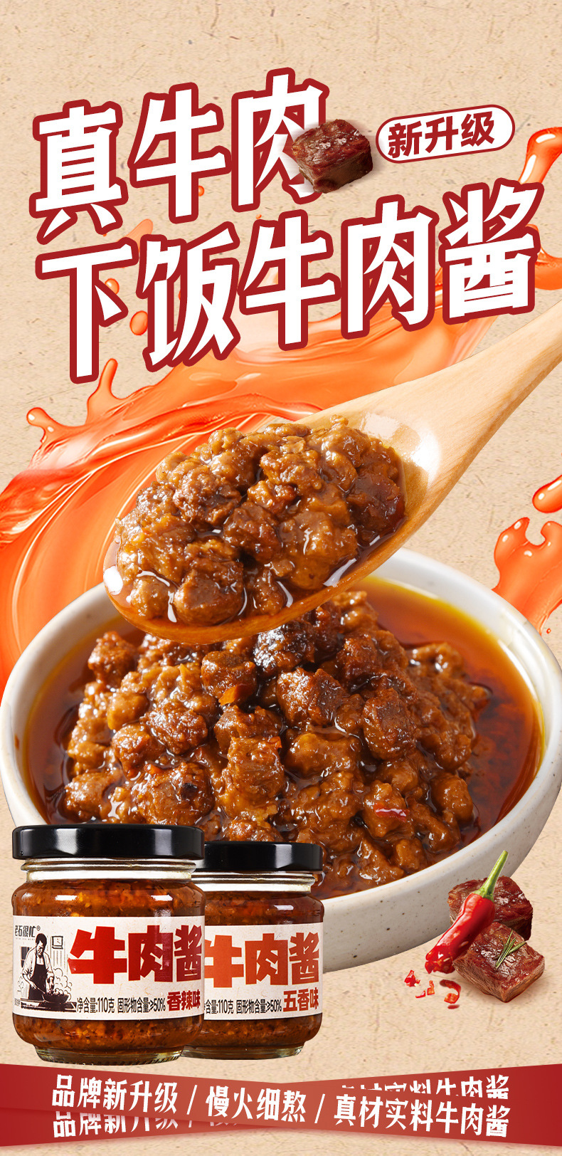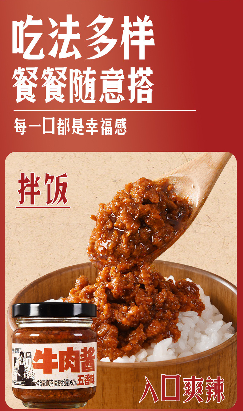 抖音爆款菜欢欢辣椒酱厂家一件代发拌面酱直播带货贴牌110g牛肉酱