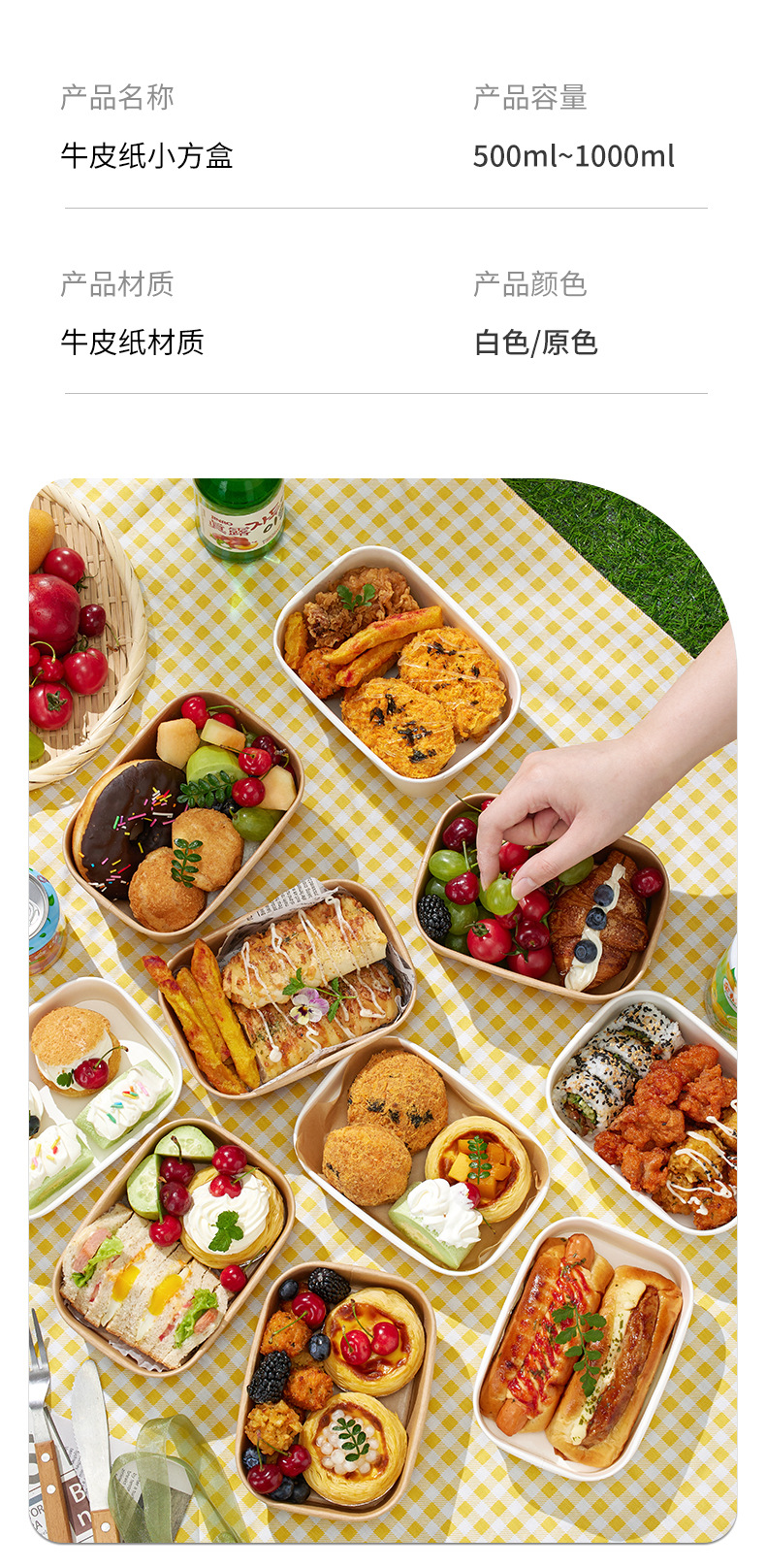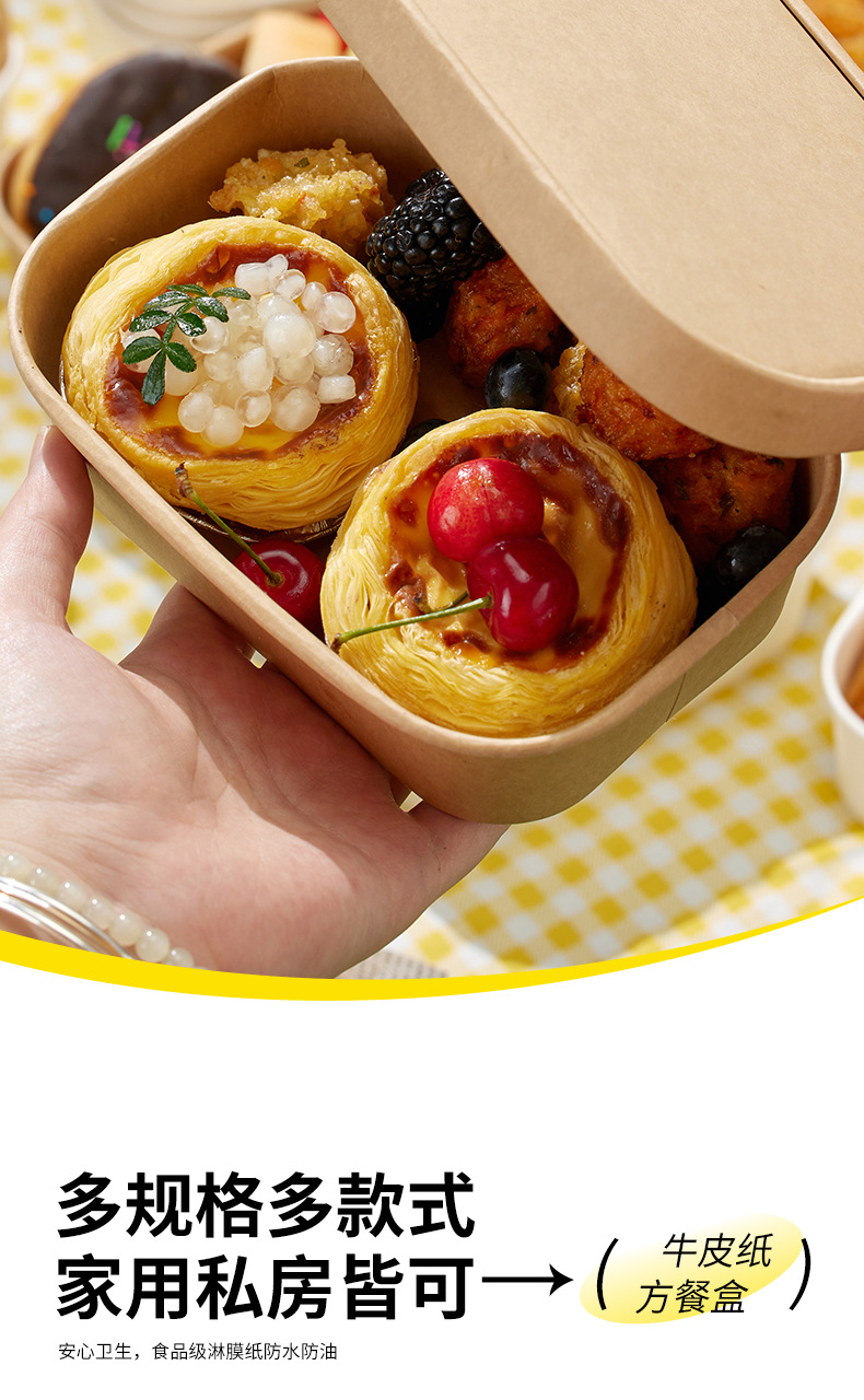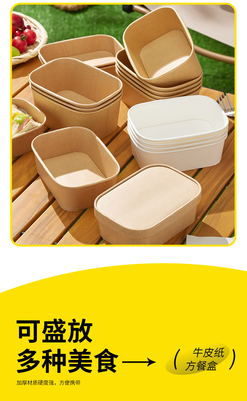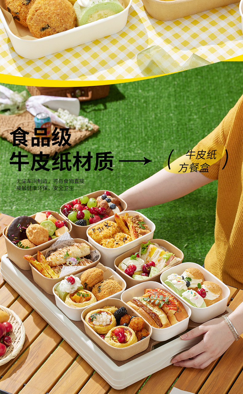 一次性餐盒方形牛皮纸水果打包盒露营野餐便当盒食品级快餐轻食盒