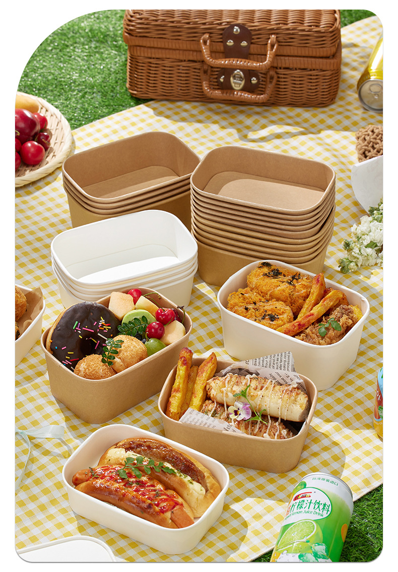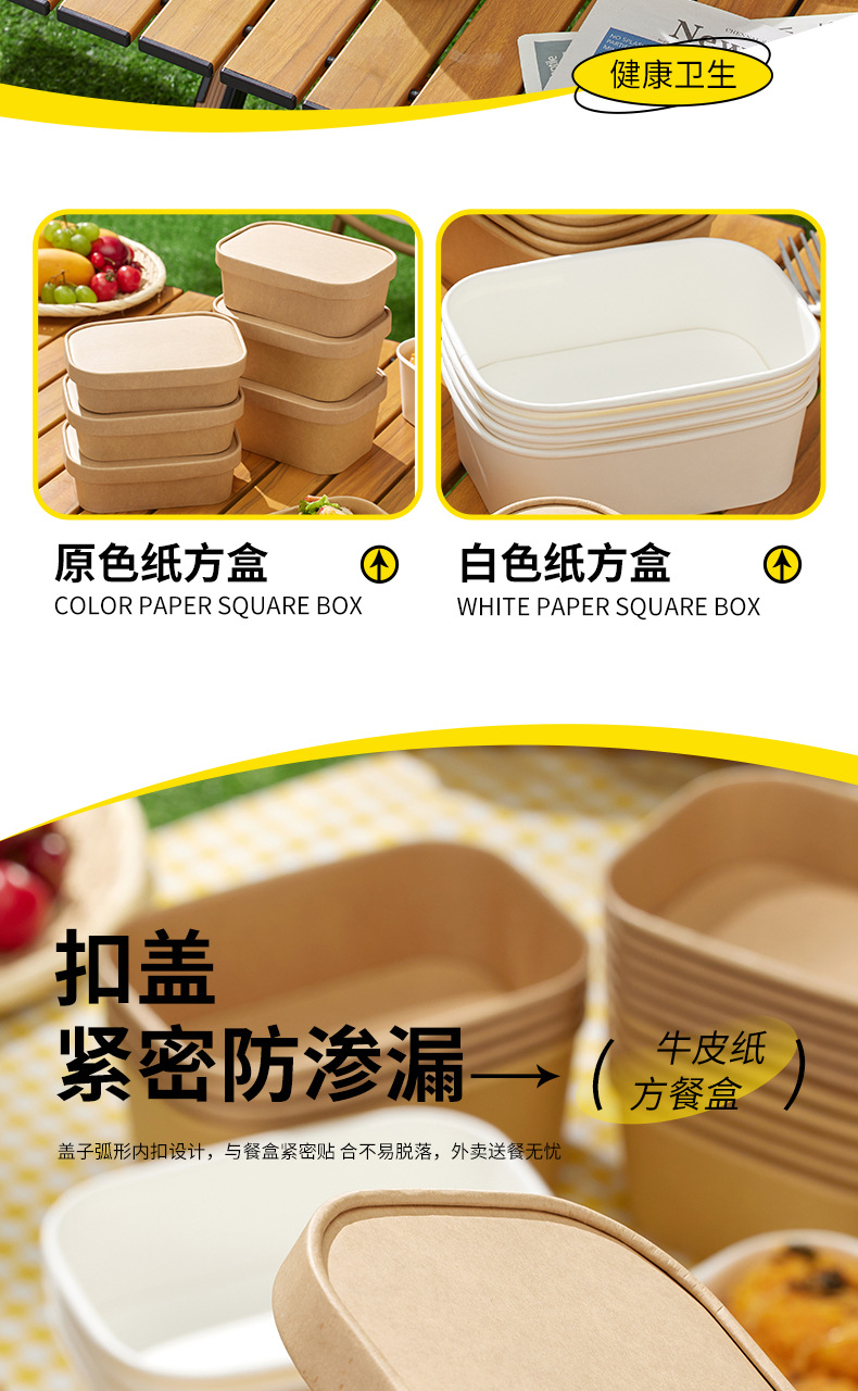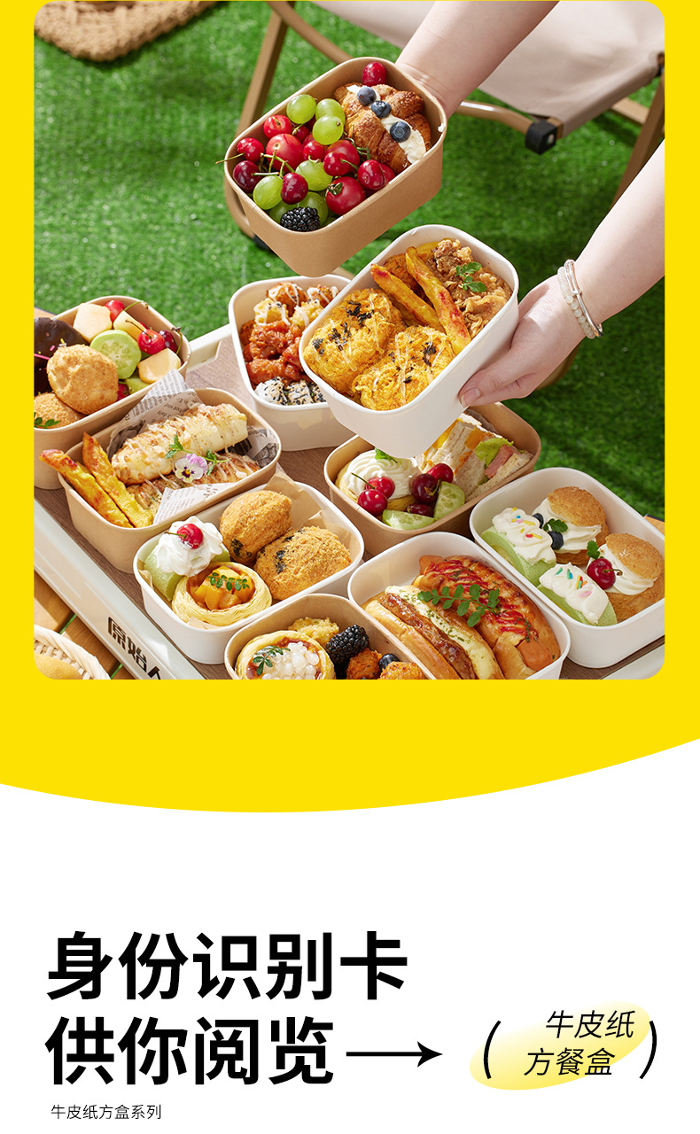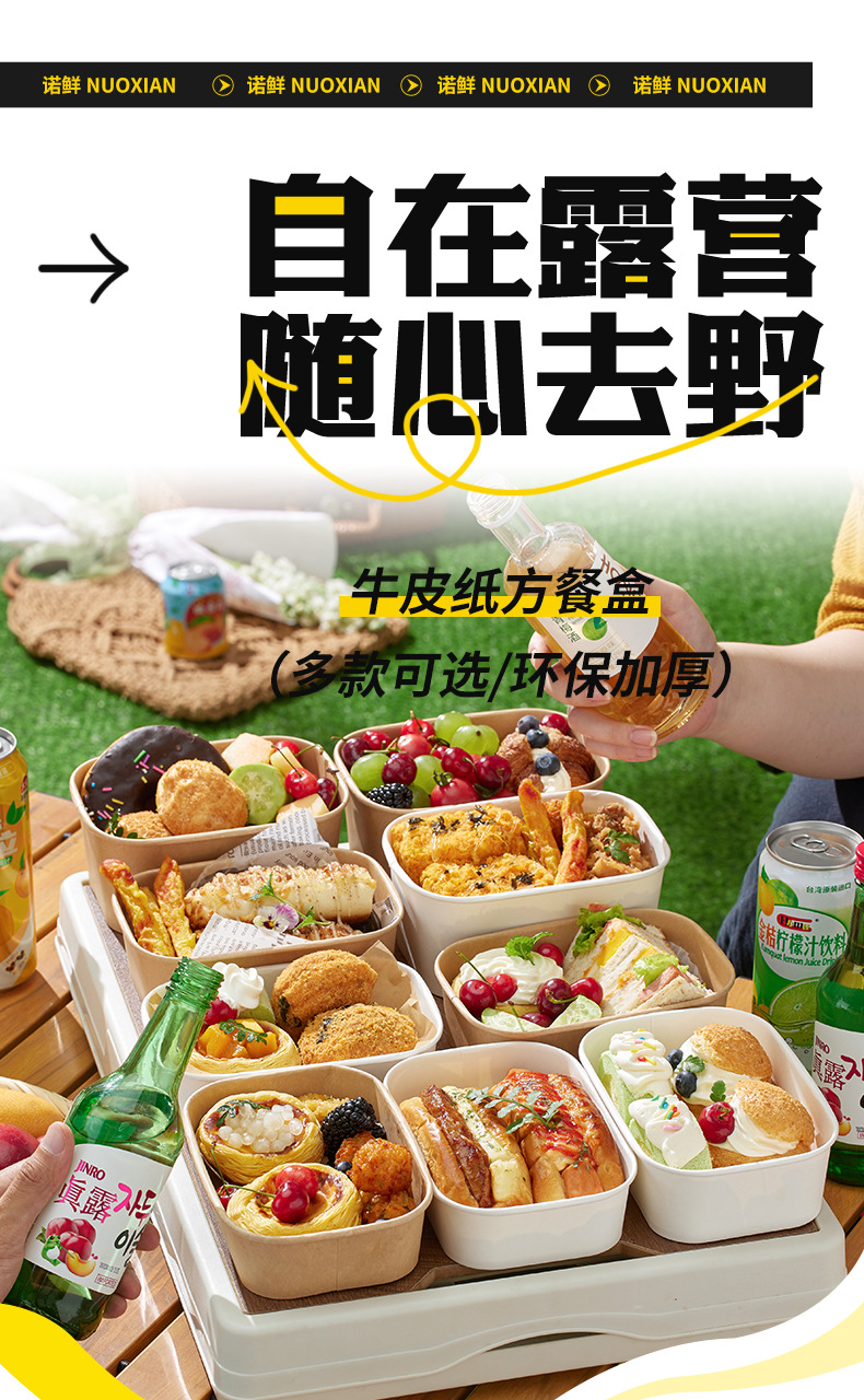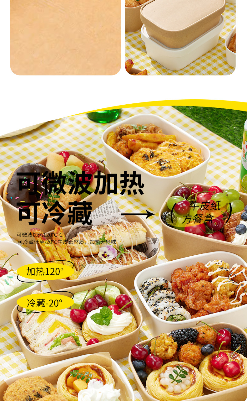 一次性餐盒方形牛皮纸水果打包盒露营野餐便当盒食品级快餐轻食盒