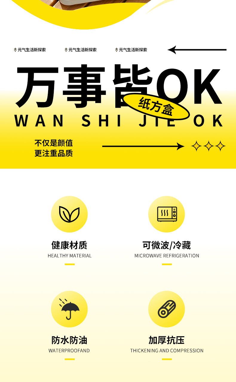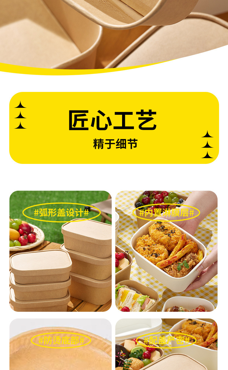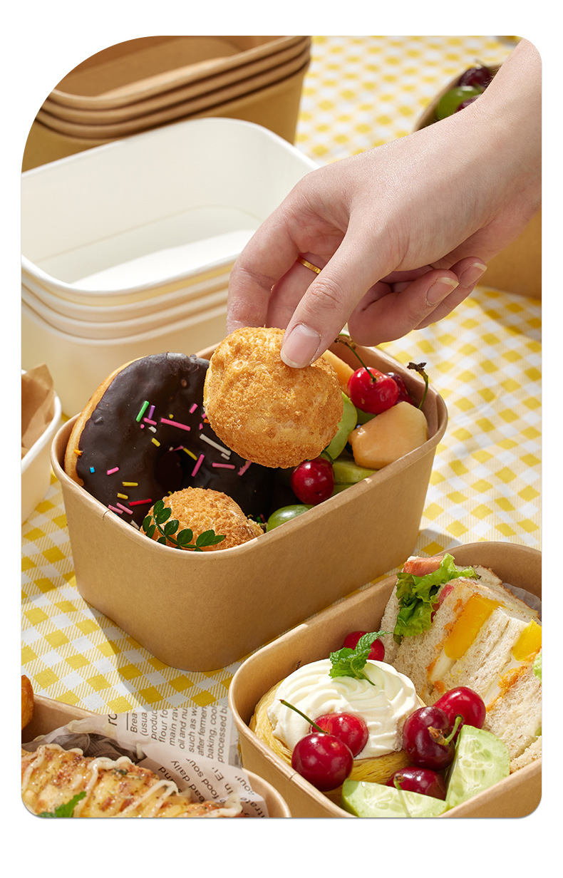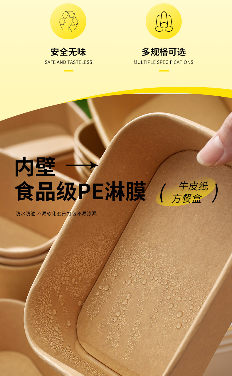 一次性餐盒方形牛皮纸水果打包盒露营野餐便当盒食品级快餐轻食盒