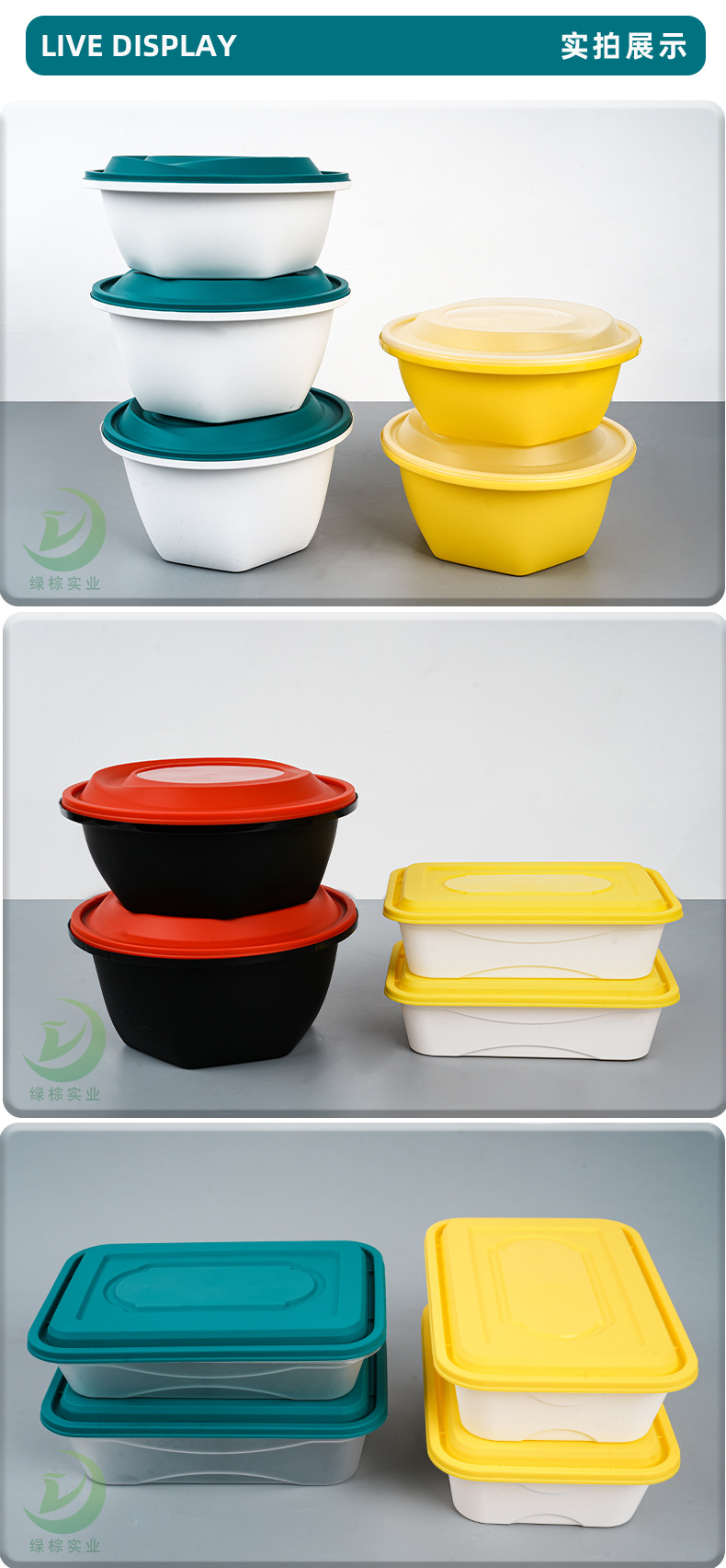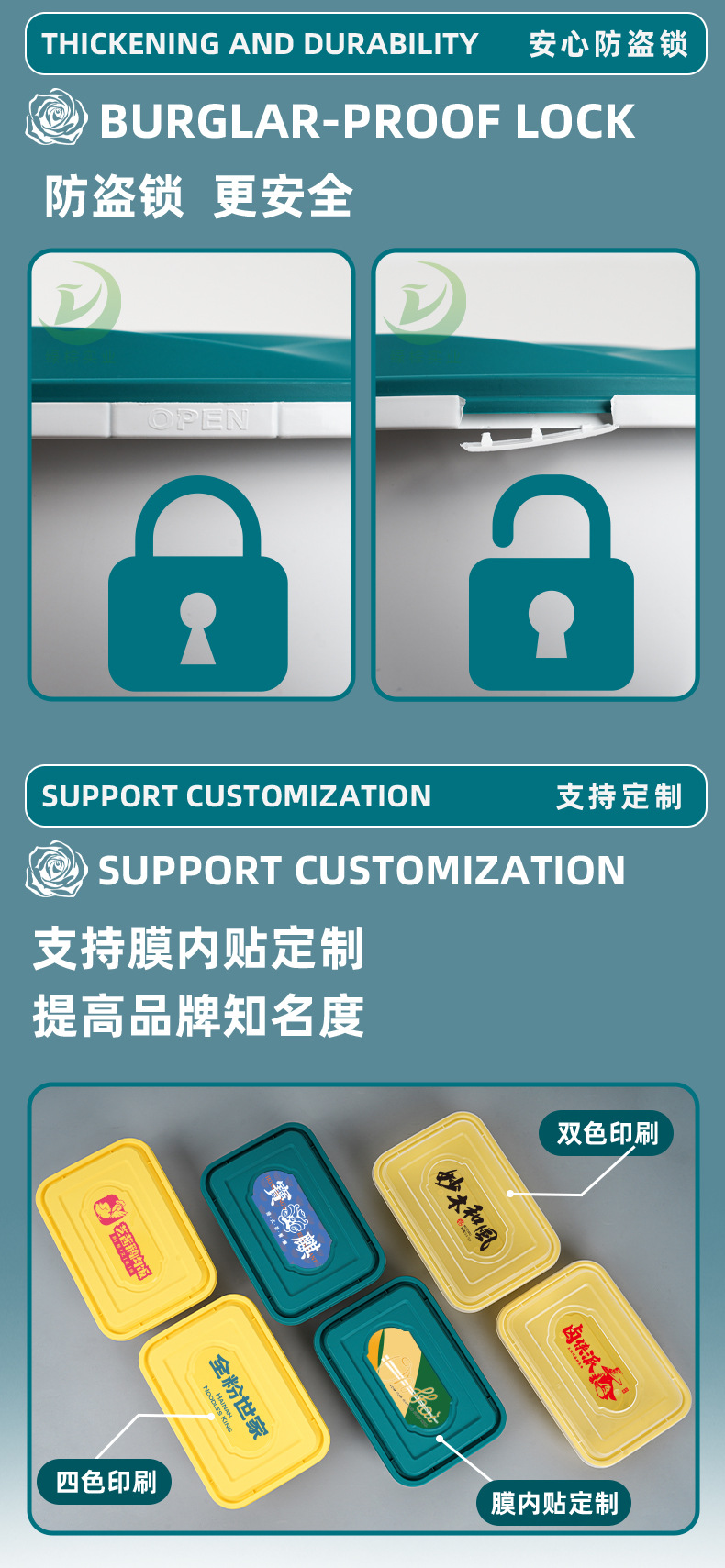 一次性餐盒防盗锁扣加厚带盖圆形外卖长方形打包盒食品级高档饭盒