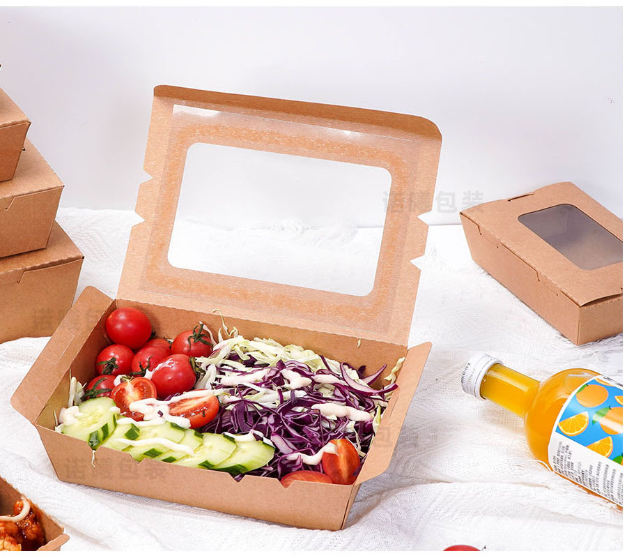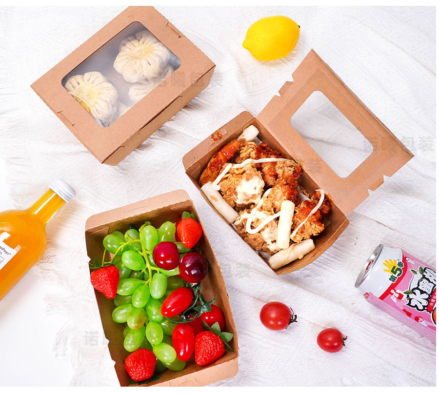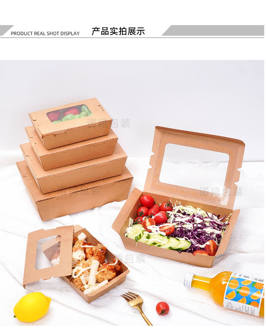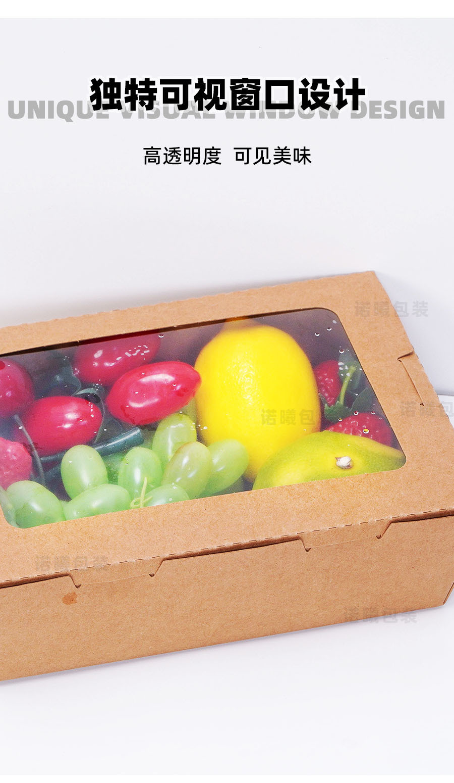 牛皮纸打包盒可视开窗一次性沙拉盒外卖餐盒水果寿司纸盒轻食便当