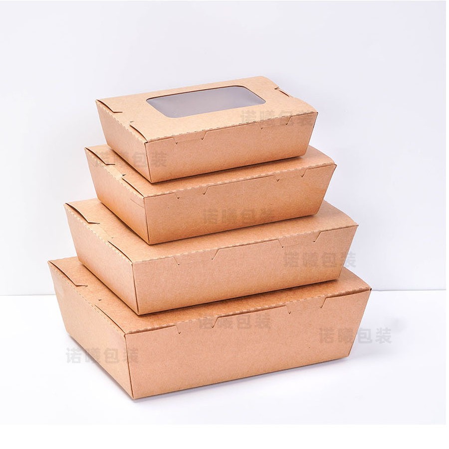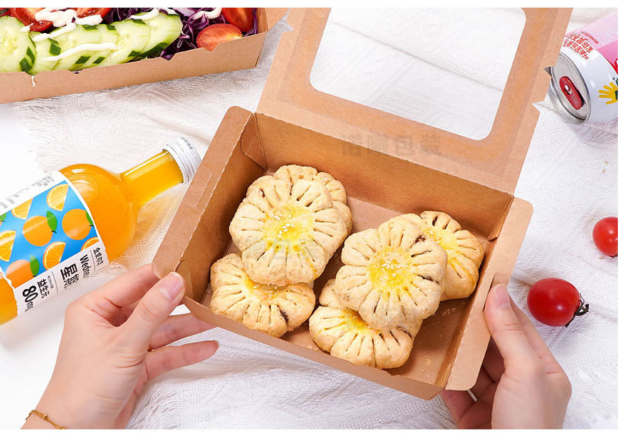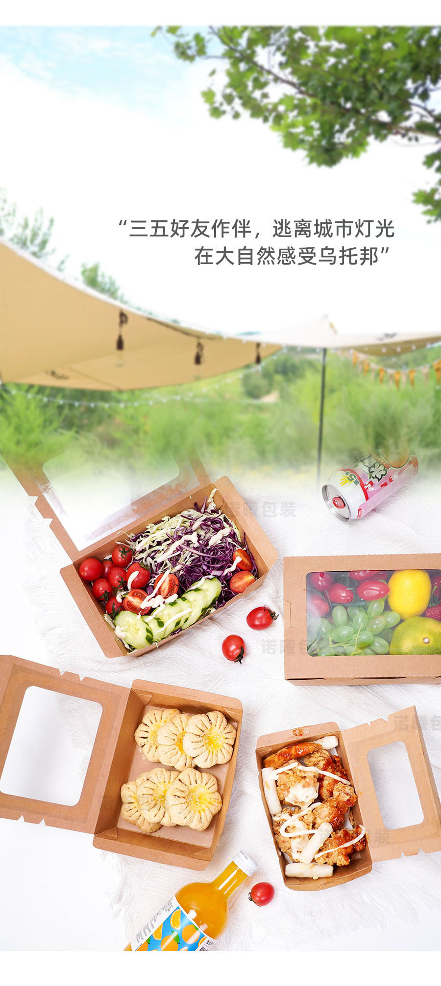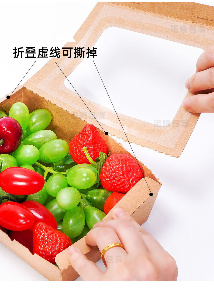 牛皮纸打包盒可视开窗一次性沙拉盒外卖餐盒水果寿司纸盒轻食便当