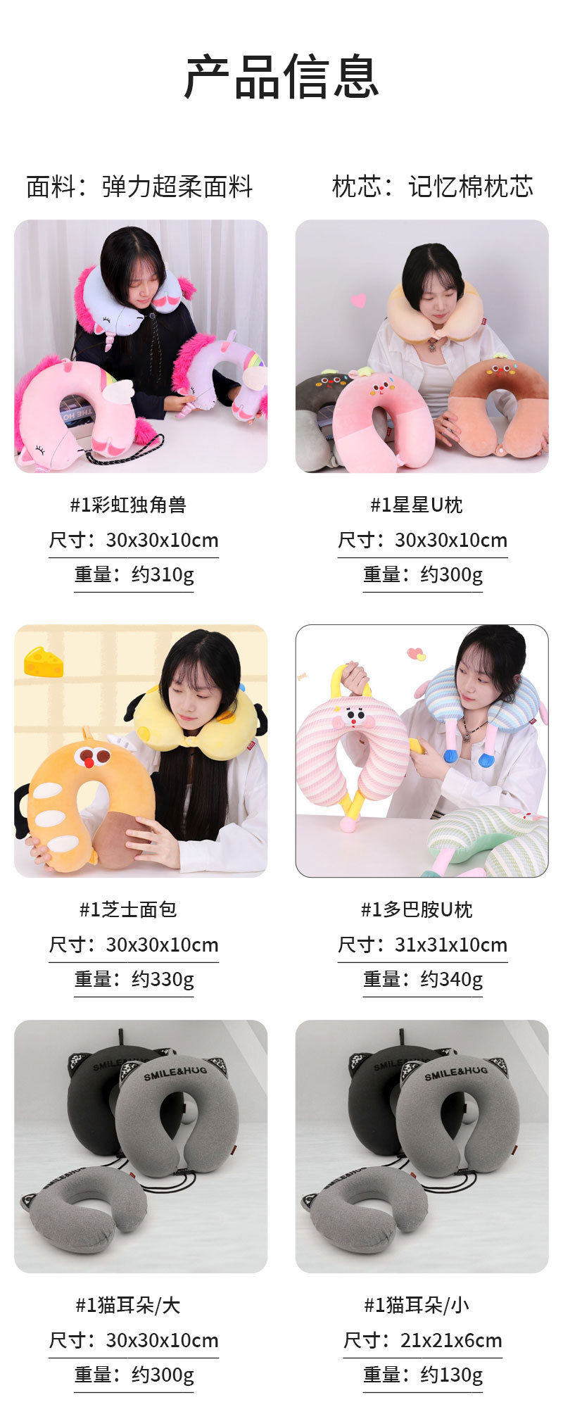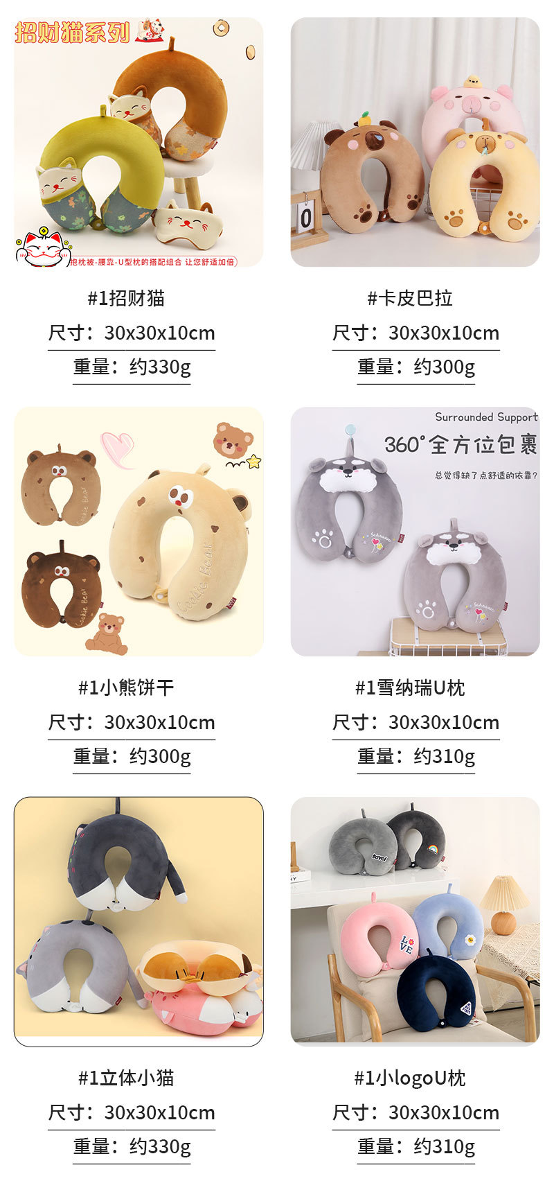 卡通动物慢回弹记忆棉U型枕 康乐屋办公旅行护颈枕颈枕u形枕批发