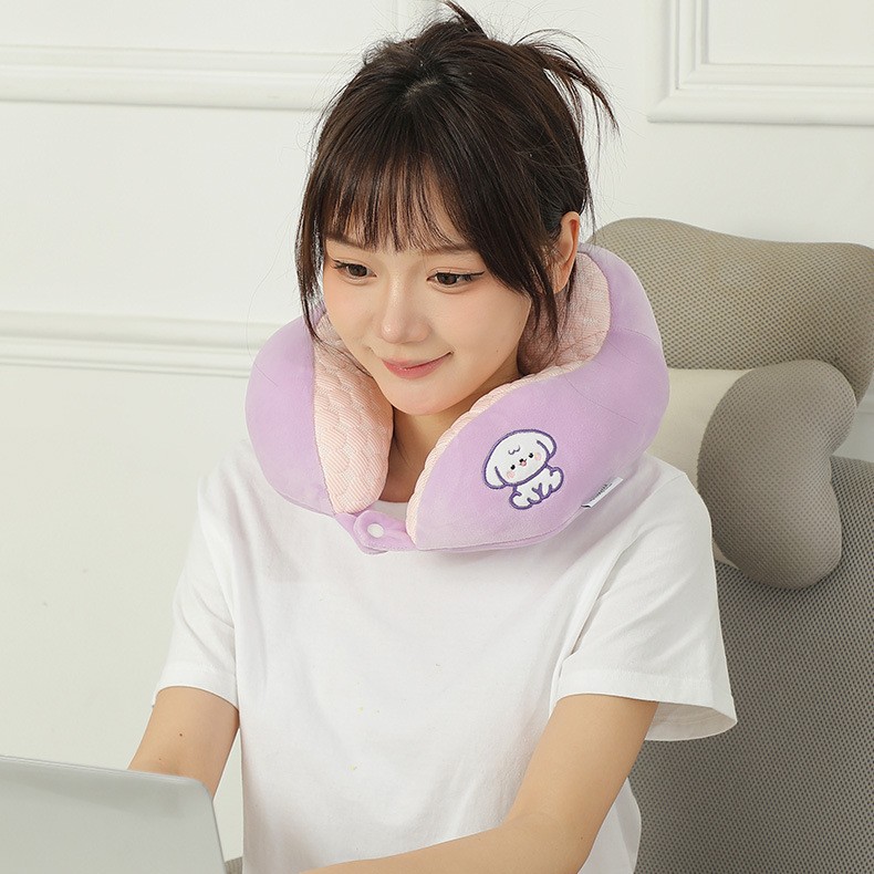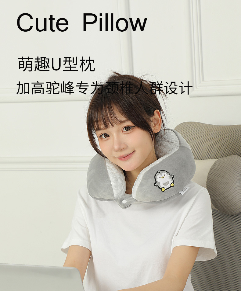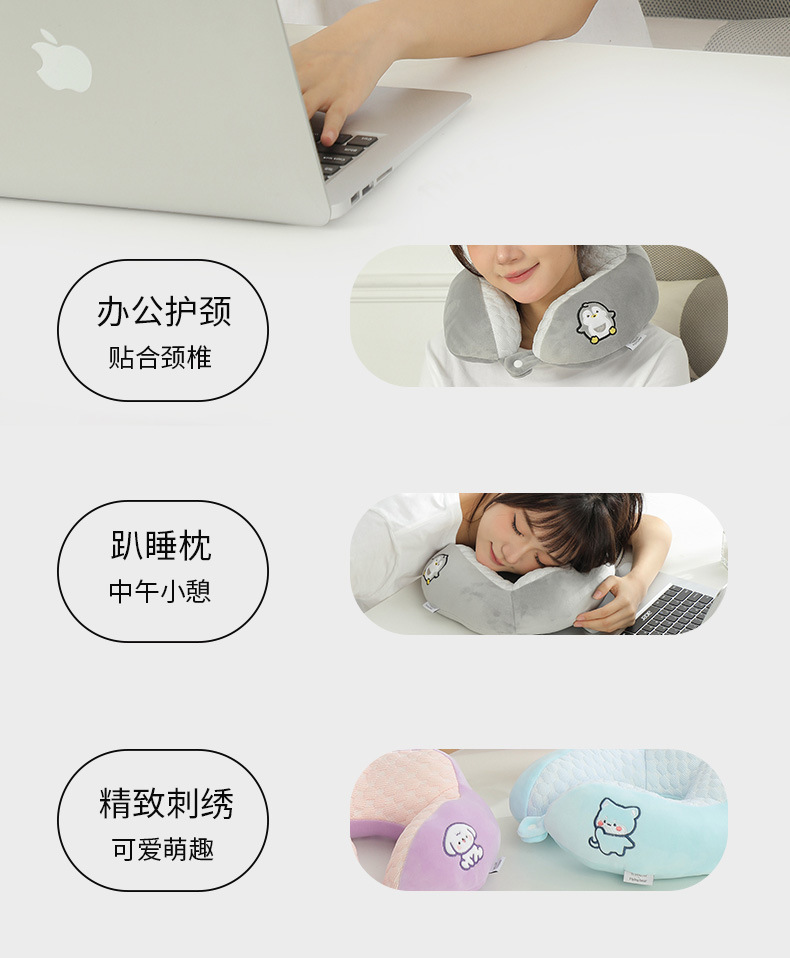 卡通刺绣双驼峰U型枕办工室PP棉午睡枕可爱飞机枕远途出游护颈枕