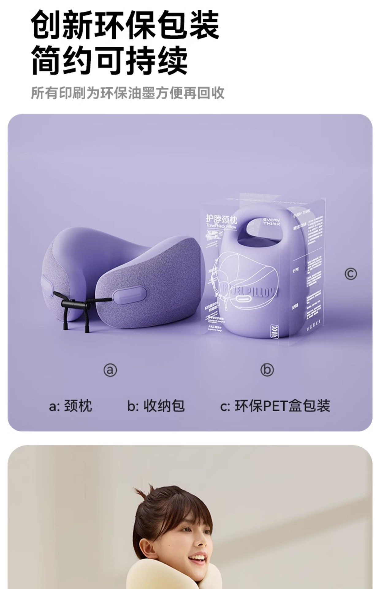 EVERYTHINK睡洞旅行颈枕飞机睡觉办公护颈脖U形枕记忆棉便携u型枕