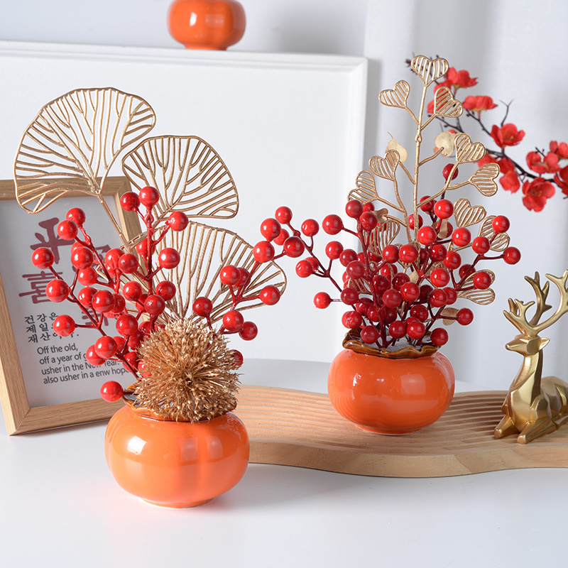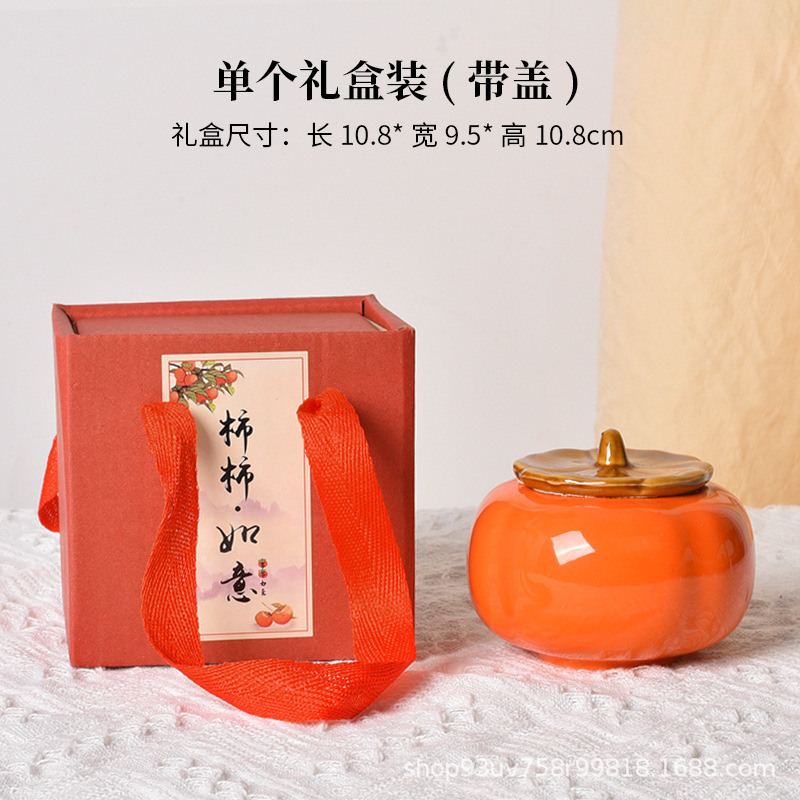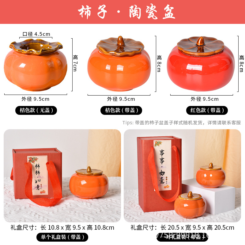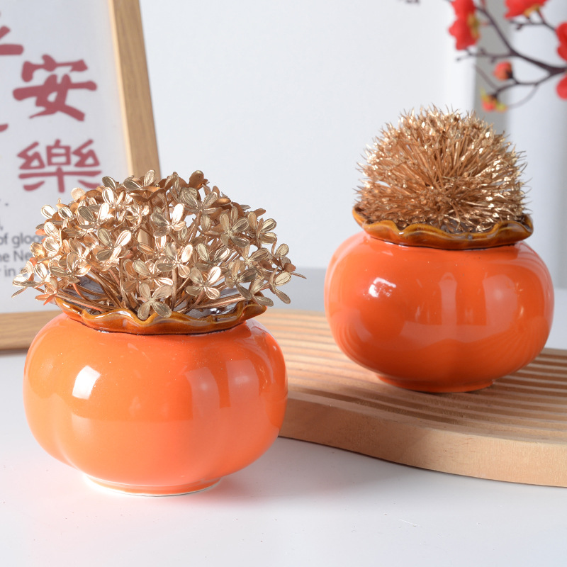 陶瓷花盆柿柿如意柿子装装饰花盆中国风年宵插花摆件伴手礼陶瓷罐