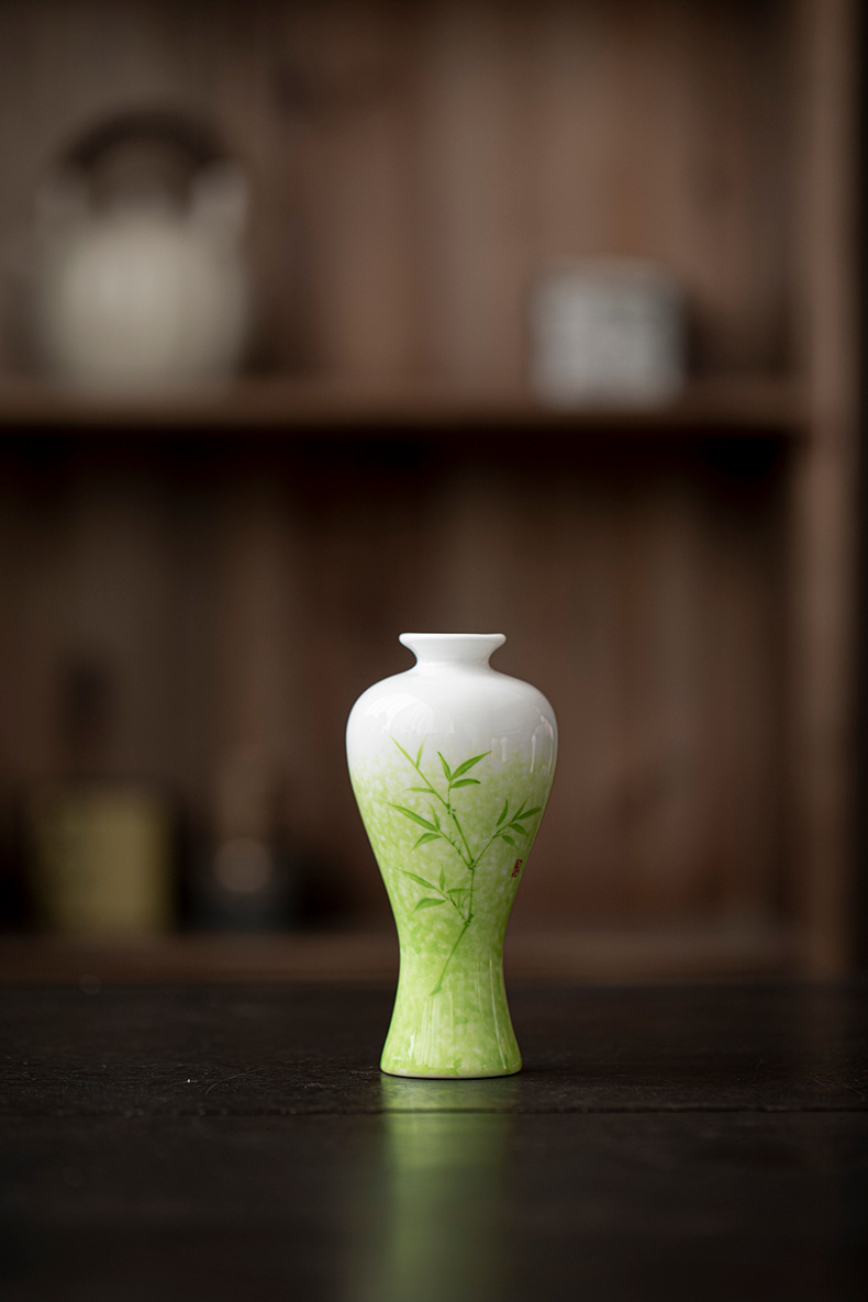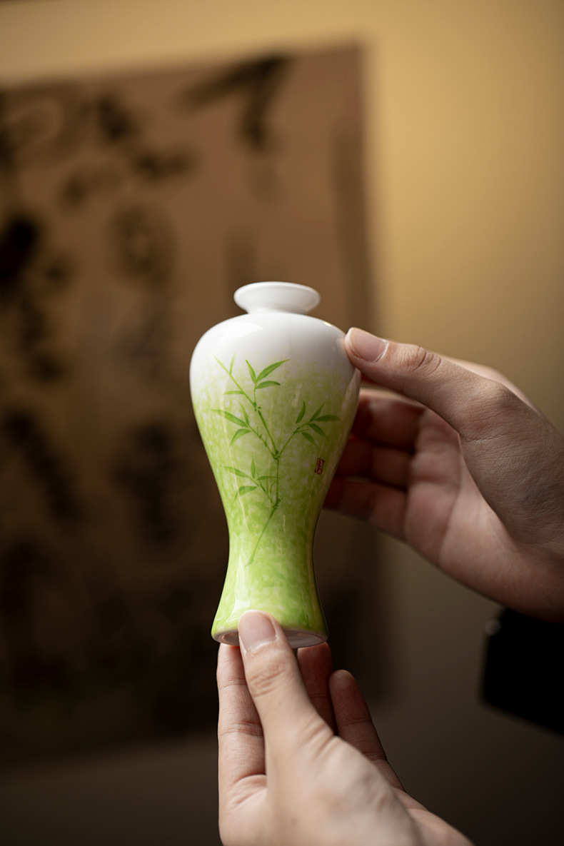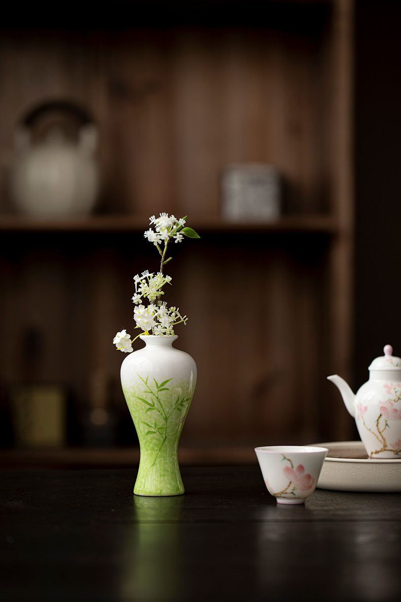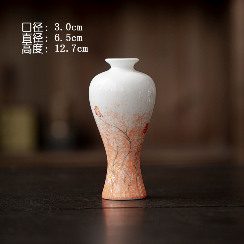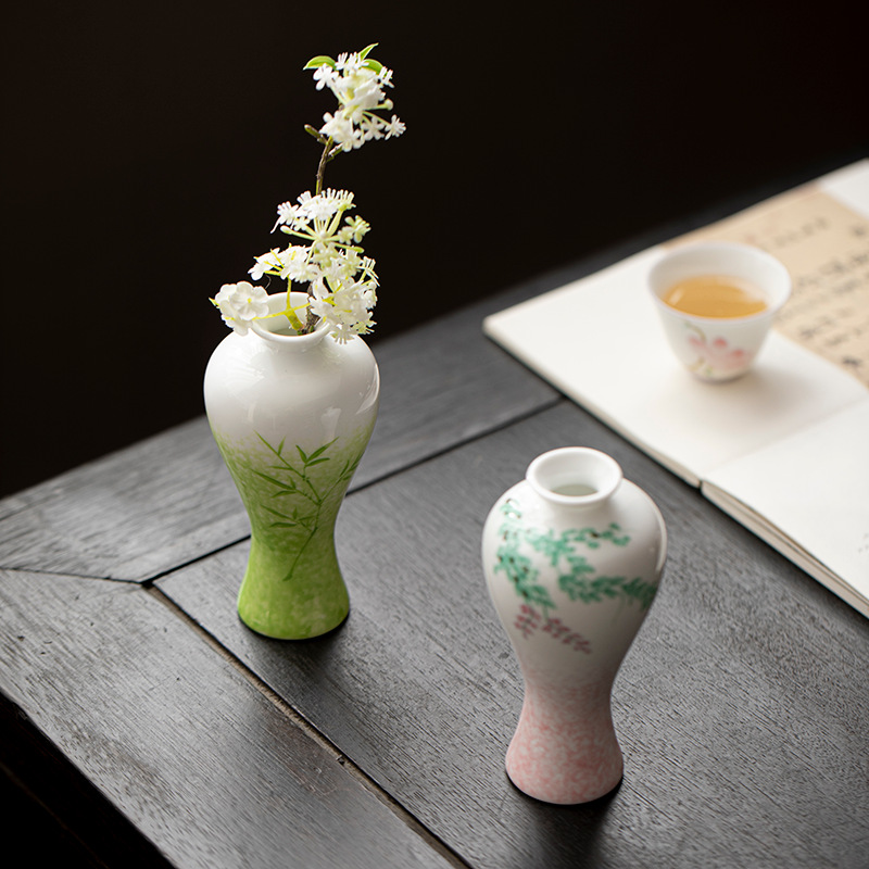 手绘陶瓷小花瓶茶室茶桌装饰品茶道摆件水培花器客厅插花中式花插