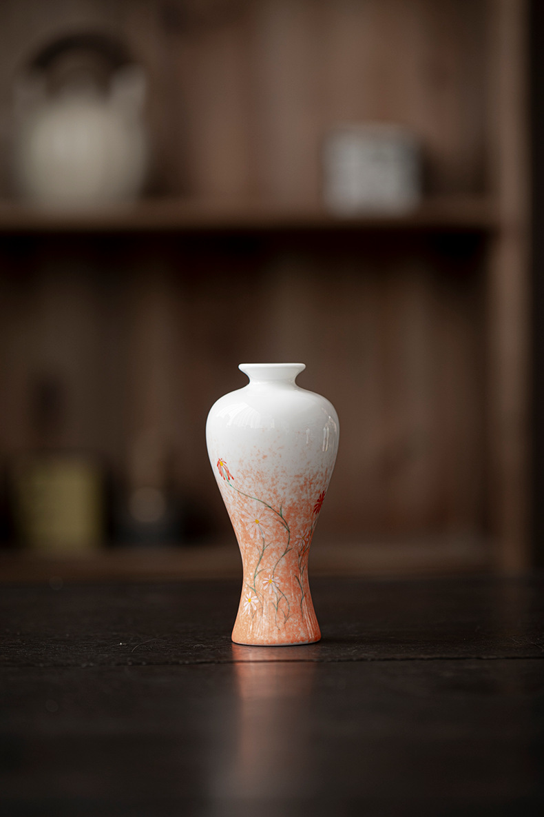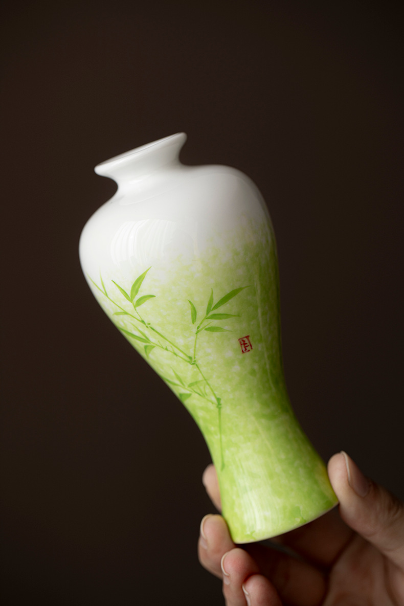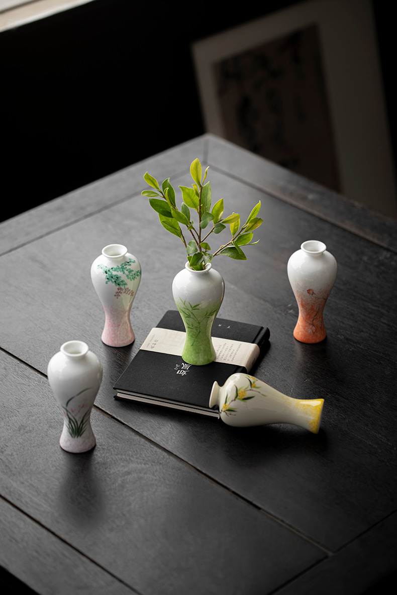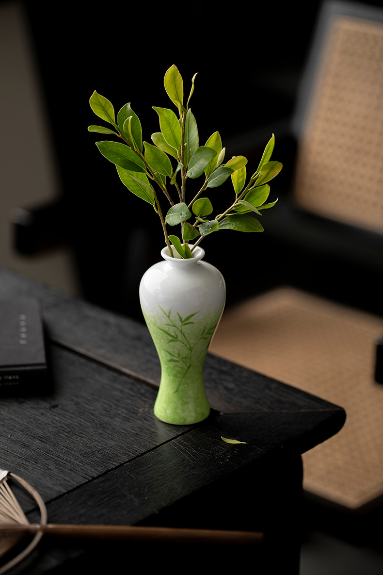 手绘陶瓷小花瓶茶室茶桌装饰品茶道摆件水培花器客厅插花中式花插