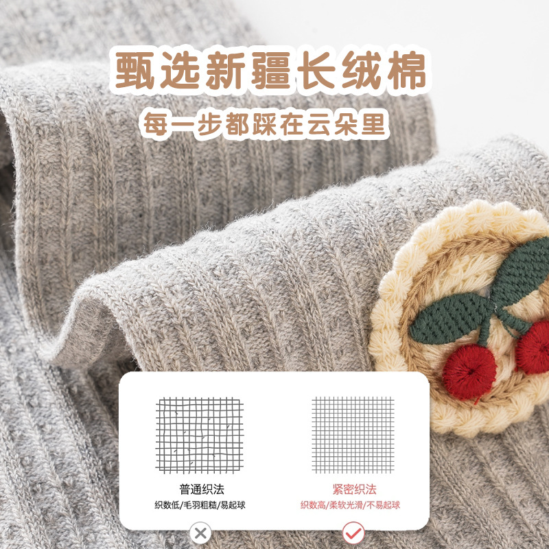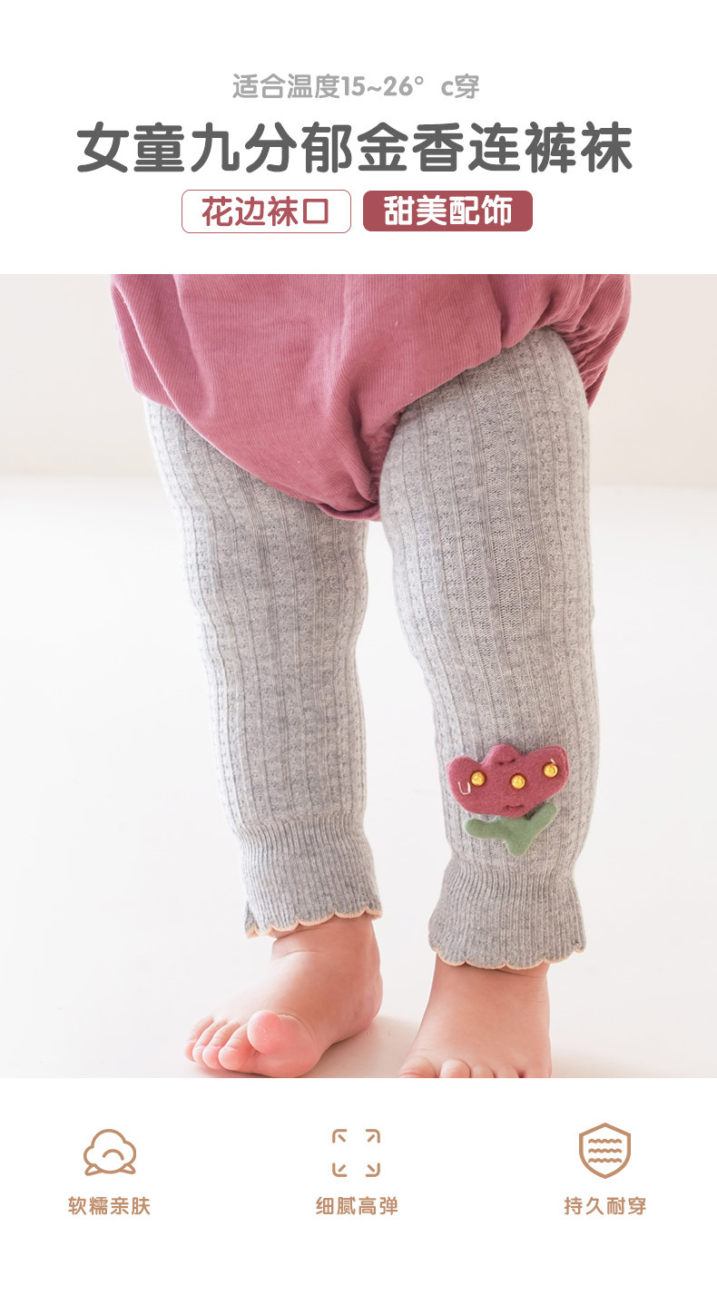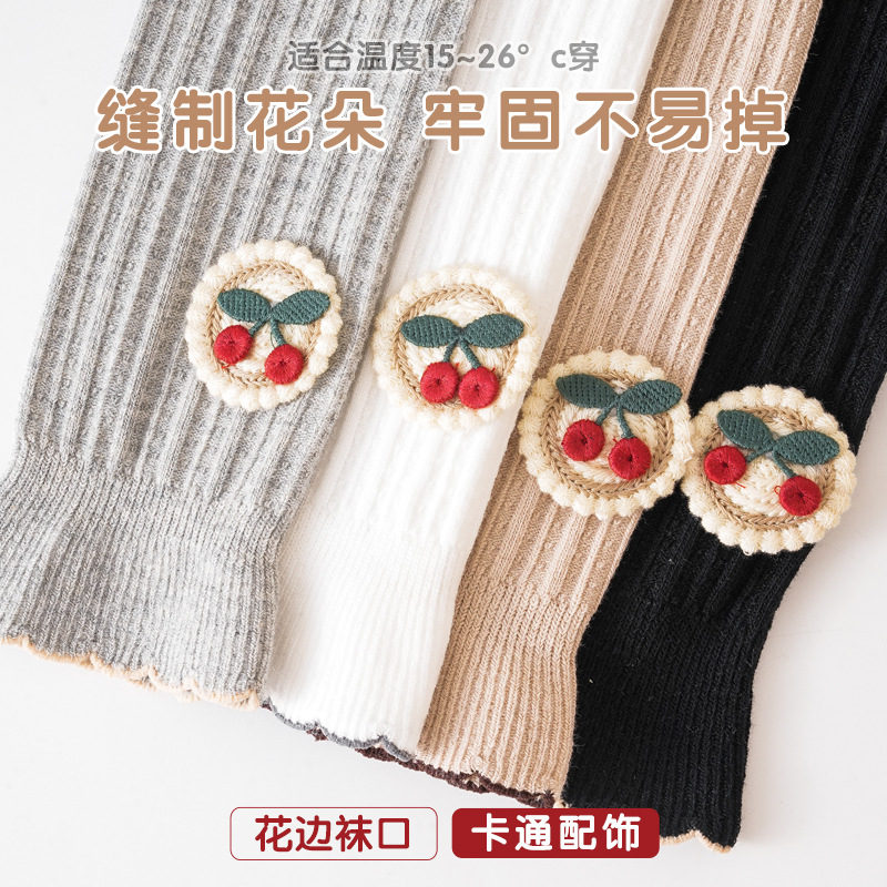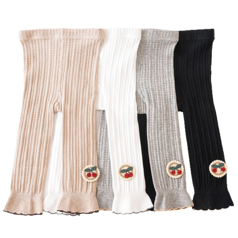 春夏女童打底裤薄款超弹不掉边防蚊袜九分花边小樱桃女童裤袜