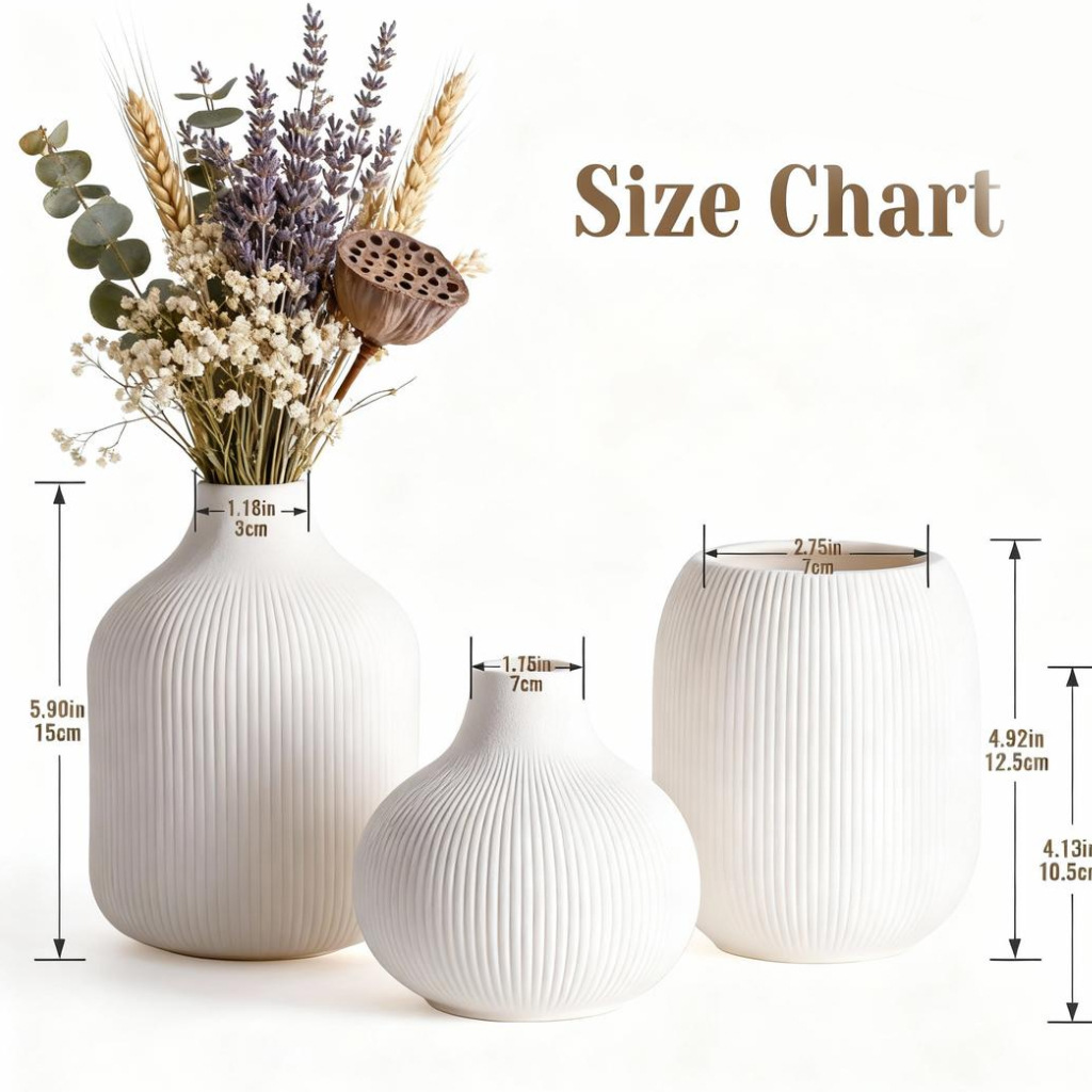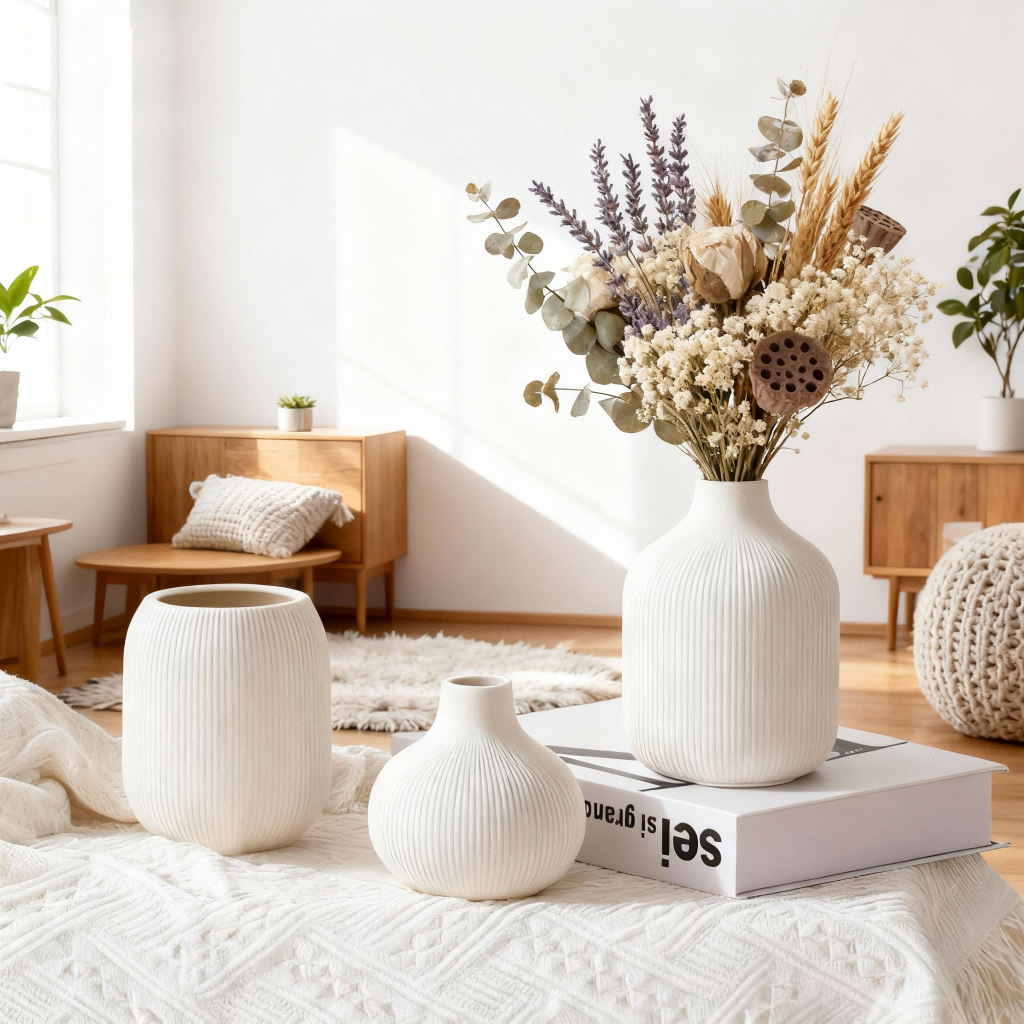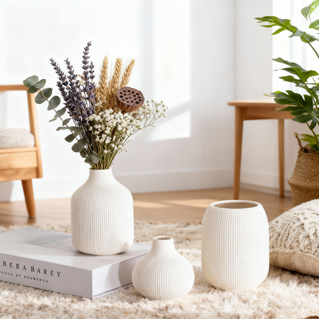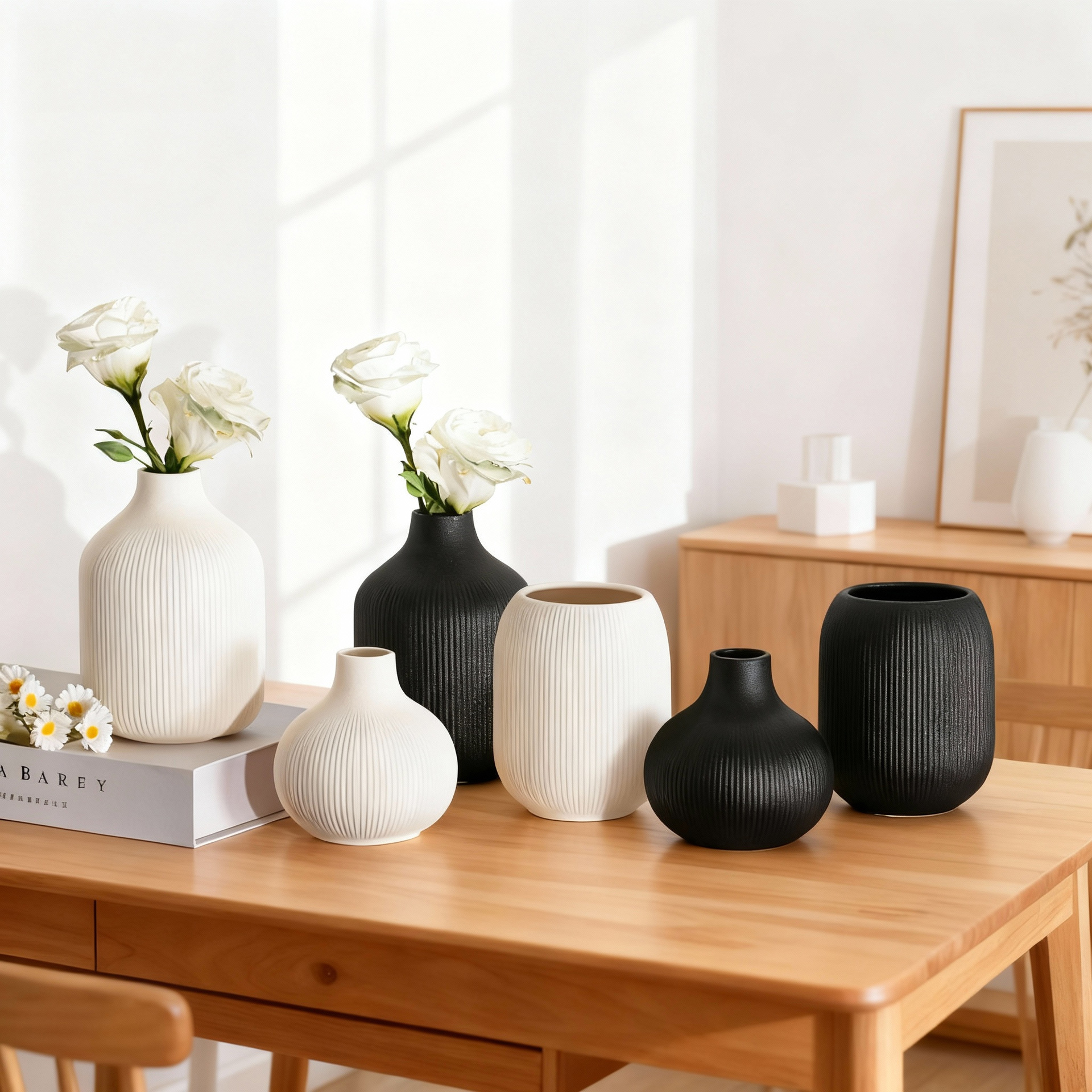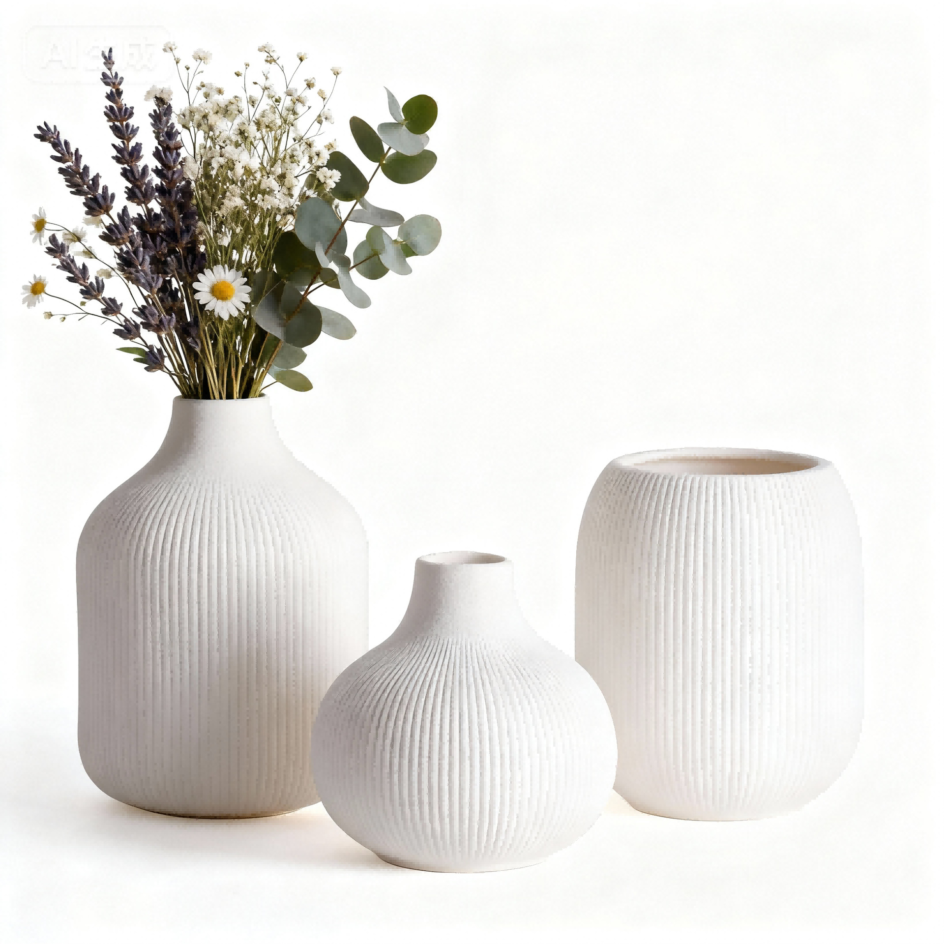 陶瓷花瓶套装线条套装花瓶插花现代花器三件套白色花瓶装饰摆件