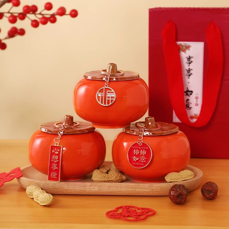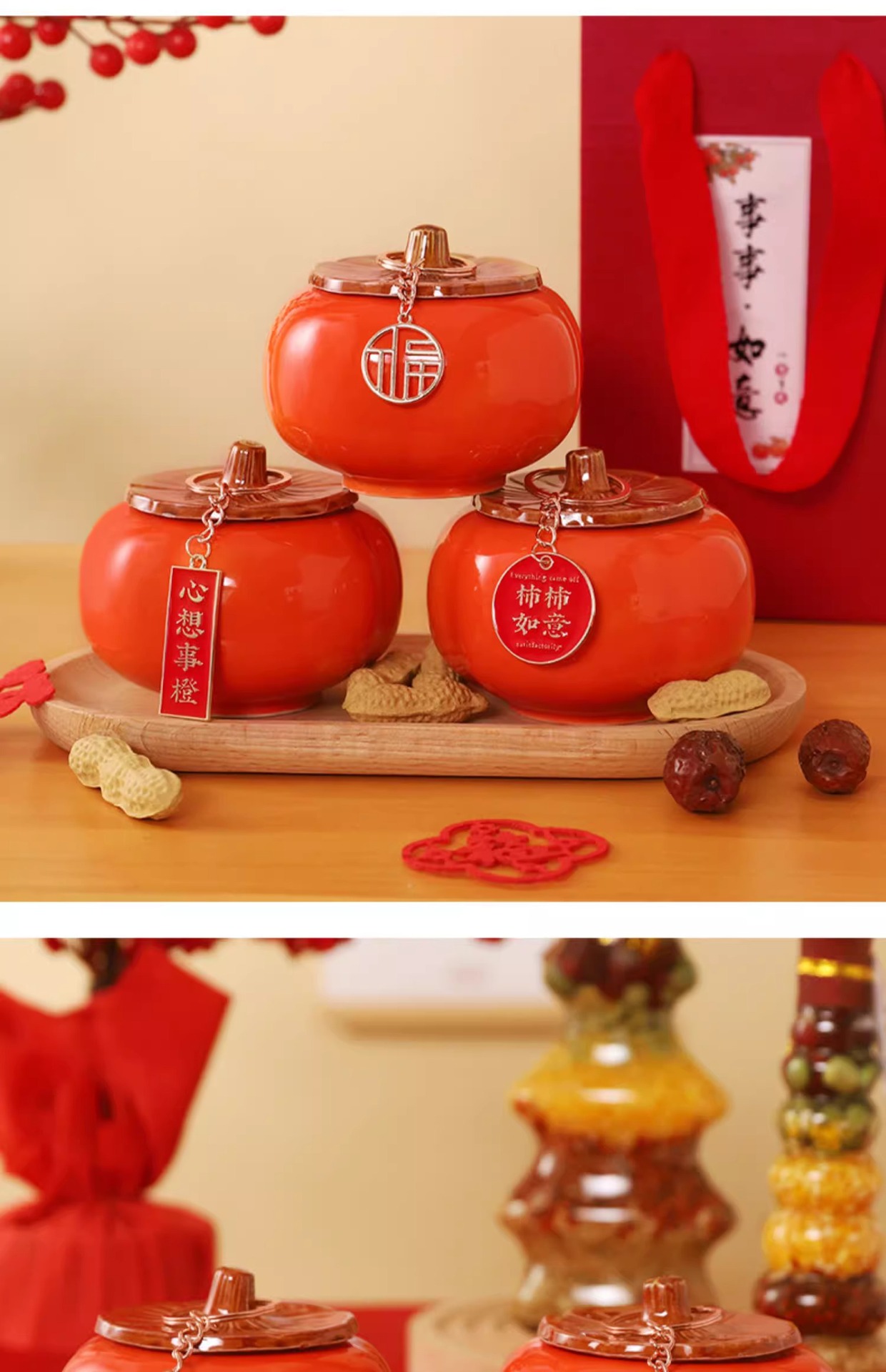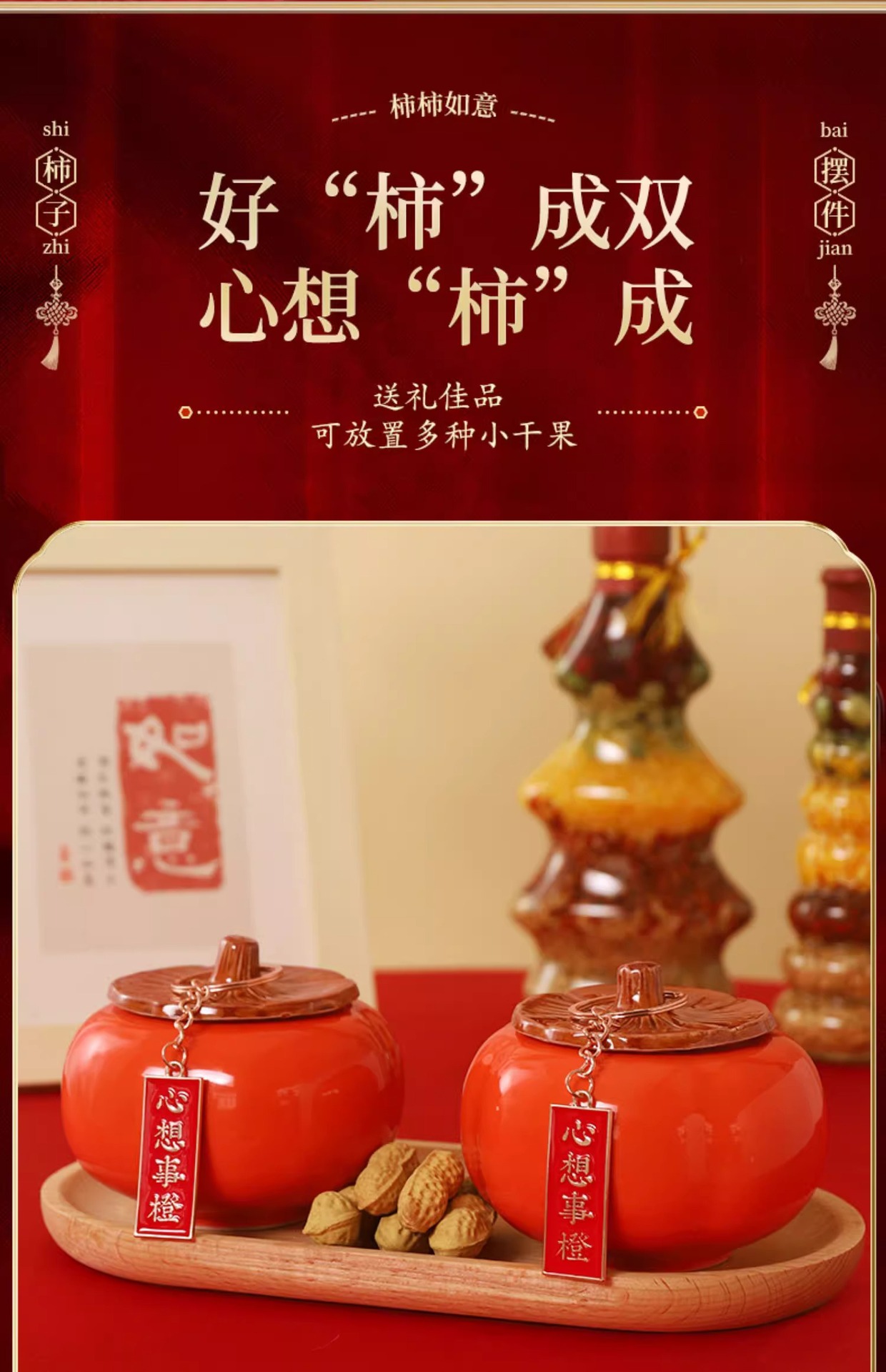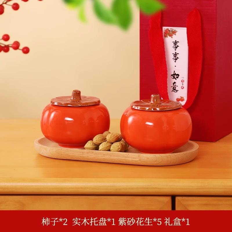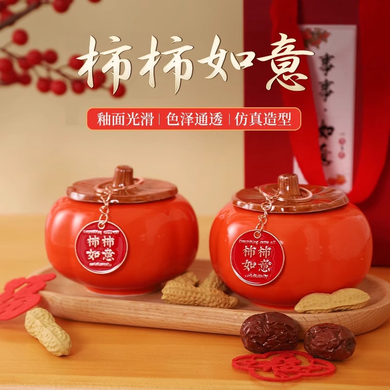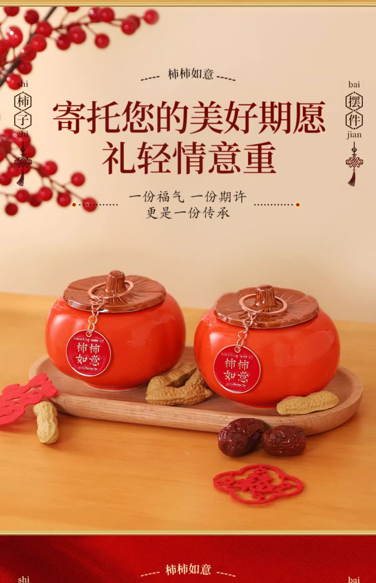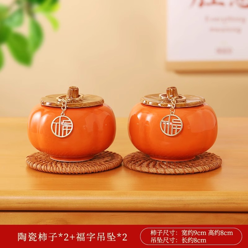 乔迁之喜柿柿如意陶瓷摆件客厅入宅礼品新居布置装饰用品柿子礼盒