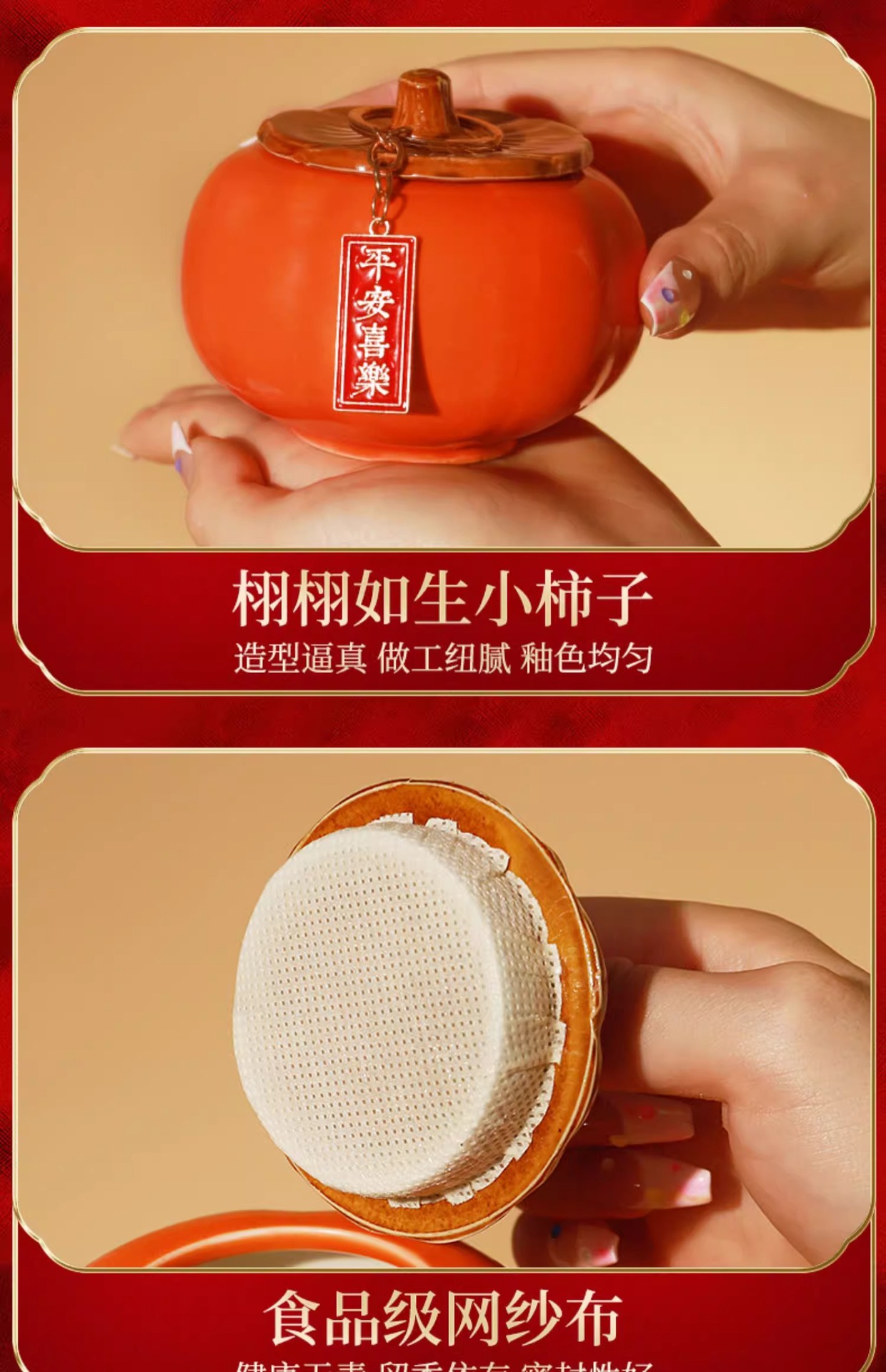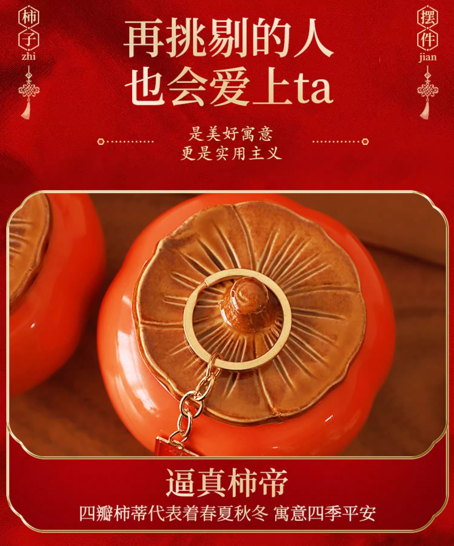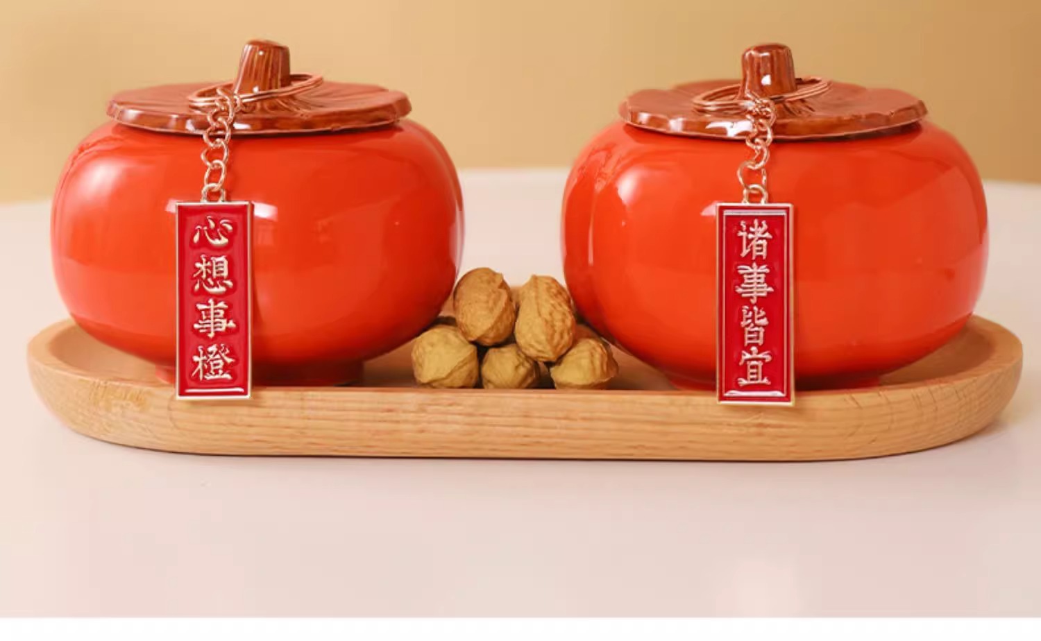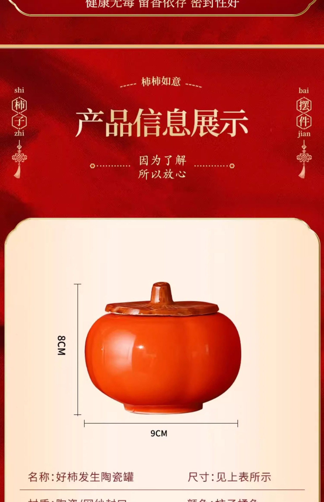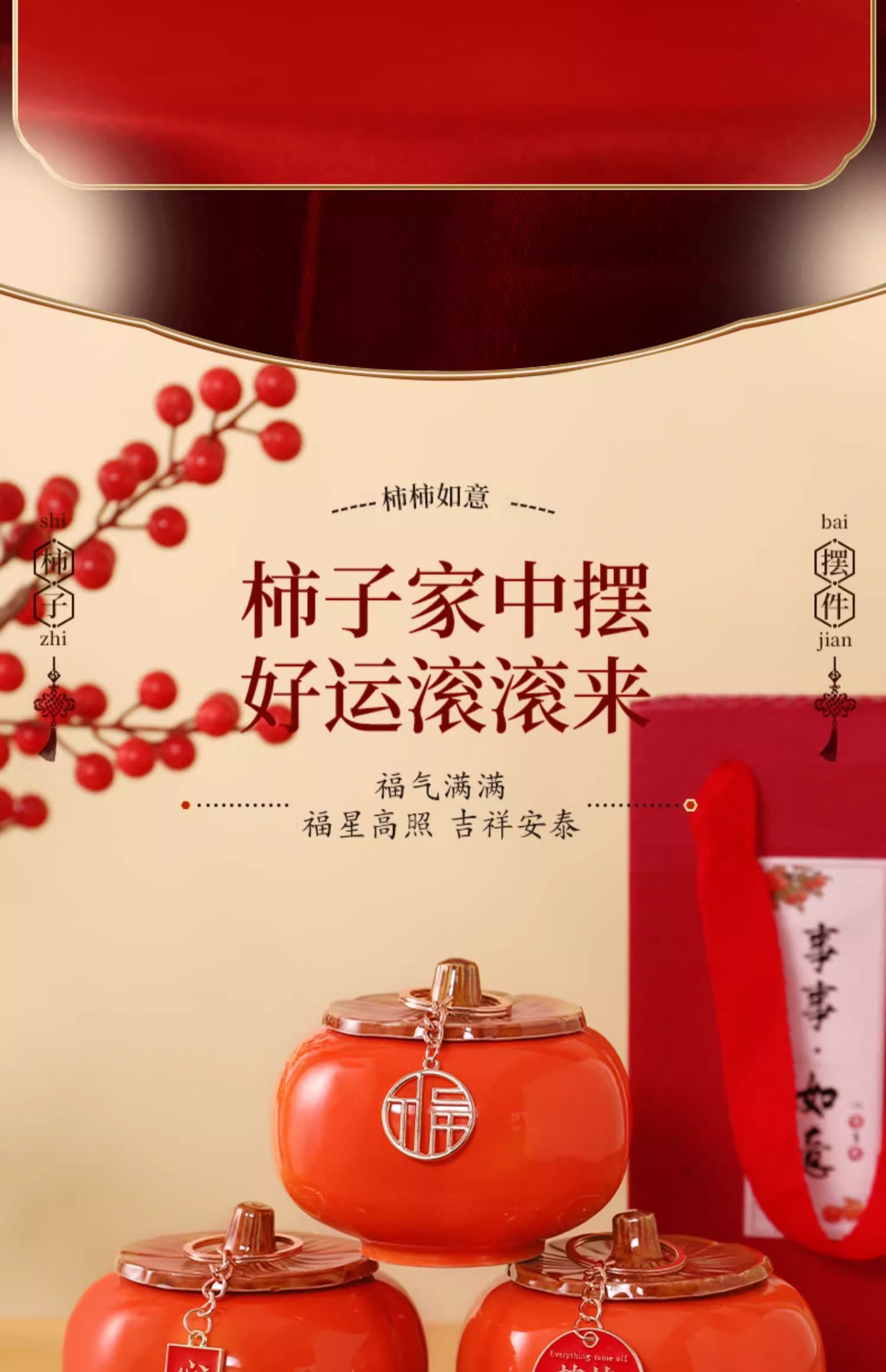 乔迁之喜柿柿如意陶瓷摆件客厅入宅礼品新居布置装饰用品柿子礼盒