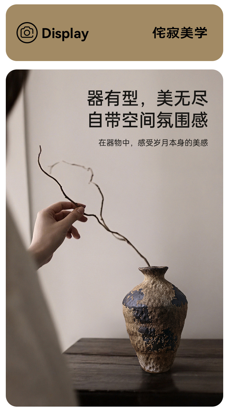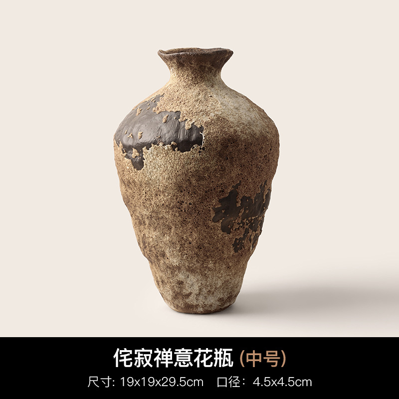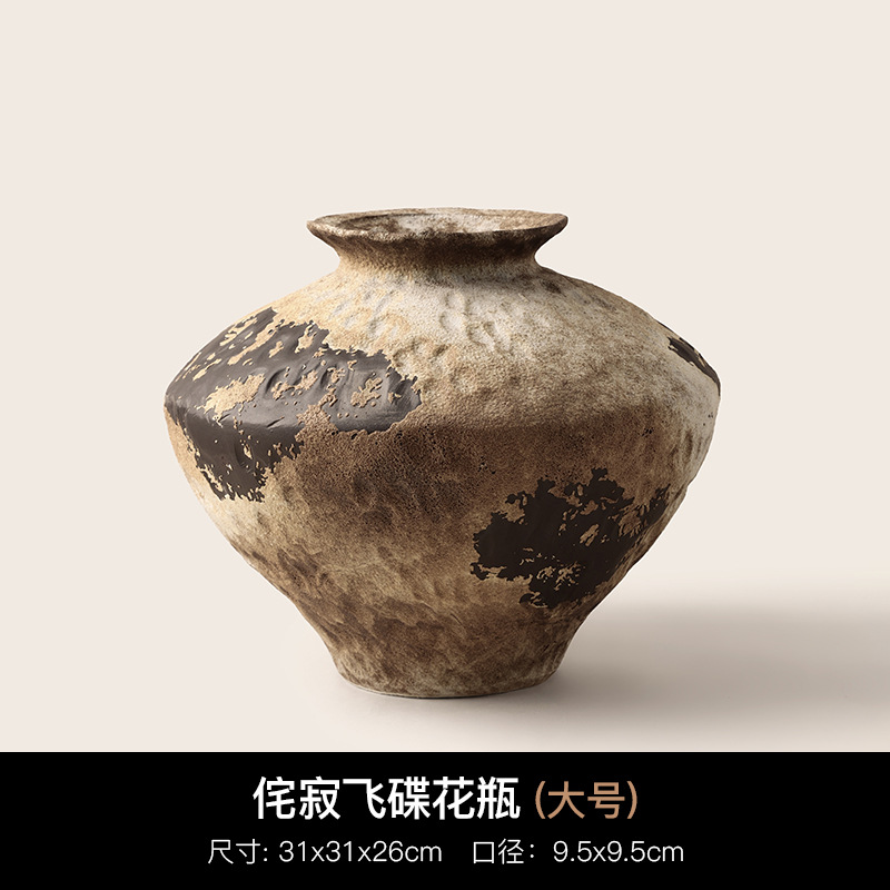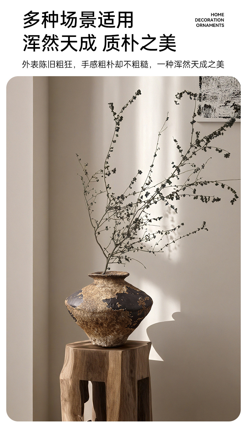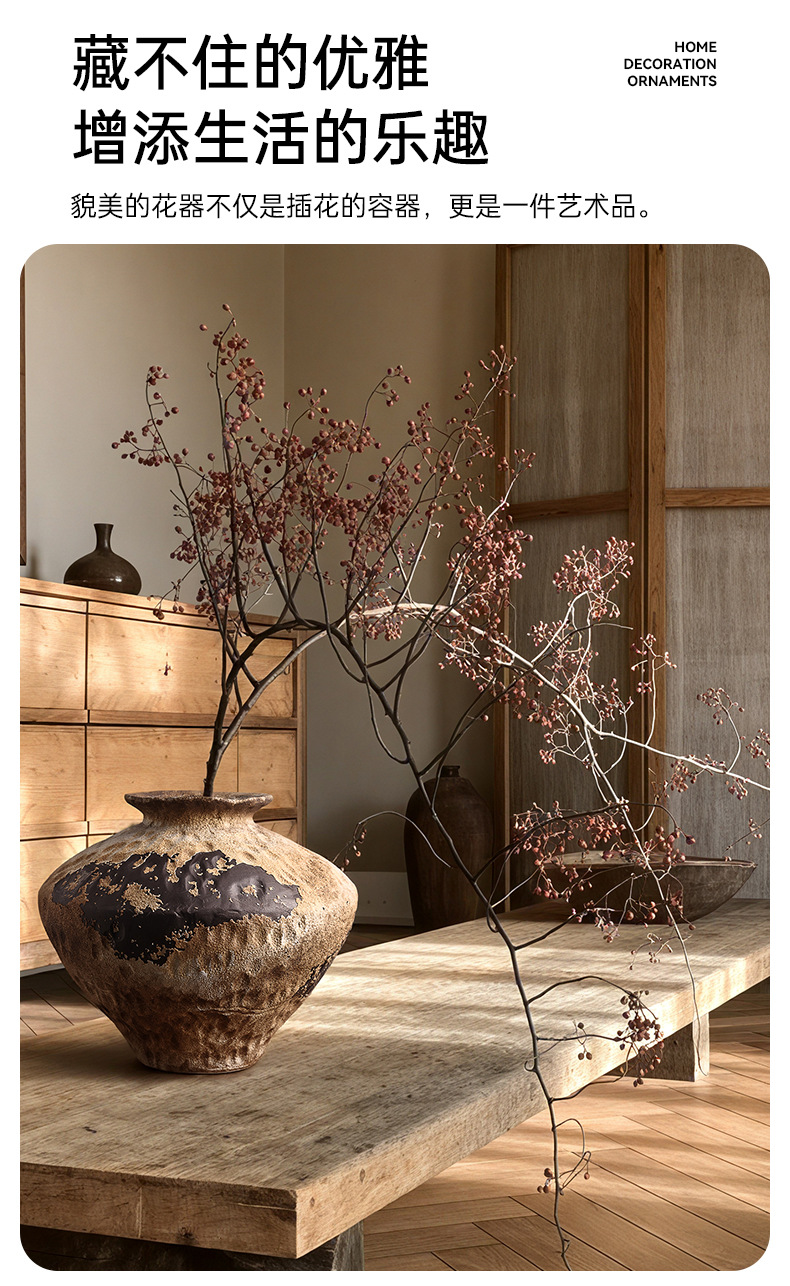 新中式陶瓷花瓶摆件客厅插花侘寂风高级感复古电视柜手作粗陶装饰