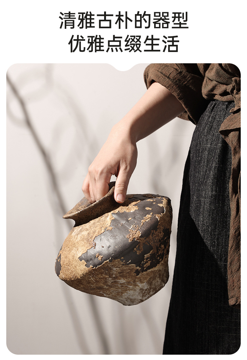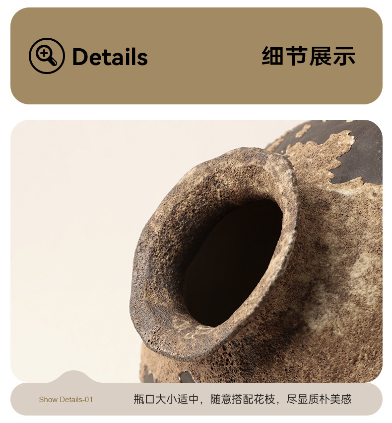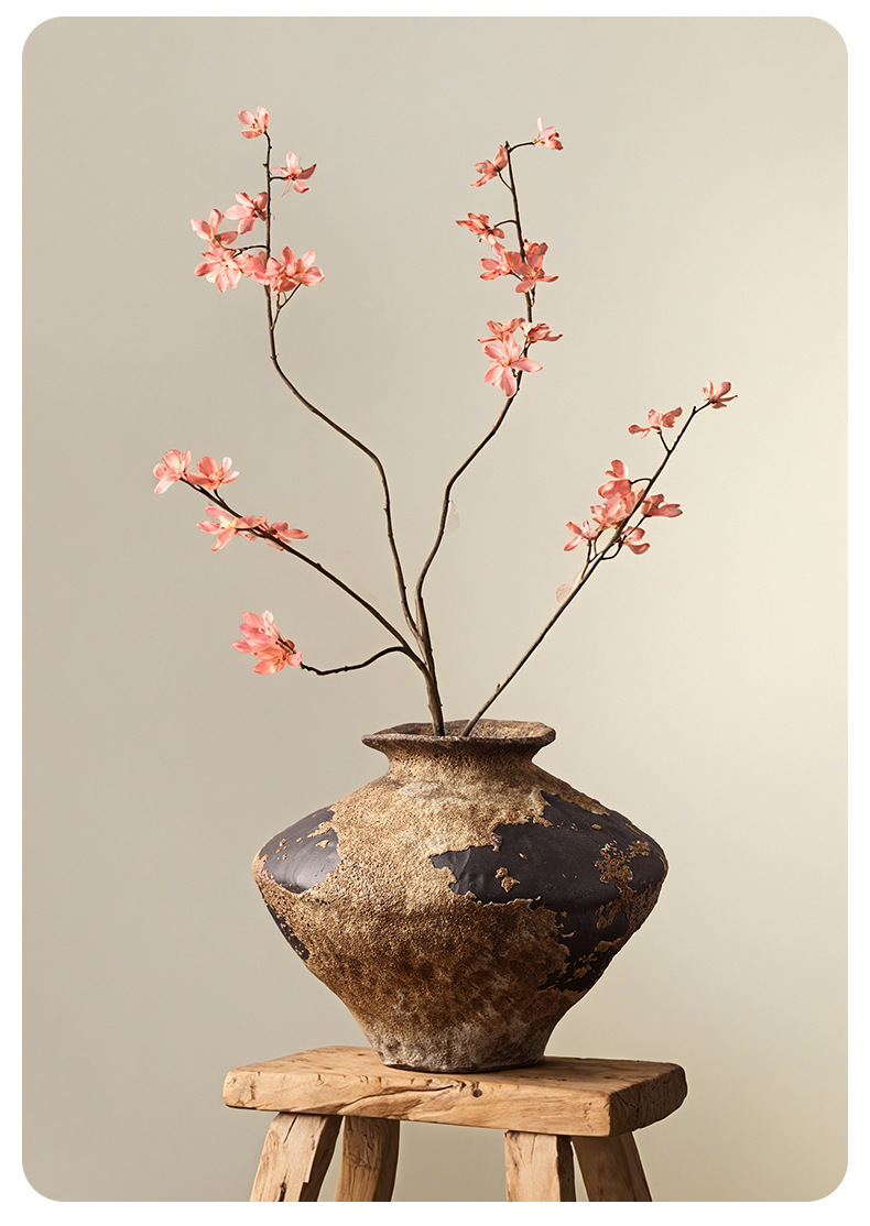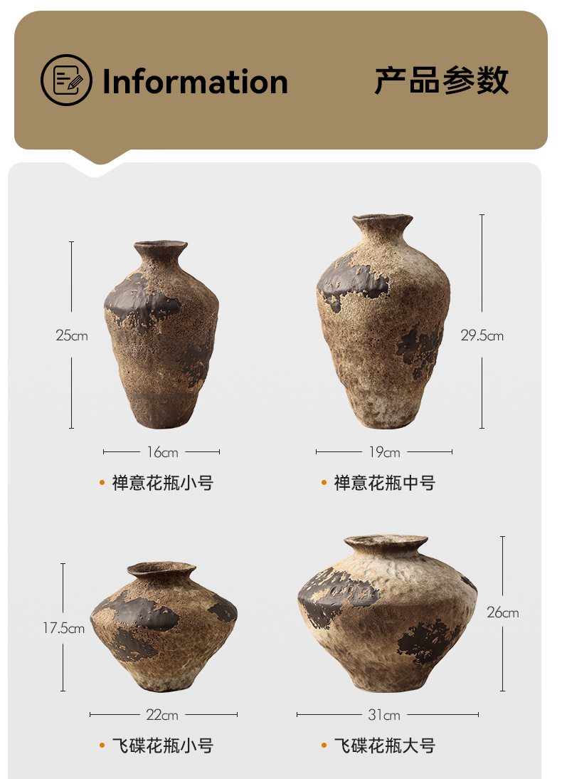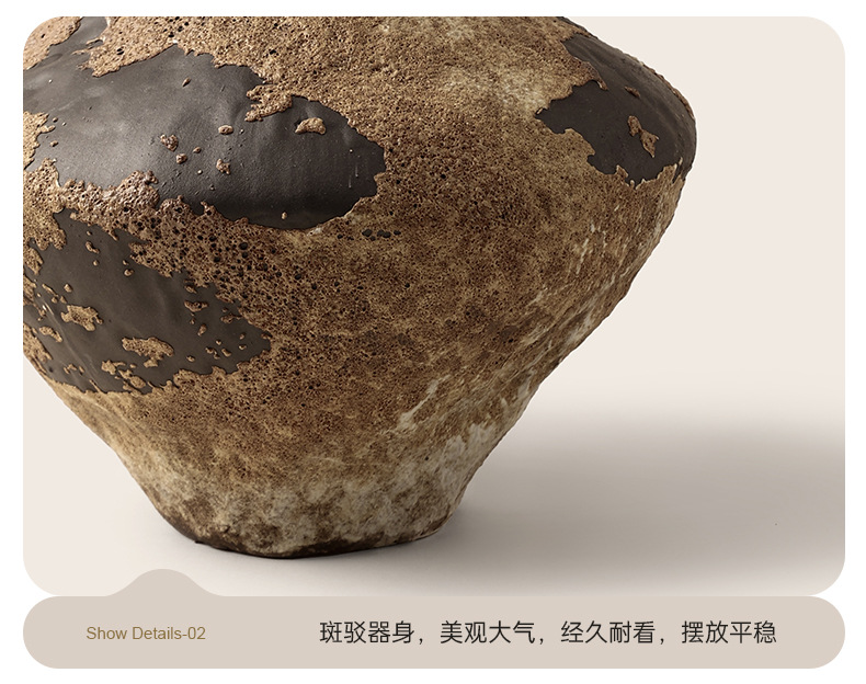 新中式陶瓷花瓶摆件客厅插花侘寂风高级感复古电视柜手作粗陶装饰