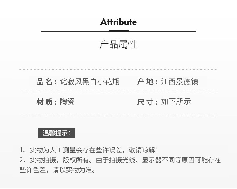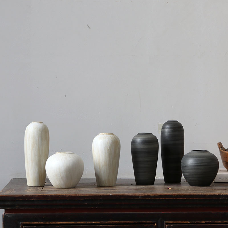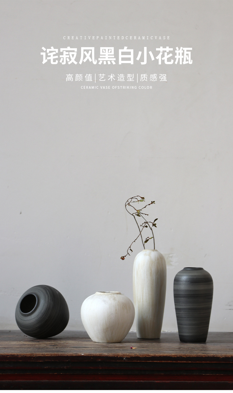 陶瓷花瓶诧寂风黑白小花瓶创意干花插花茶道花艺花器厂家批发