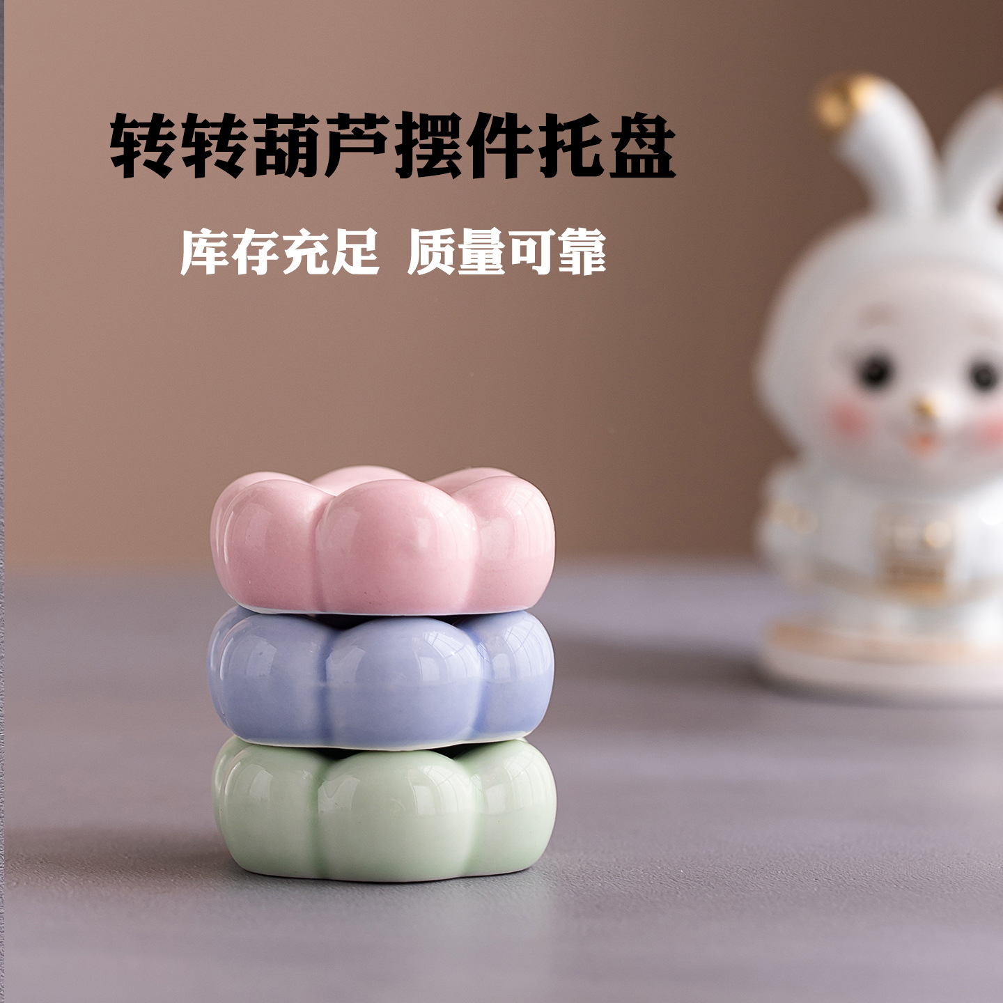 网红爆款创意花朵陶瓷底座装饰品小摆件配件瓷葫芦配件陶瓷转转乐