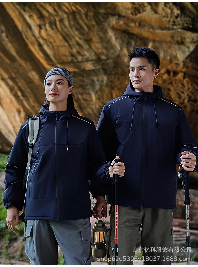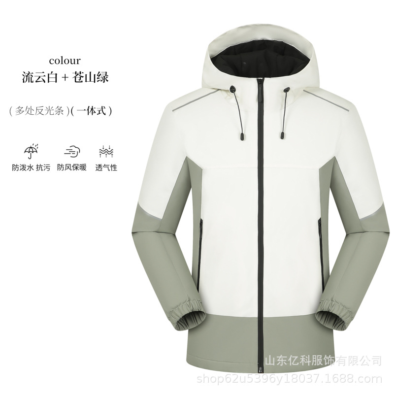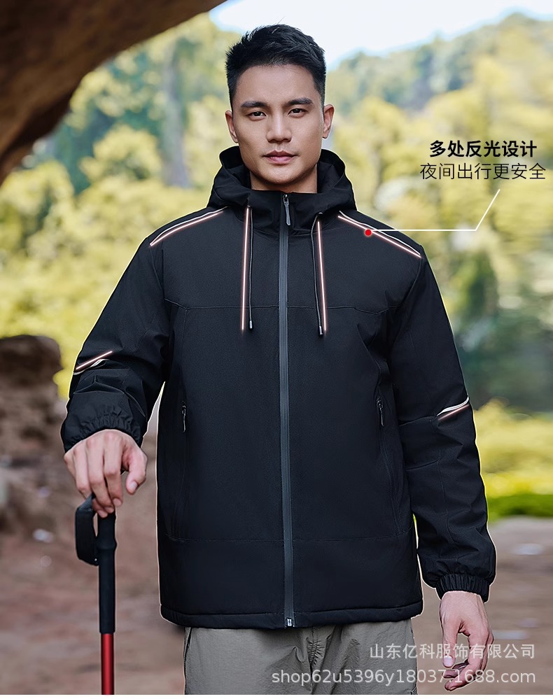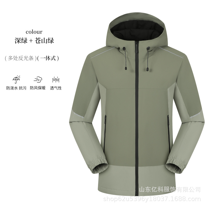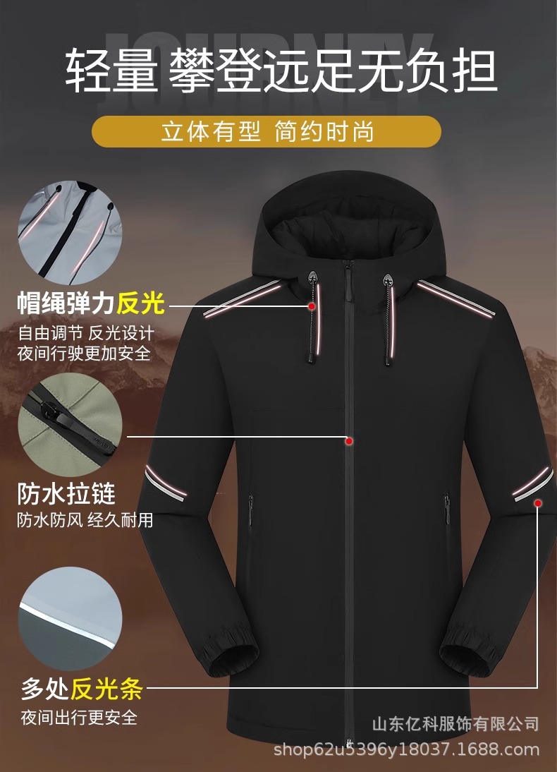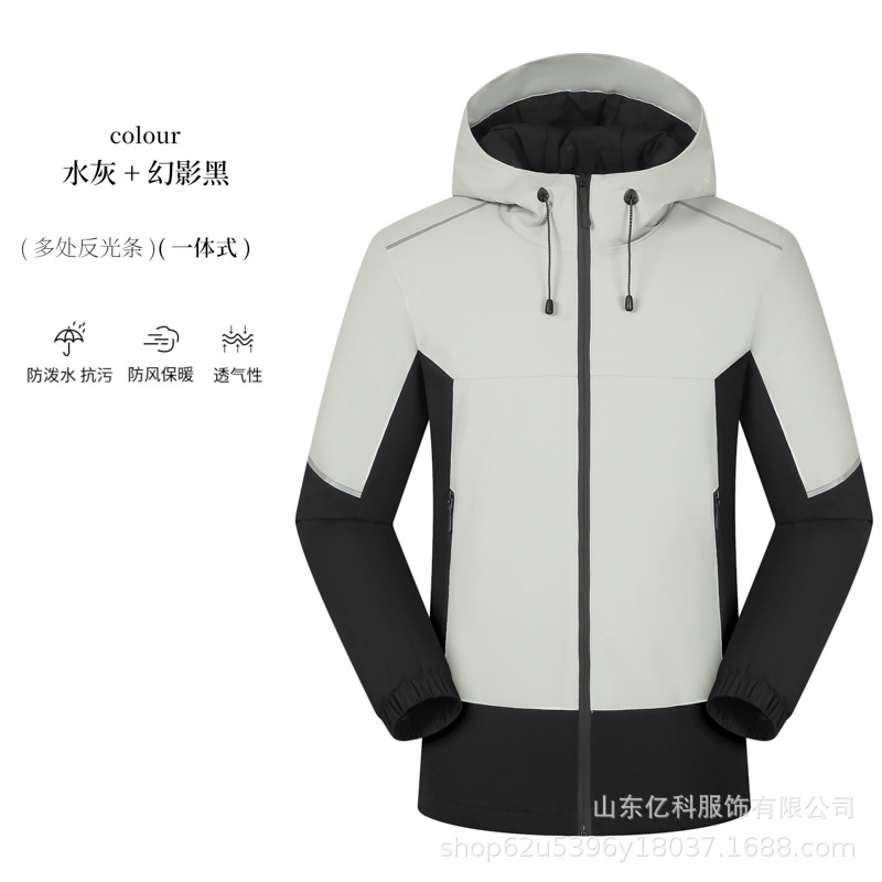反光冲锋衣工作服定制刺绣LOGO印字一体登山服加绒防水防风男女款