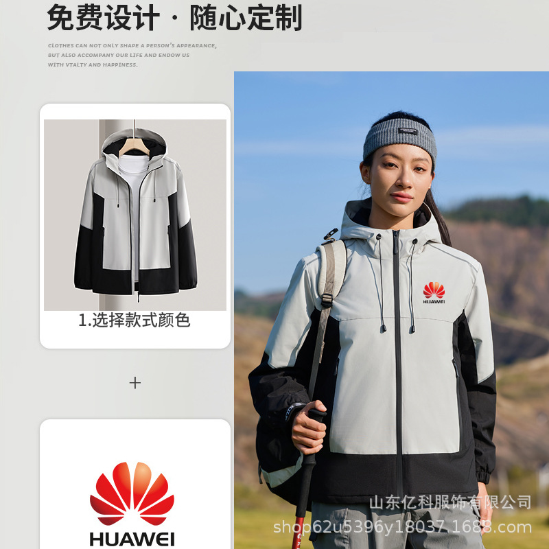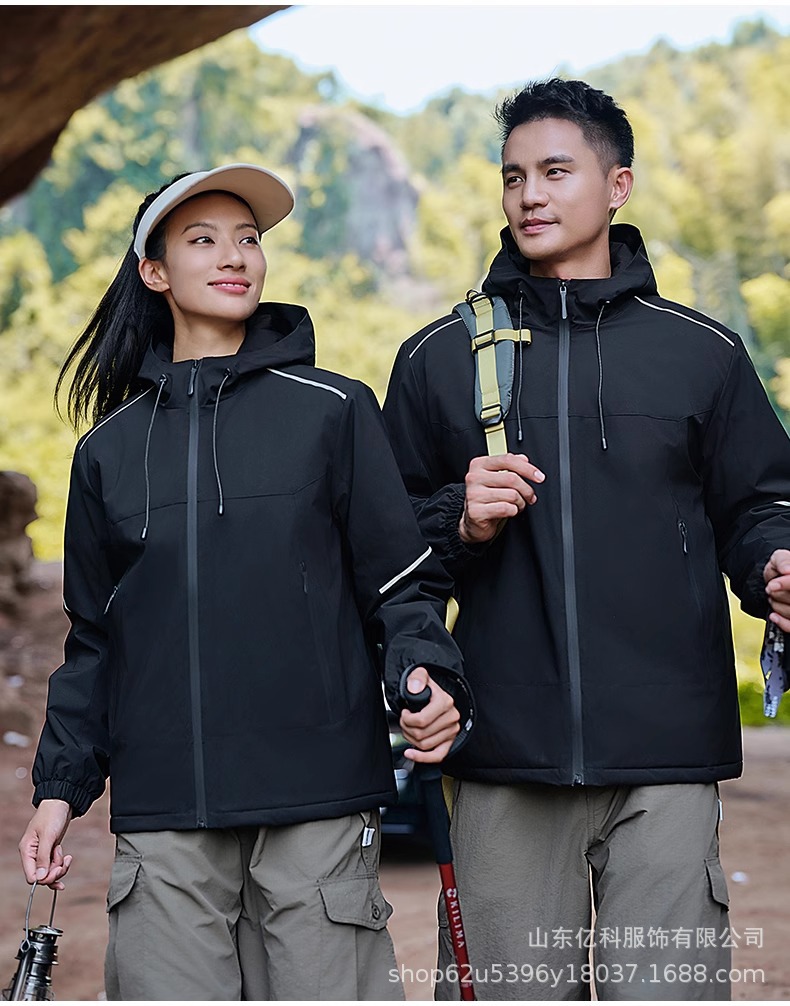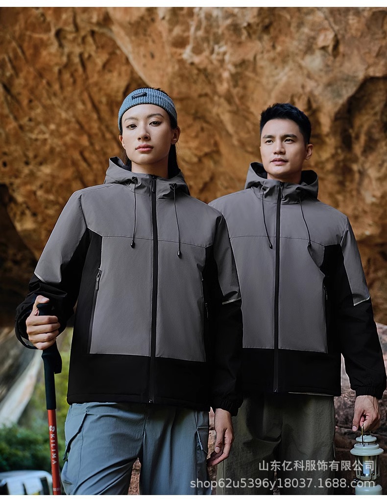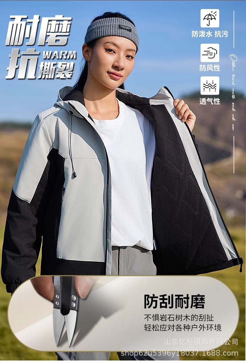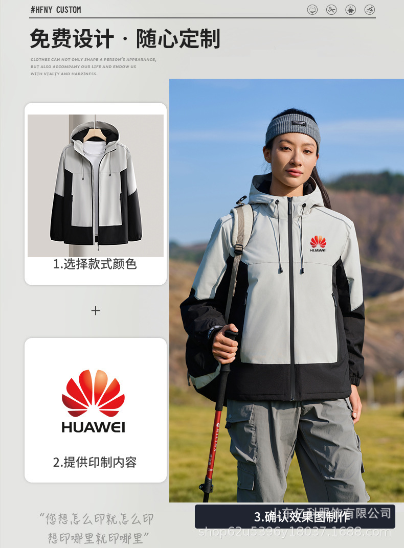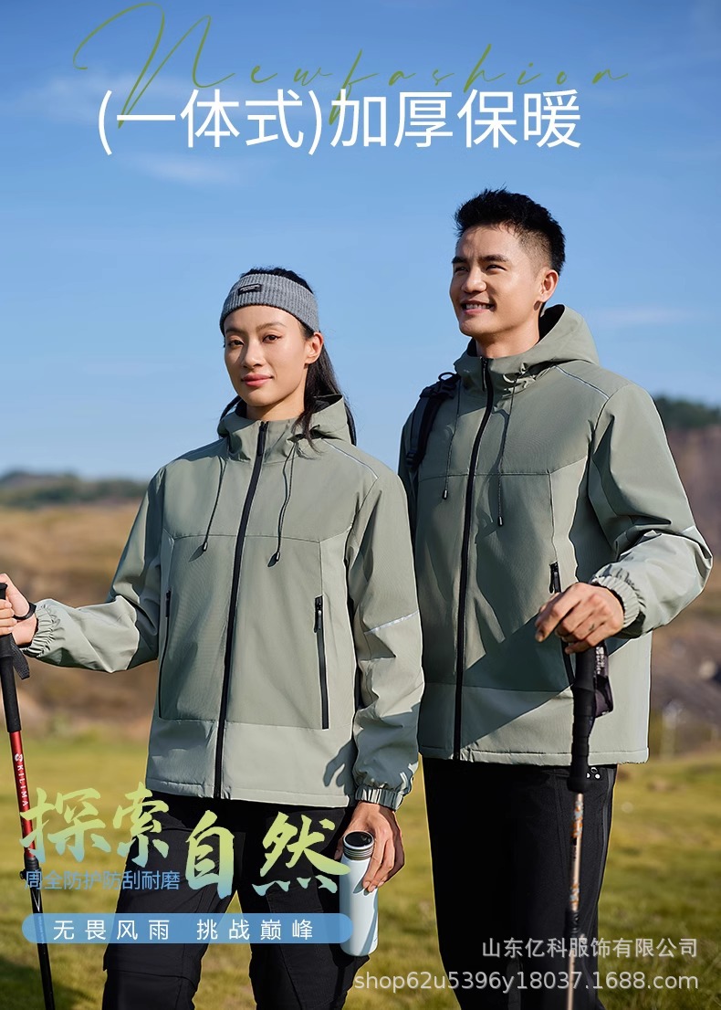 反光冲锋衣工作服定制刺绣LOGO印字一体登山服加绒防水防风男女款