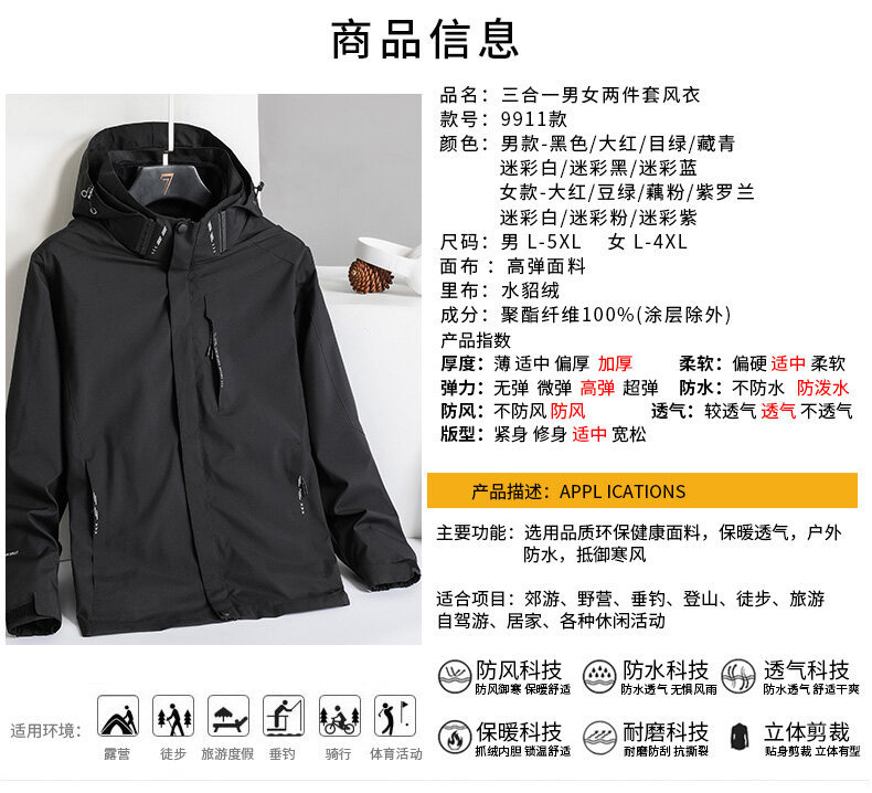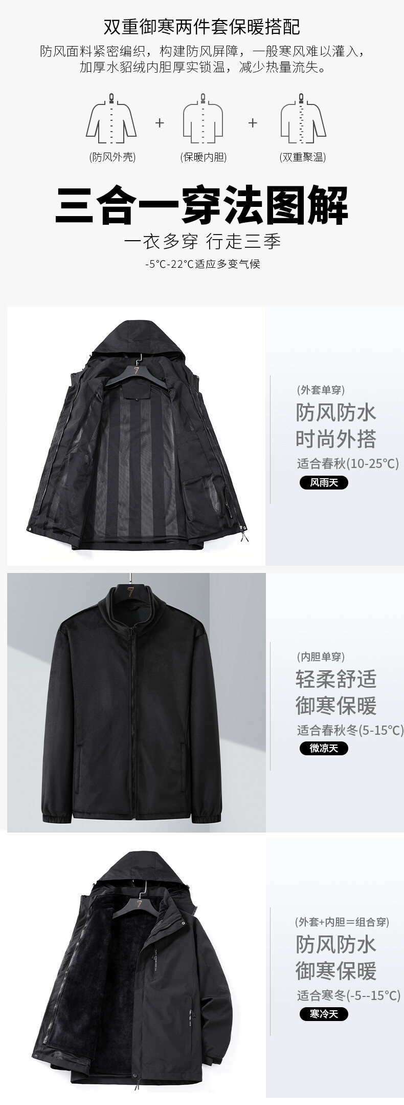 衣男士三合一可拆卸女两件套水貂绒加厚秋冬季防寒登山服外套