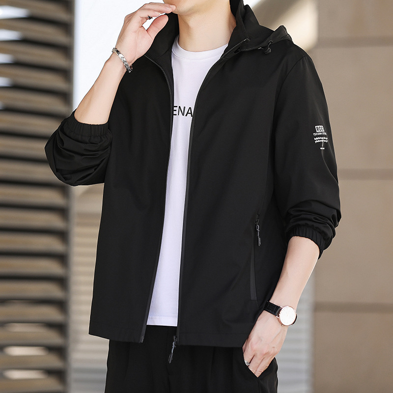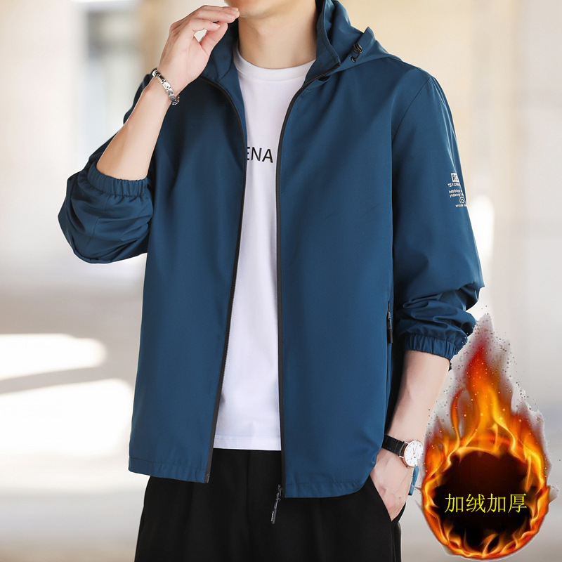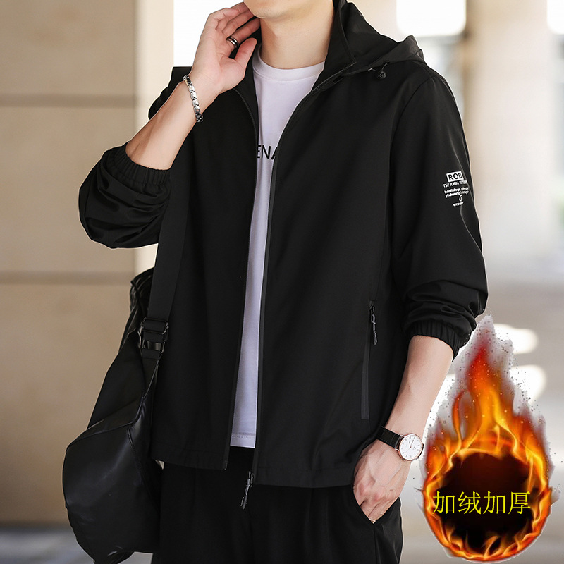 春秋季新款男士连帽外套户外冲锋衣青年时尚休闲可脱卸帽百搭夹克