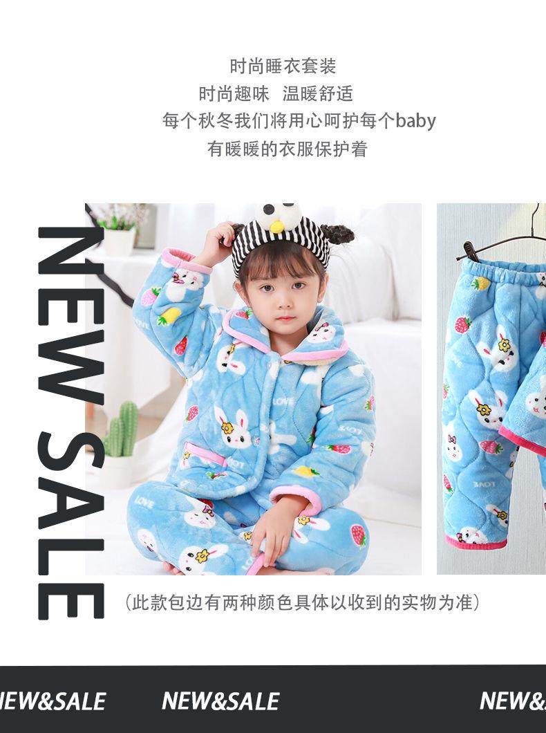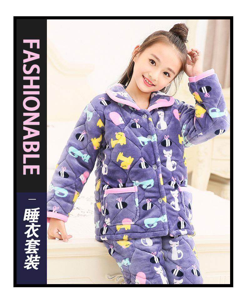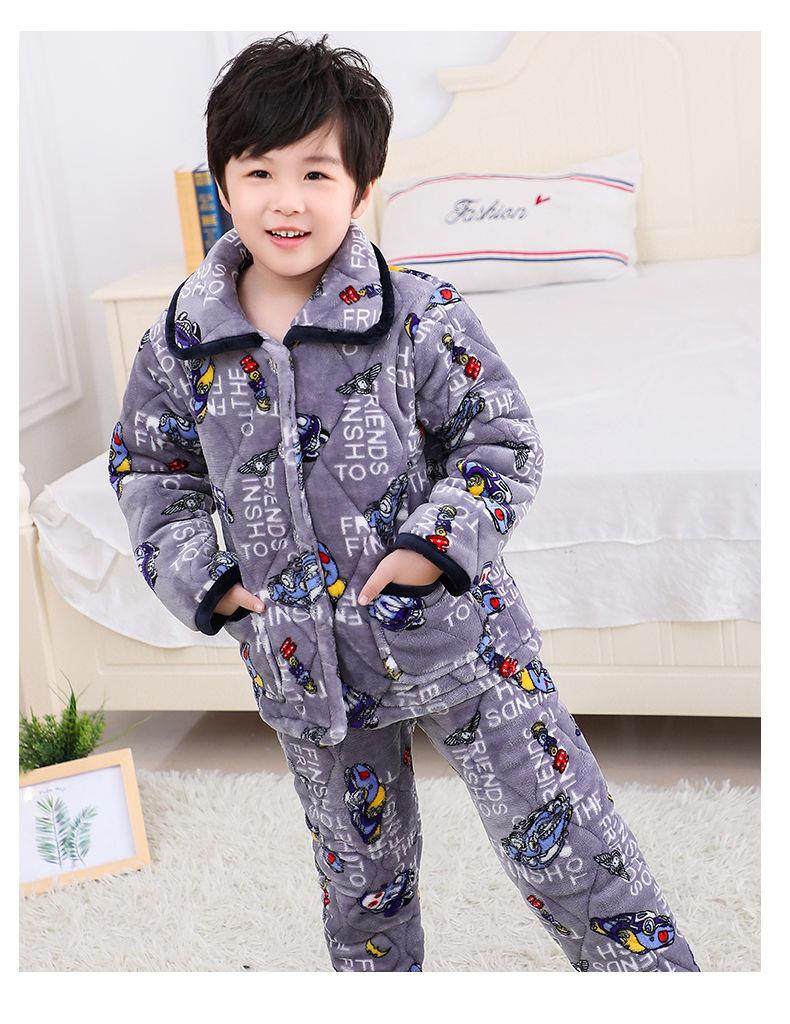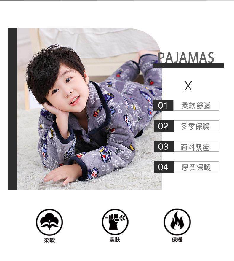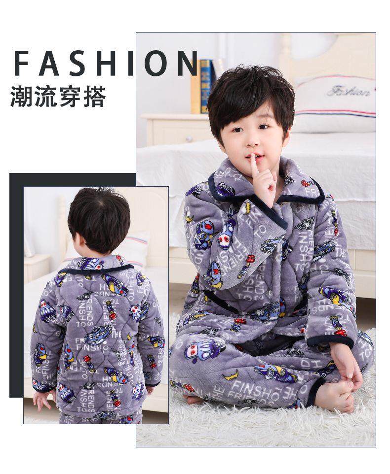 冬季三层夹棉加厚睡衣儿童睡衣男孩女孩中大童法兰绒家居服套装