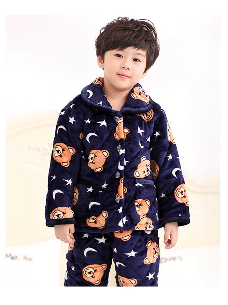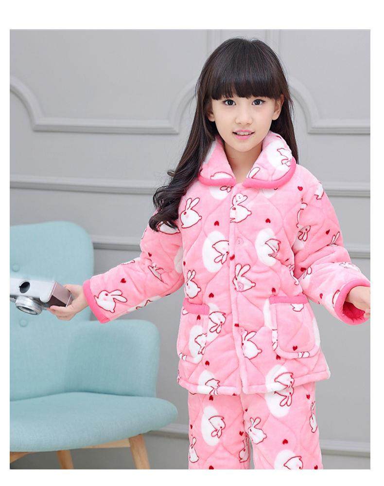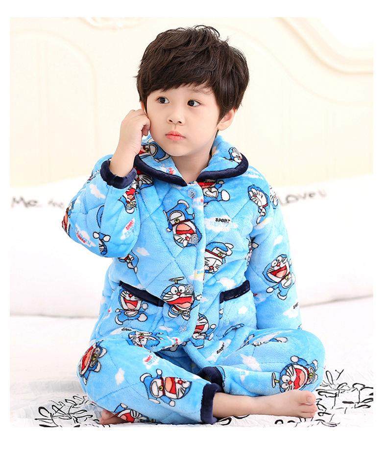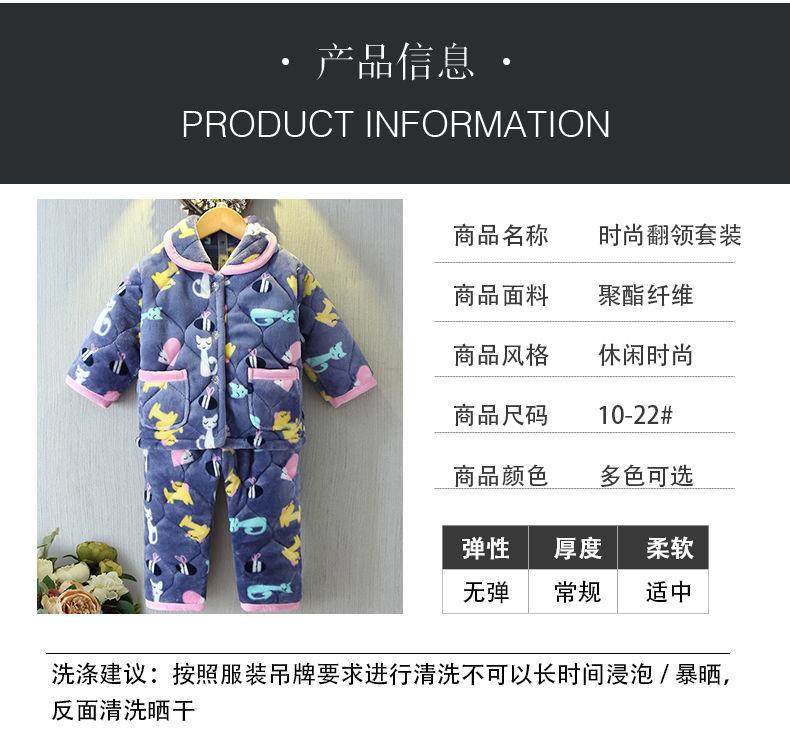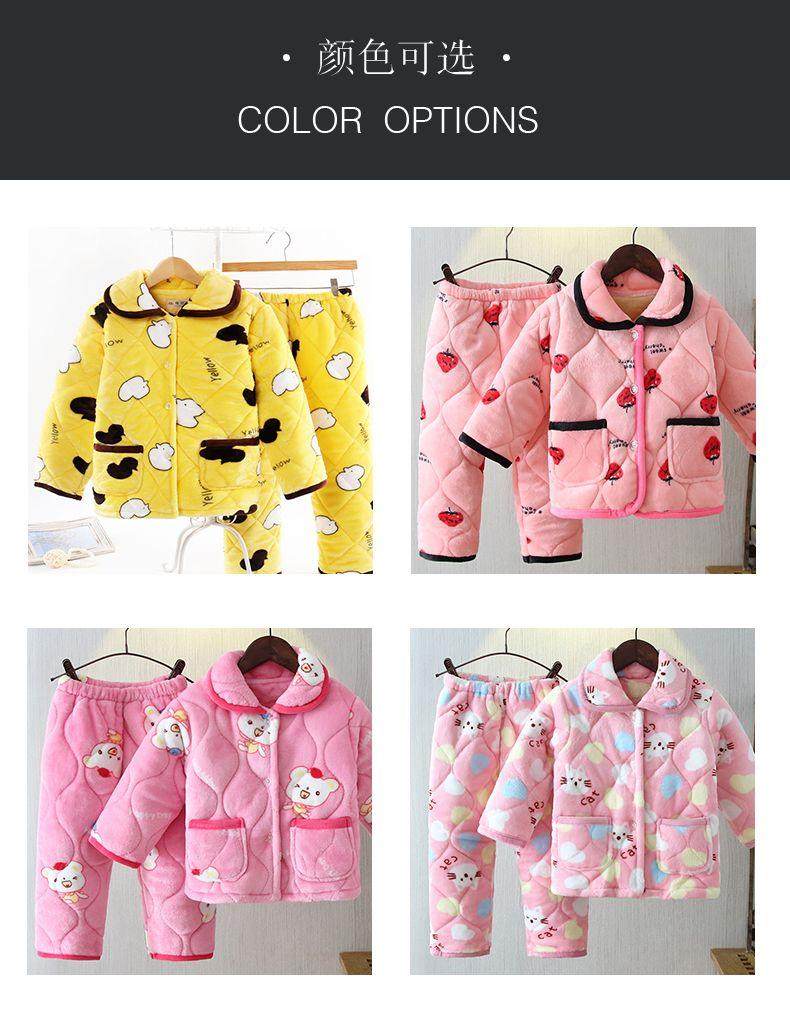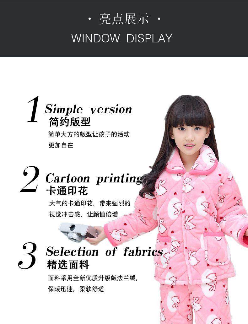 冬季三层夹棉加厚睡衣儿童睡衣男孩女孩中大童法兰绒家居服套装