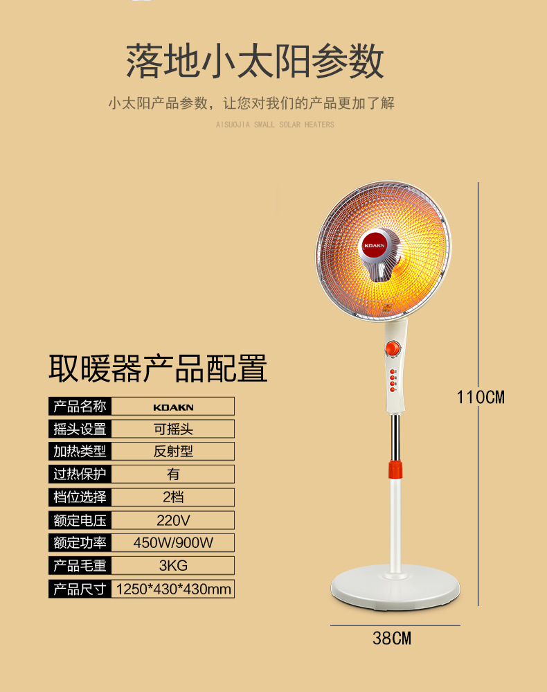 KDAKN小太阳取暖器家用落地立式电热扇烤火器烤火炉电暖气速热