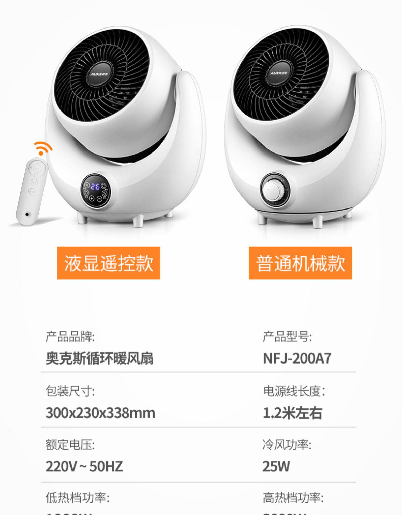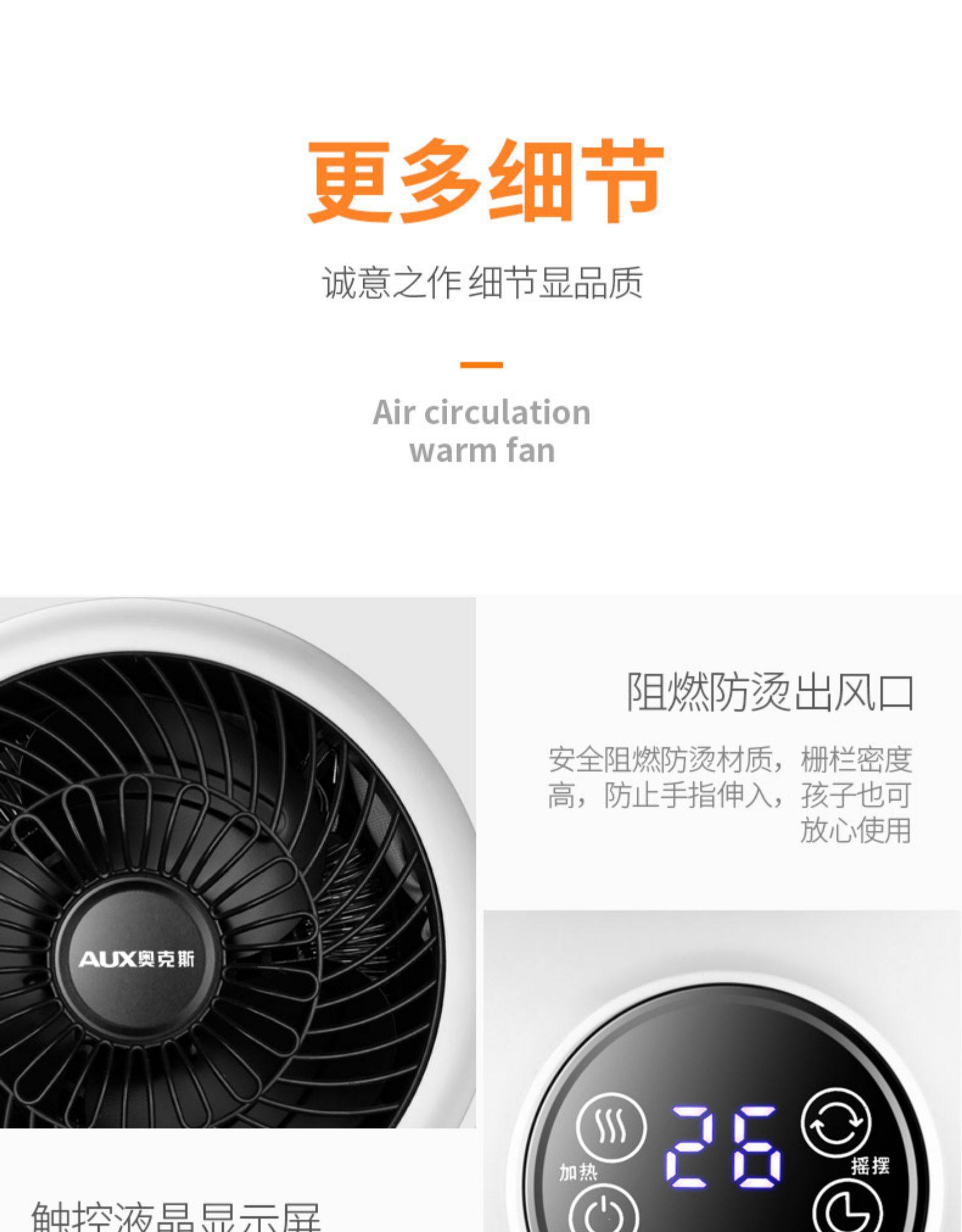 奥克斯取暖器家用节能省电暖气小太阳速热浴室暖风200A7R