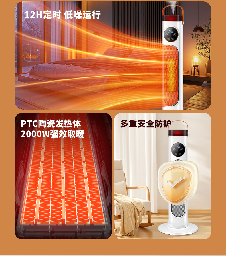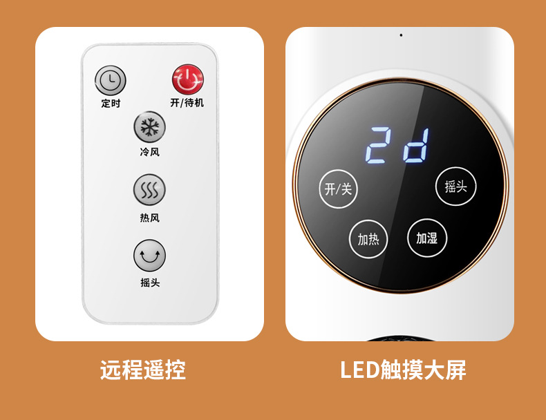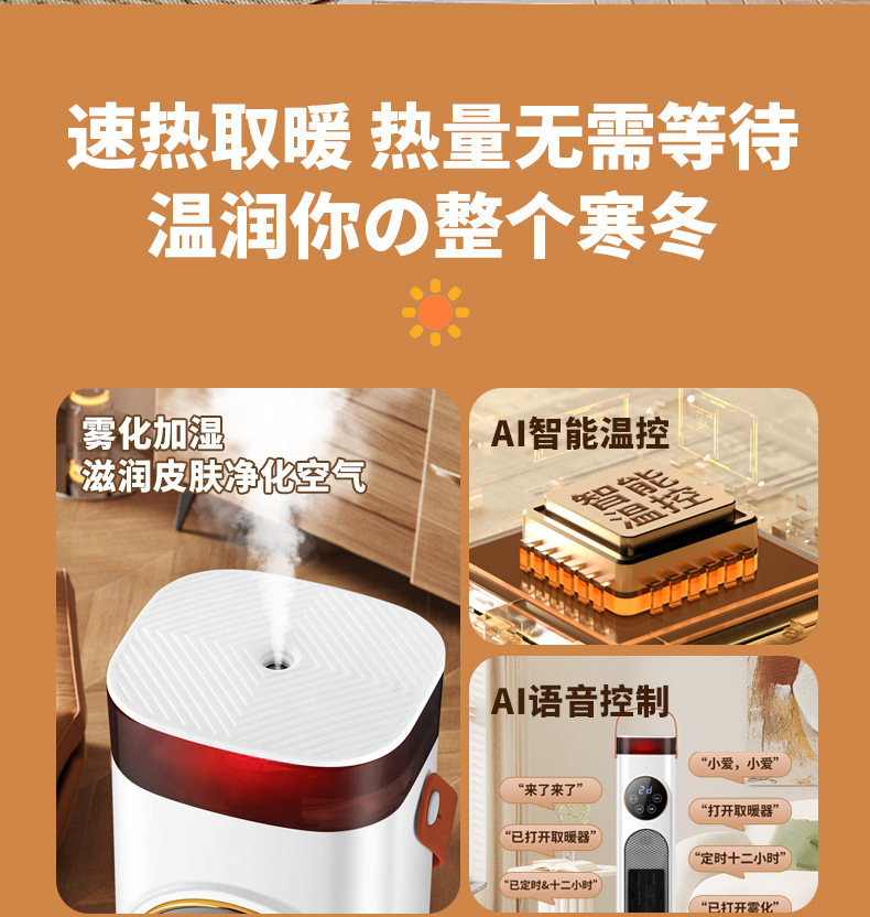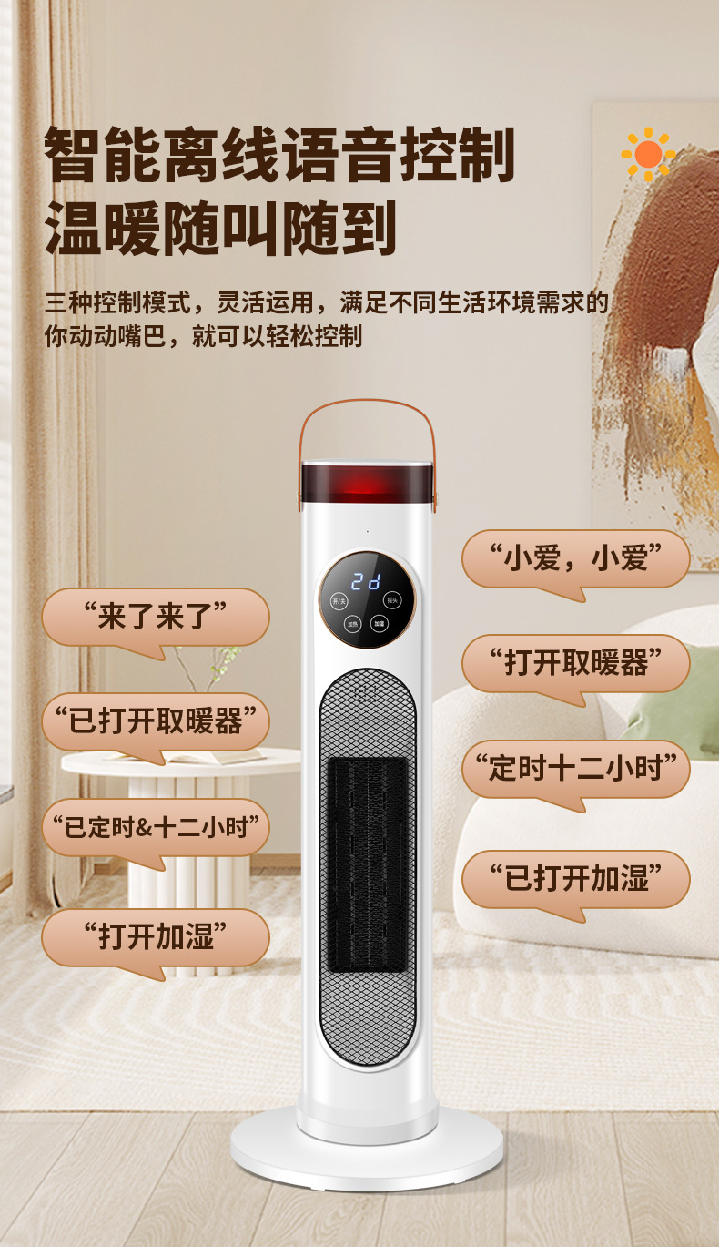 加湿器取暖器家用智能语音暖风机定时遥控立式速热小太阳冷热风扇