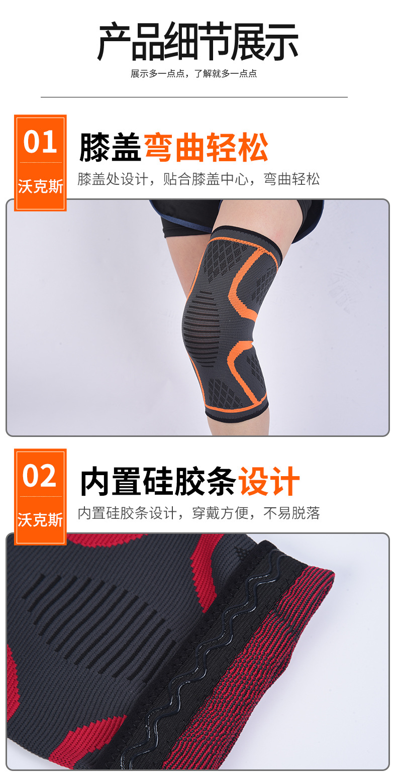硅胶防滑运动尼龙护膝透气针织四季款篮球跑步关节保暖护具护膝盖