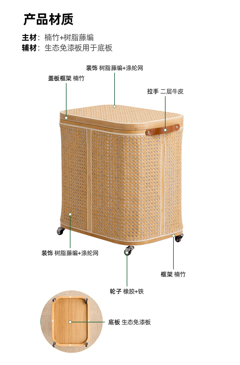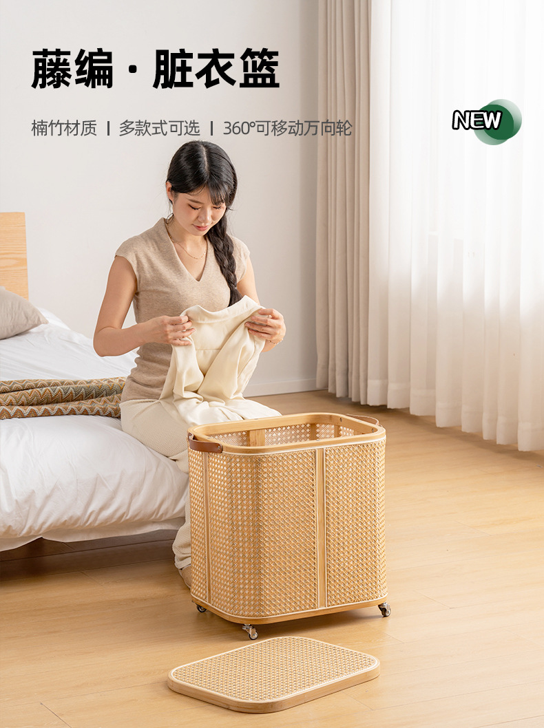 曲天下脏衣篓脏衣篮移动藤编收纳筐娃娃收纳桶卫生间放衣服洗衣篮