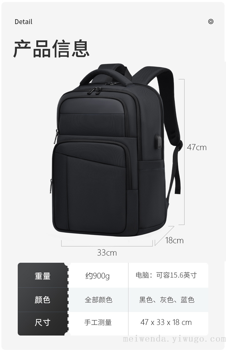 新款时尚便携简约大容量多功能双肩包轻便商务电脑背包