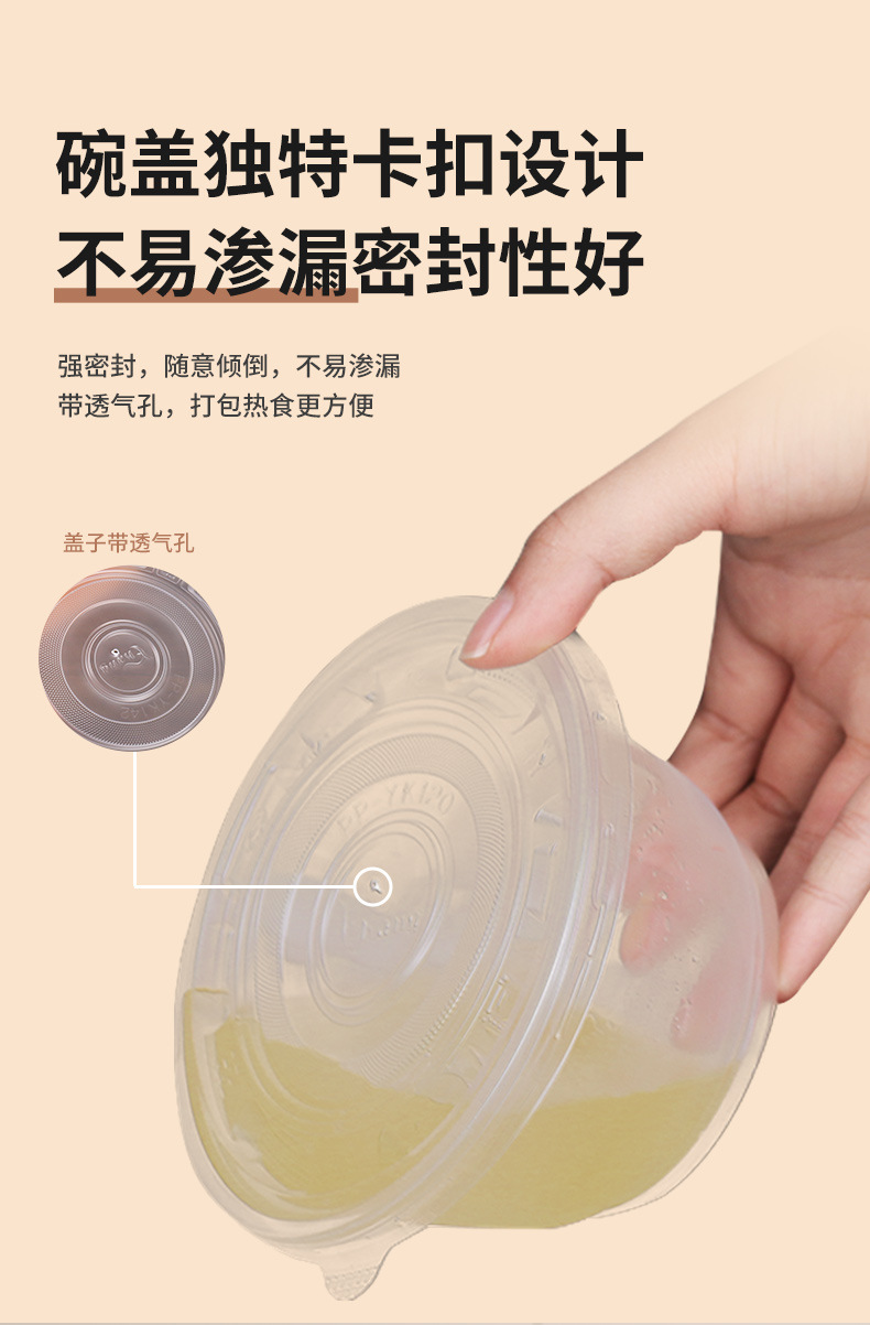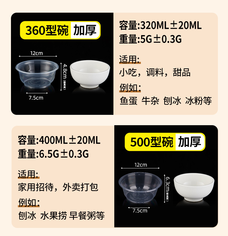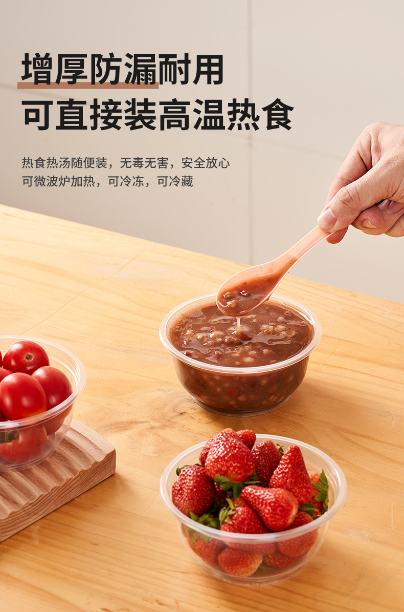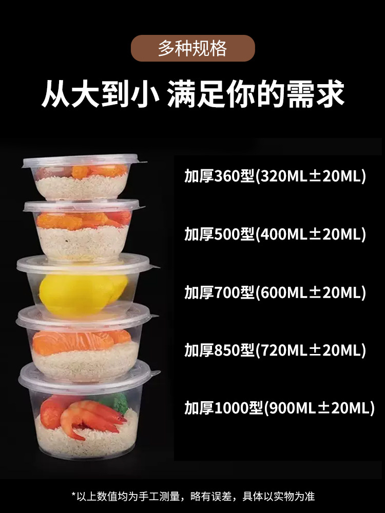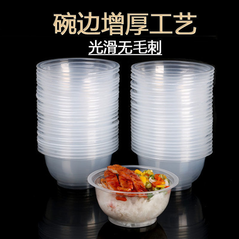 一次性碗加厚耐高温食品级透明塑料冰粉凉面打包盒家用圆饭碗带盖