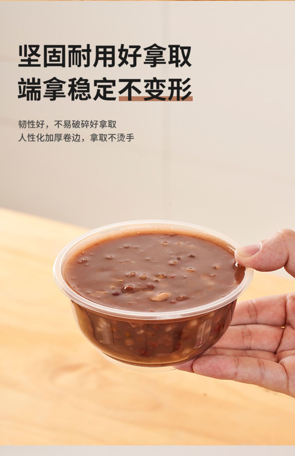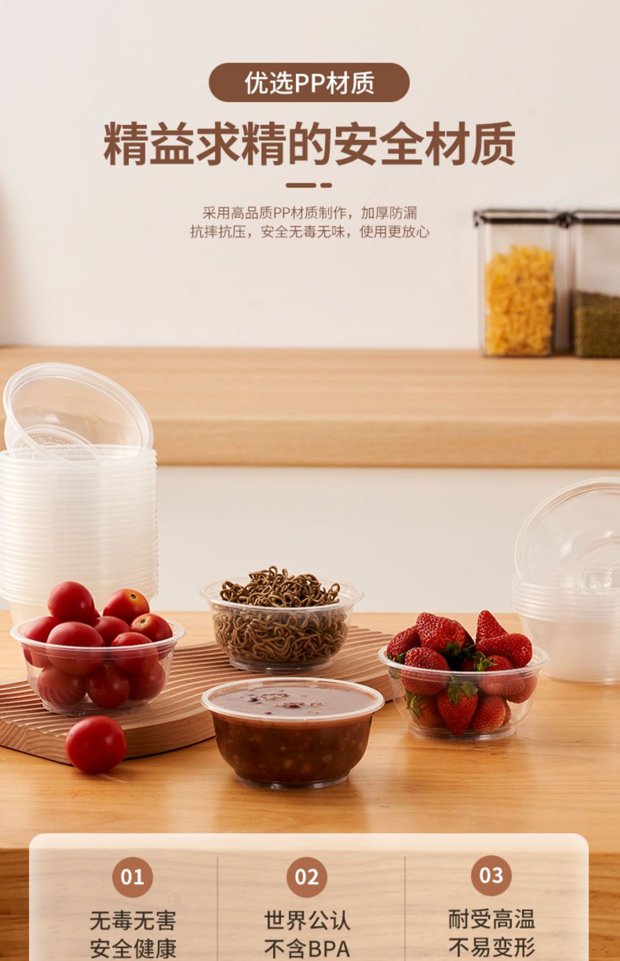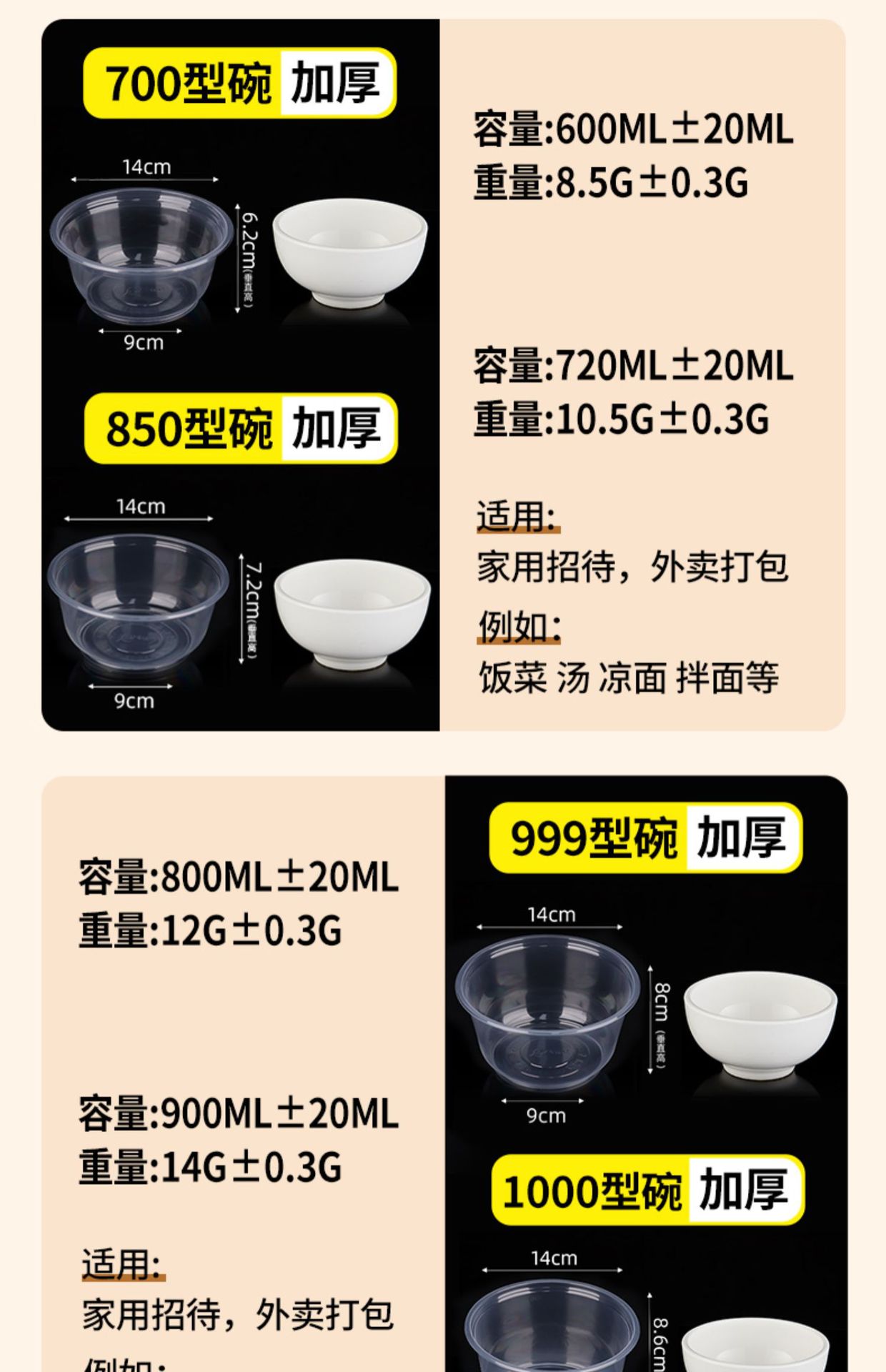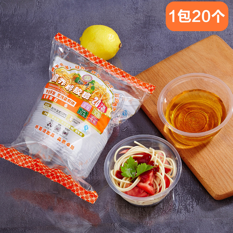 一次性碗加厚耐高温食品级透明塑料冰粉凉面打包盒家用圆饭碗带盖