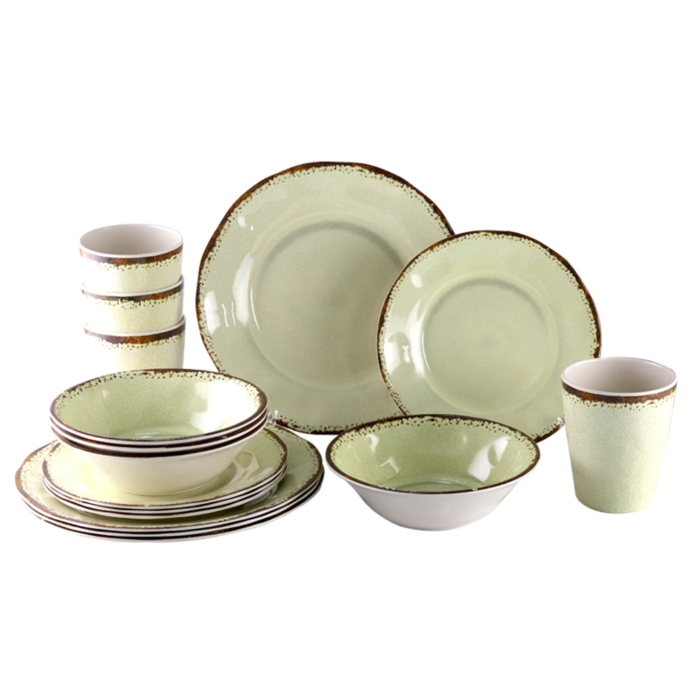 旭佰密胺仿瓷餐具套件16件套跨境畅销密胺碗碟盘套件源头工厂批发