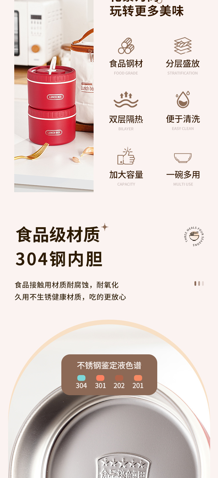 保温便携304不锈钢午餐盒带盖汤碗餐罐汤盒410小学生日式便当饭盒