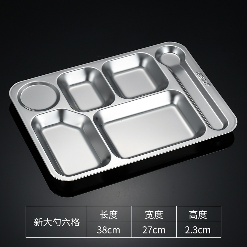 学生食堂餐厅饭盒分格不锈钢六格快餐盘分格饭盘304不锈钢餐盘
