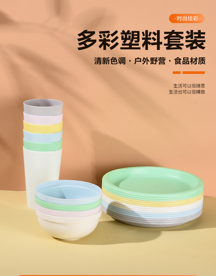 塑料餐具日式户外便携碗碟盘杯子餐具套装家用饭碗水果盘可印logo