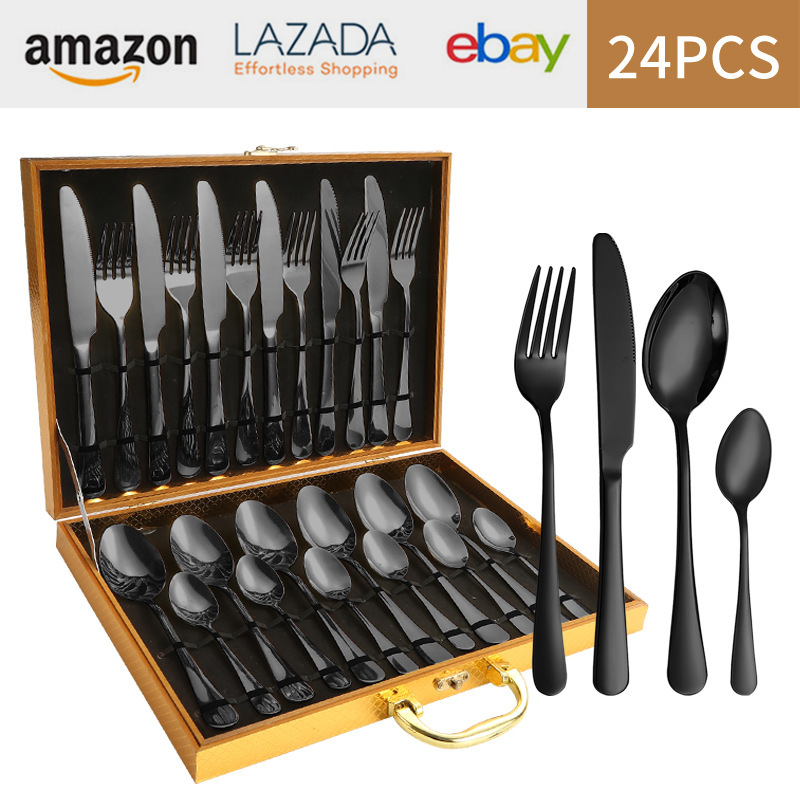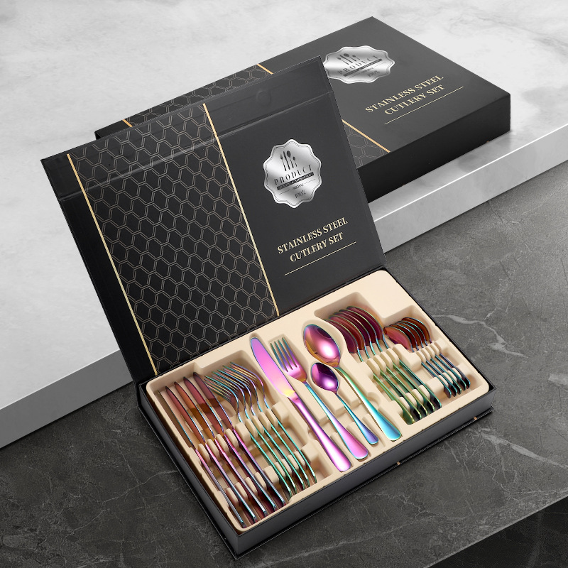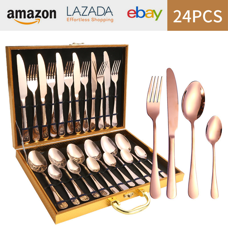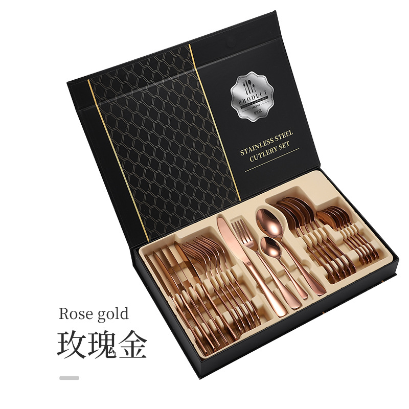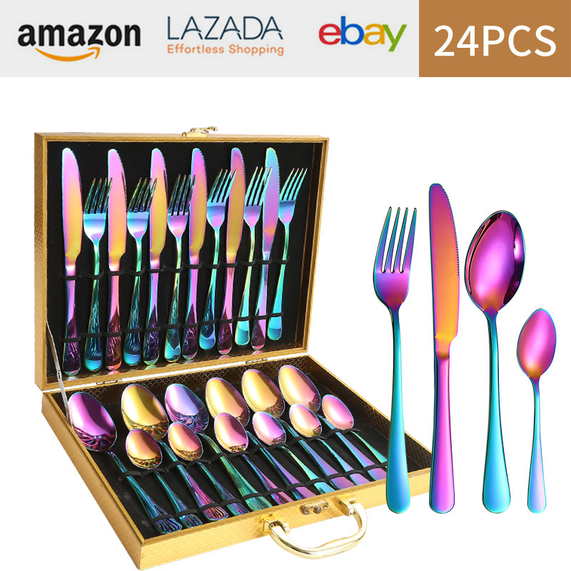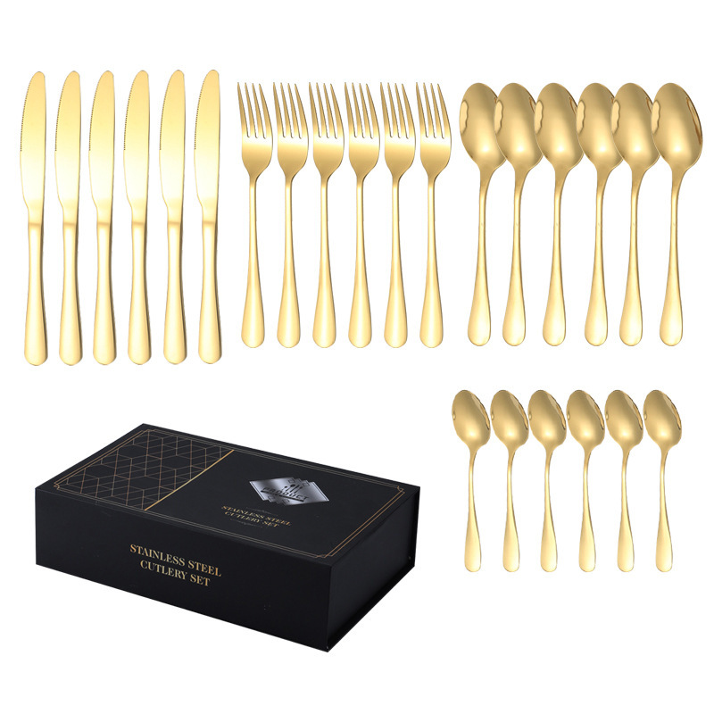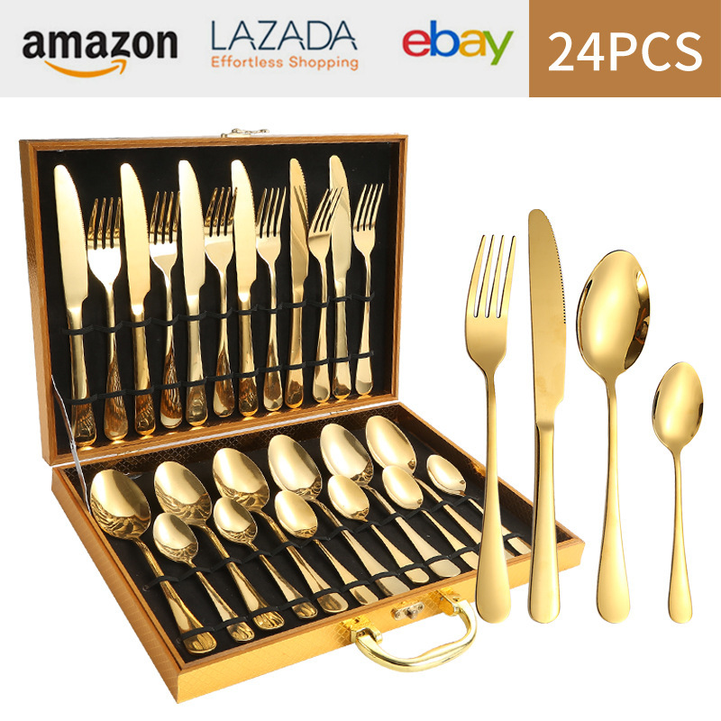亚马逊1010不锈钢餐具24件餐具套装金色刀叉勺四主件跨境礼盒套装