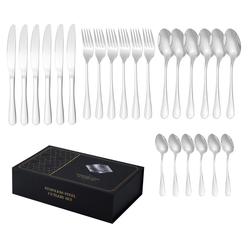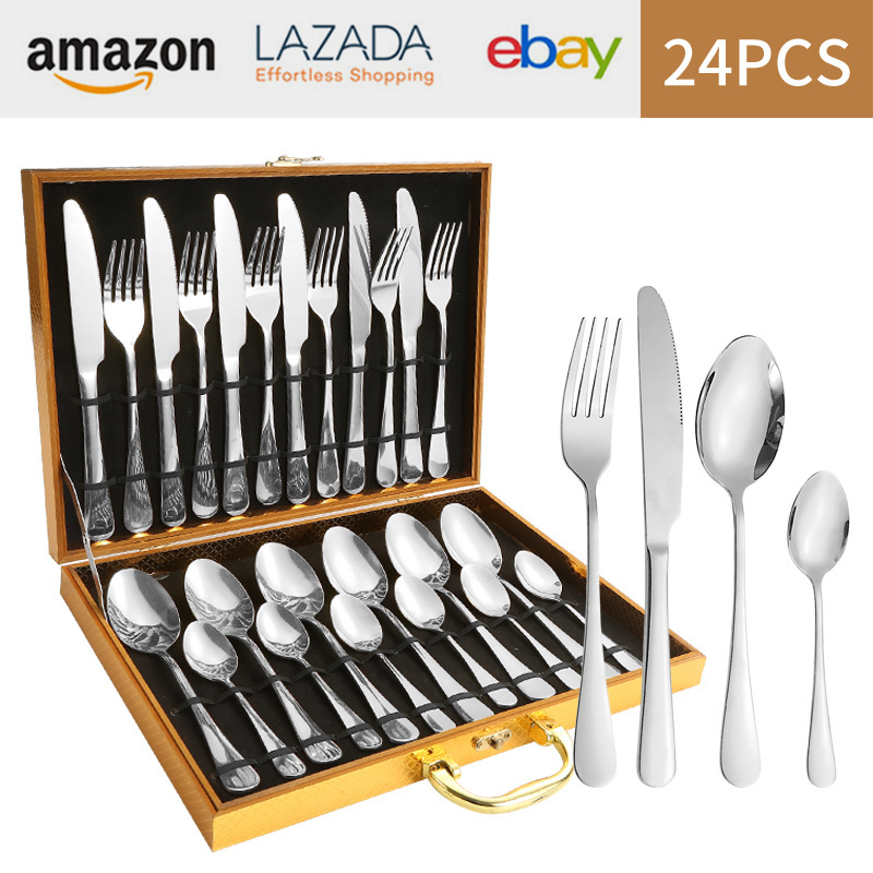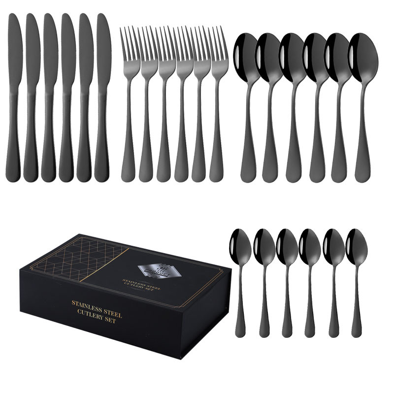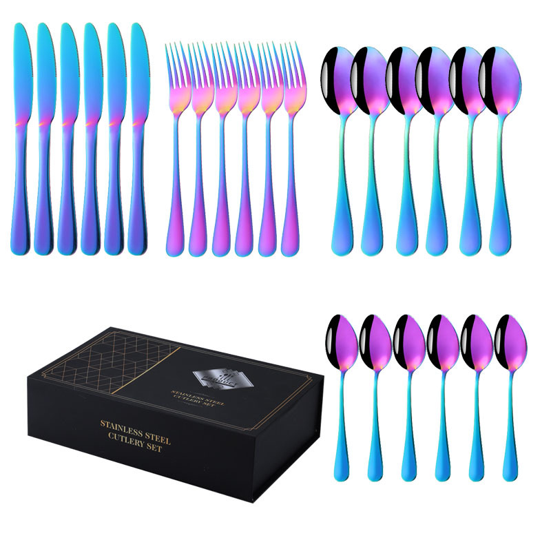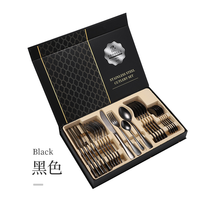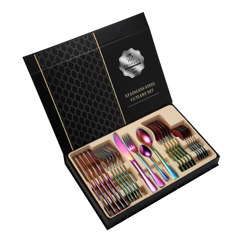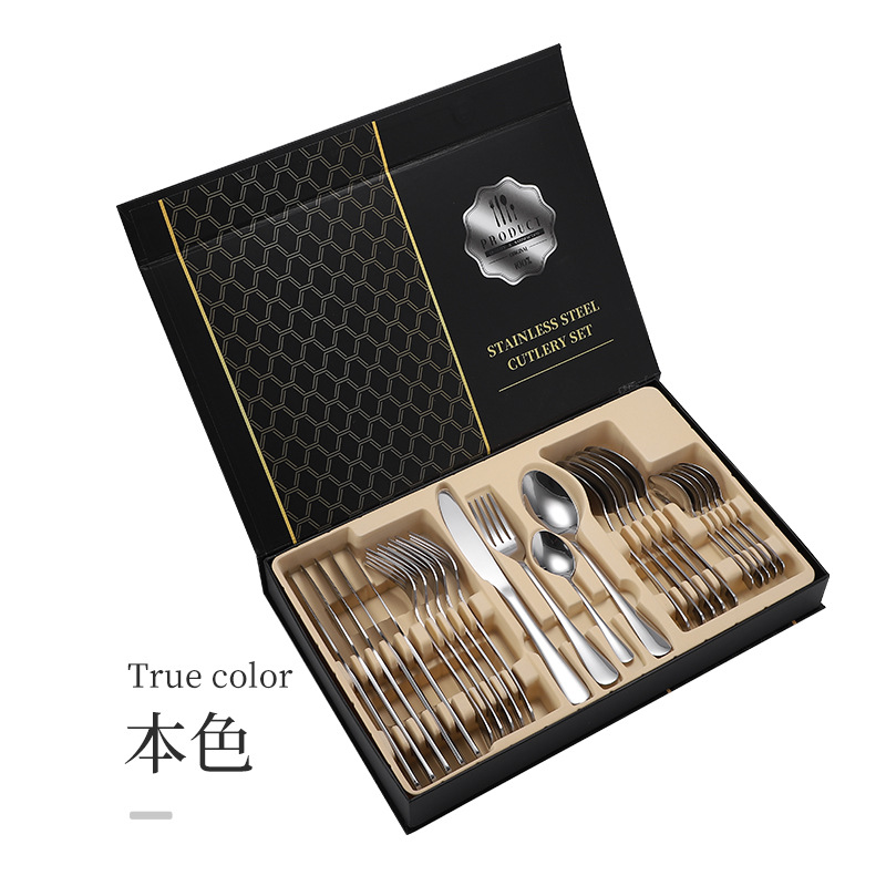 亚马逊1010不锈钢餐具24件餐具套装金色刀叉勺四主件跨境礼盒套装