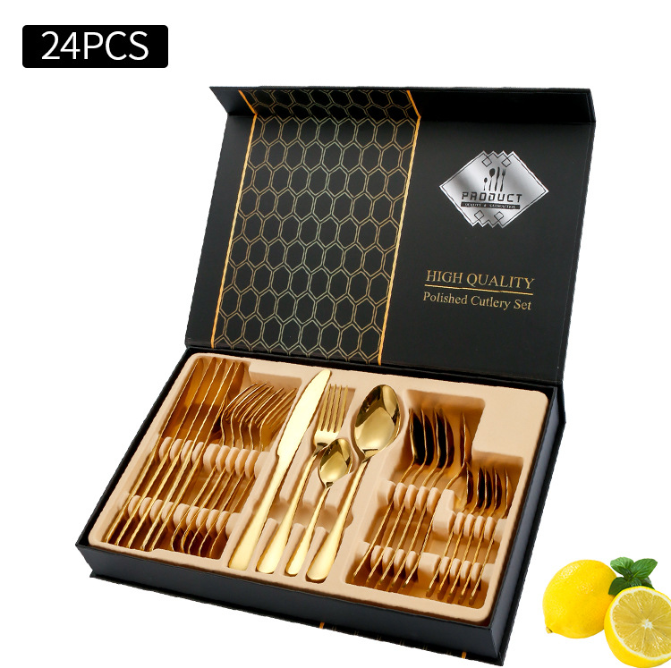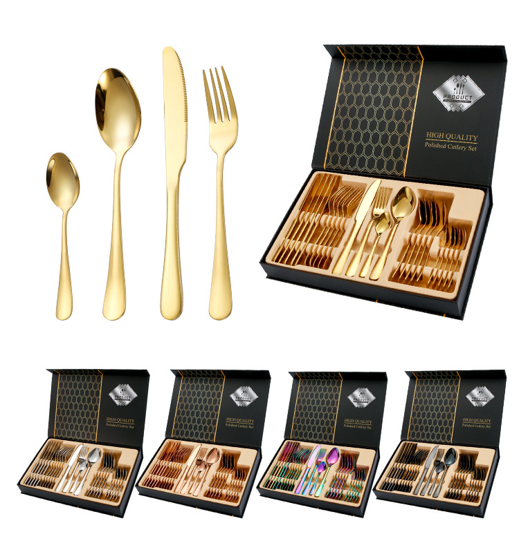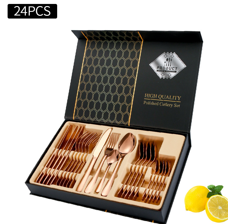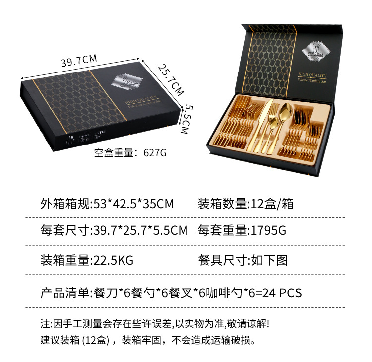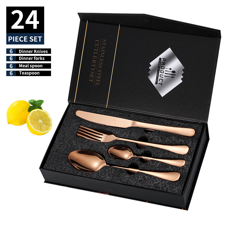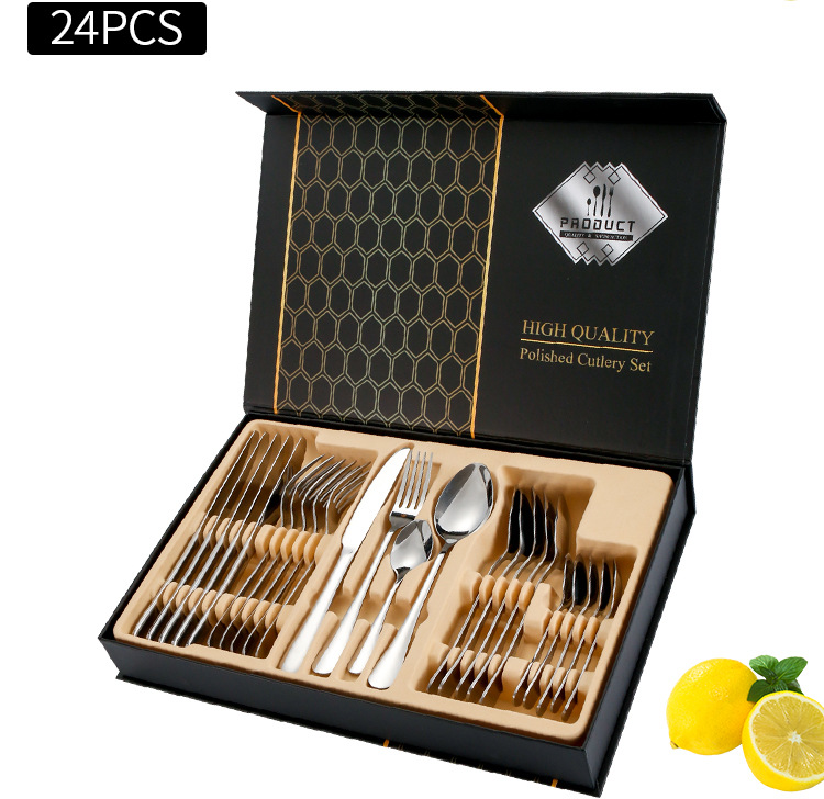 亚马逊跨境1010不锈钢系列24件套四主件礼盒装西餐牛排刀叉勺餐具