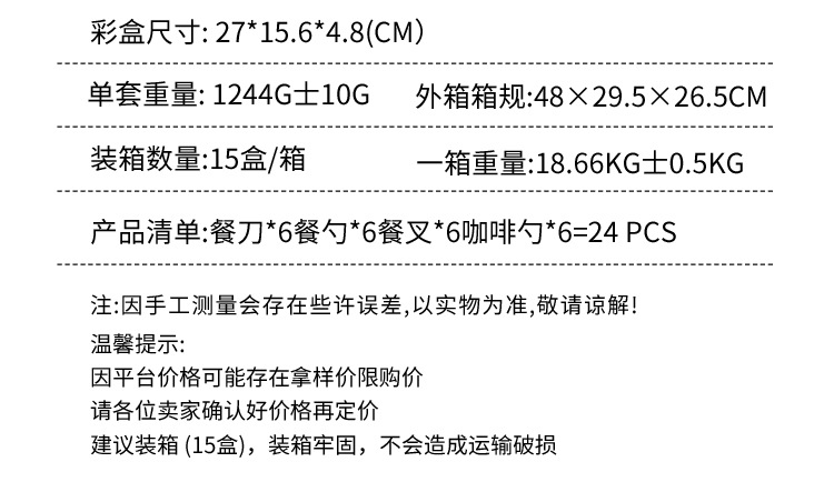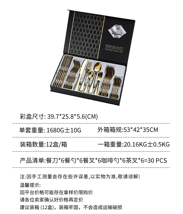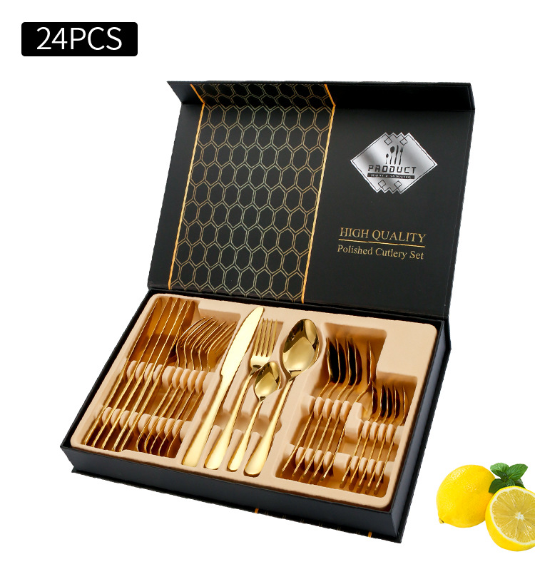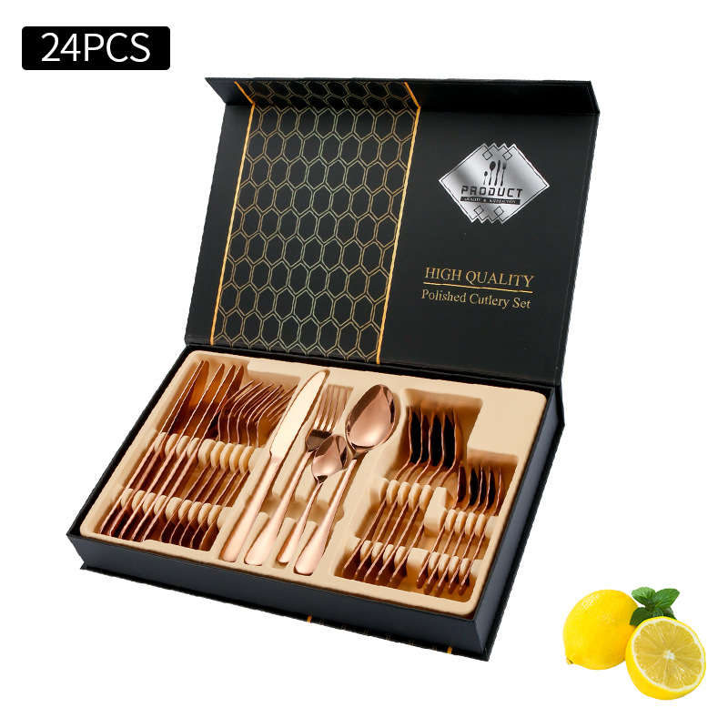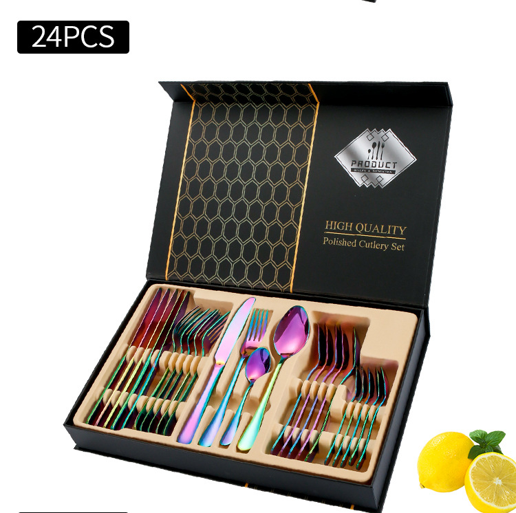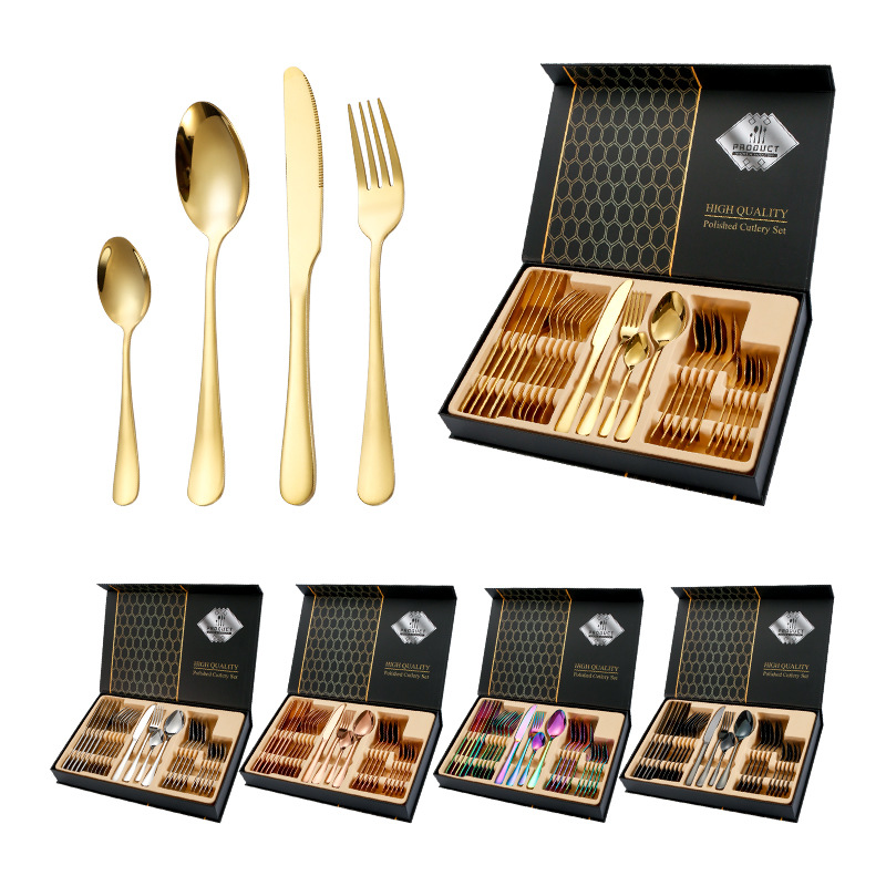 亚马逊跨境1010不锈钢系列24件套四主件礼盒装西餐牛排刀叉勺餐具