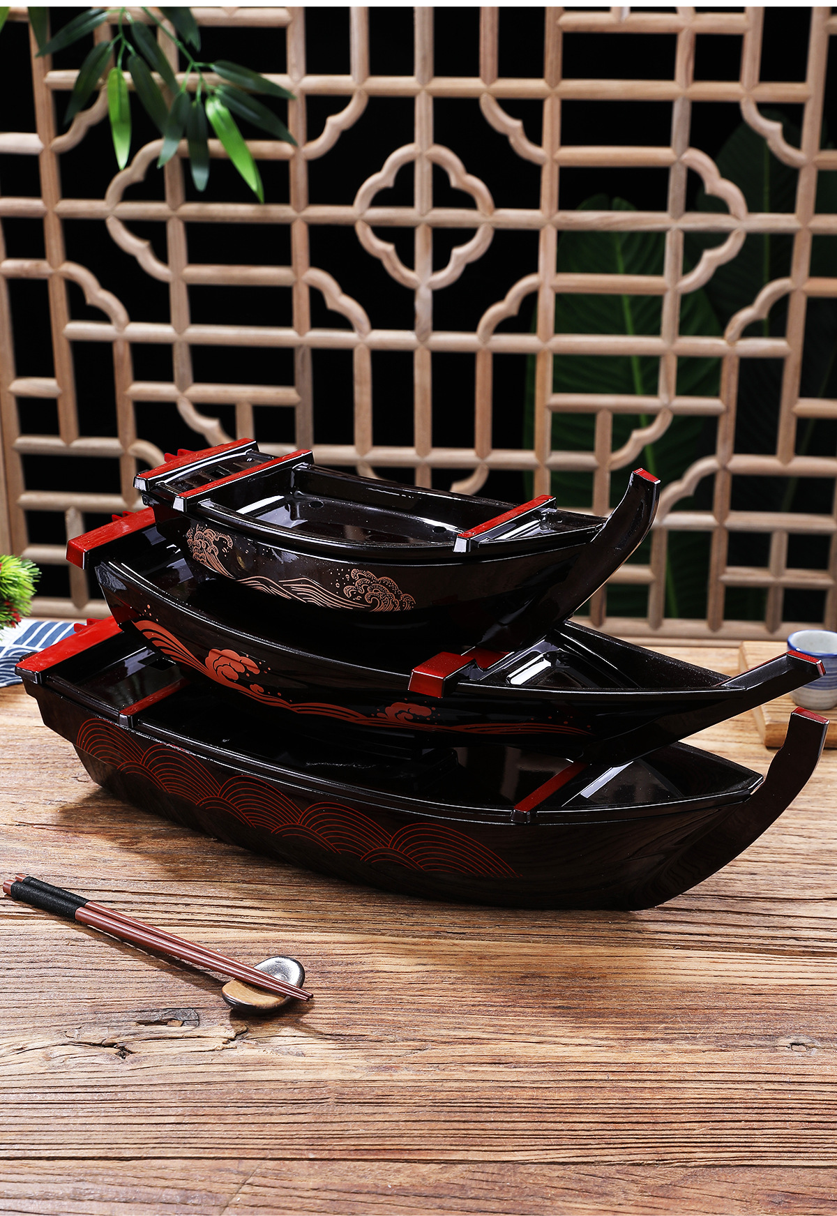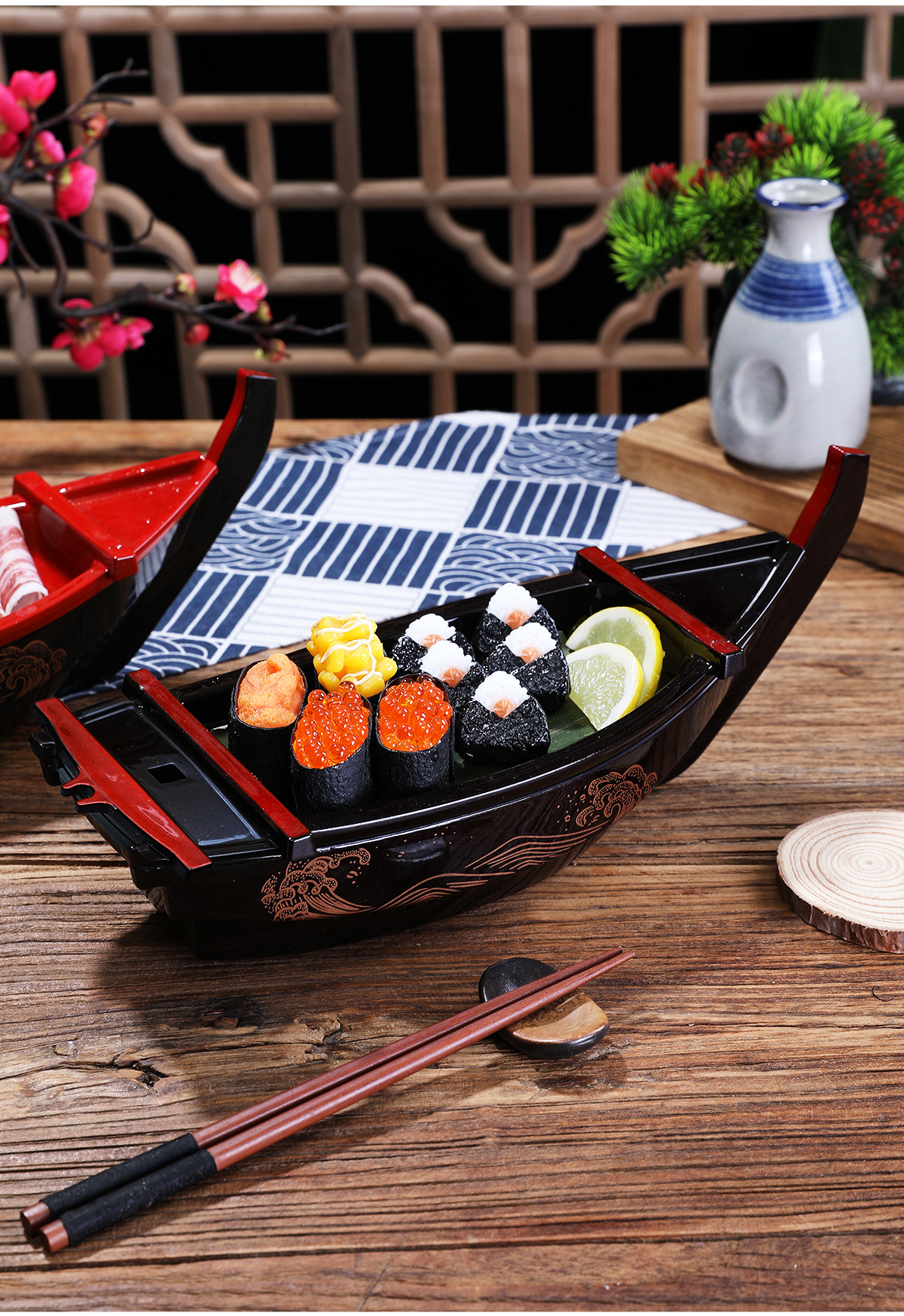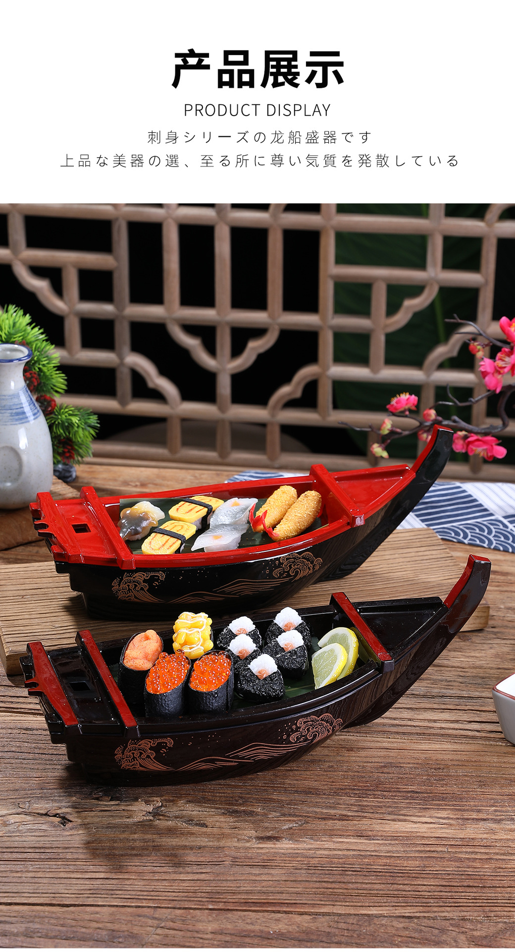 供应时尚特色日料龙舟寿司盛器 特色精致餐盘餐具